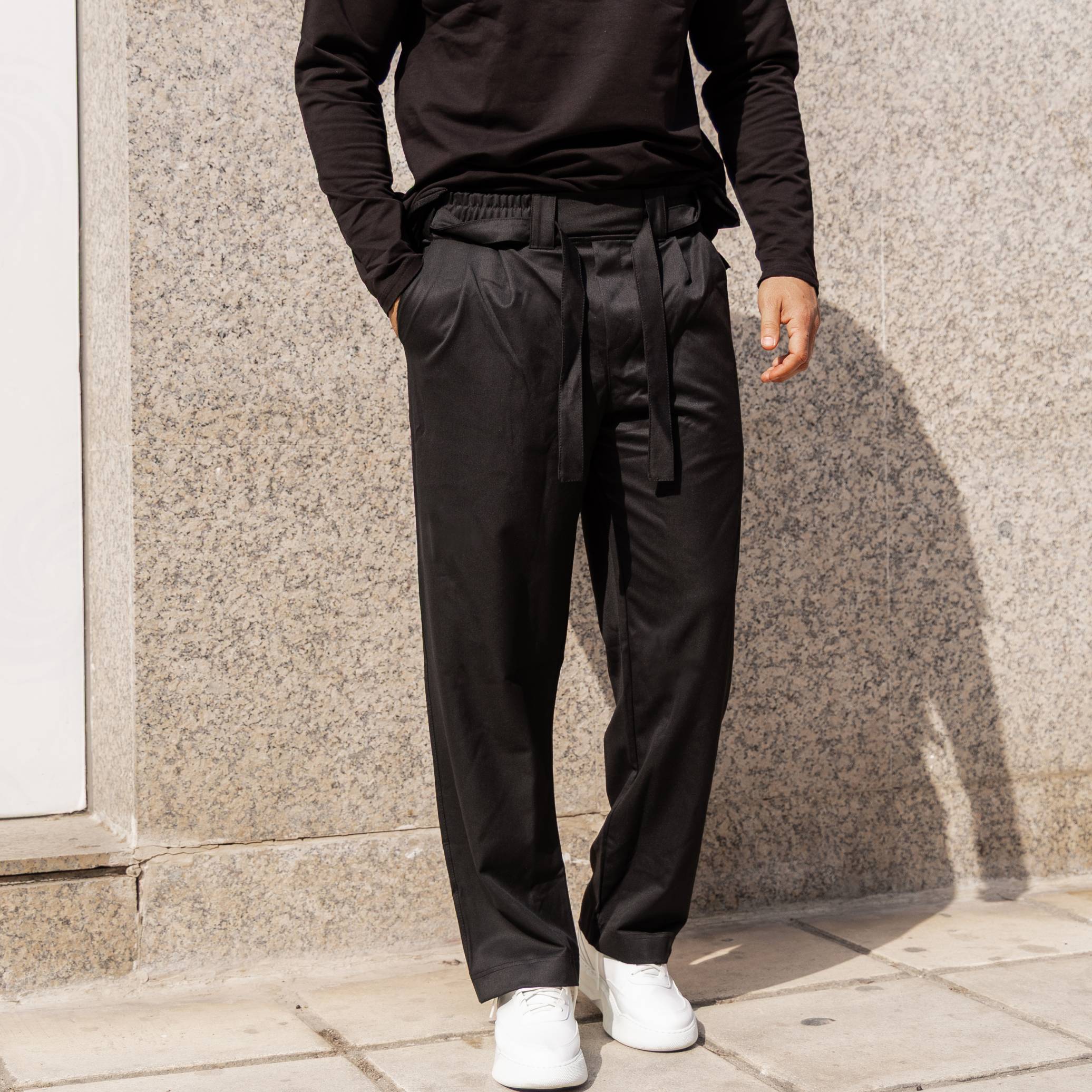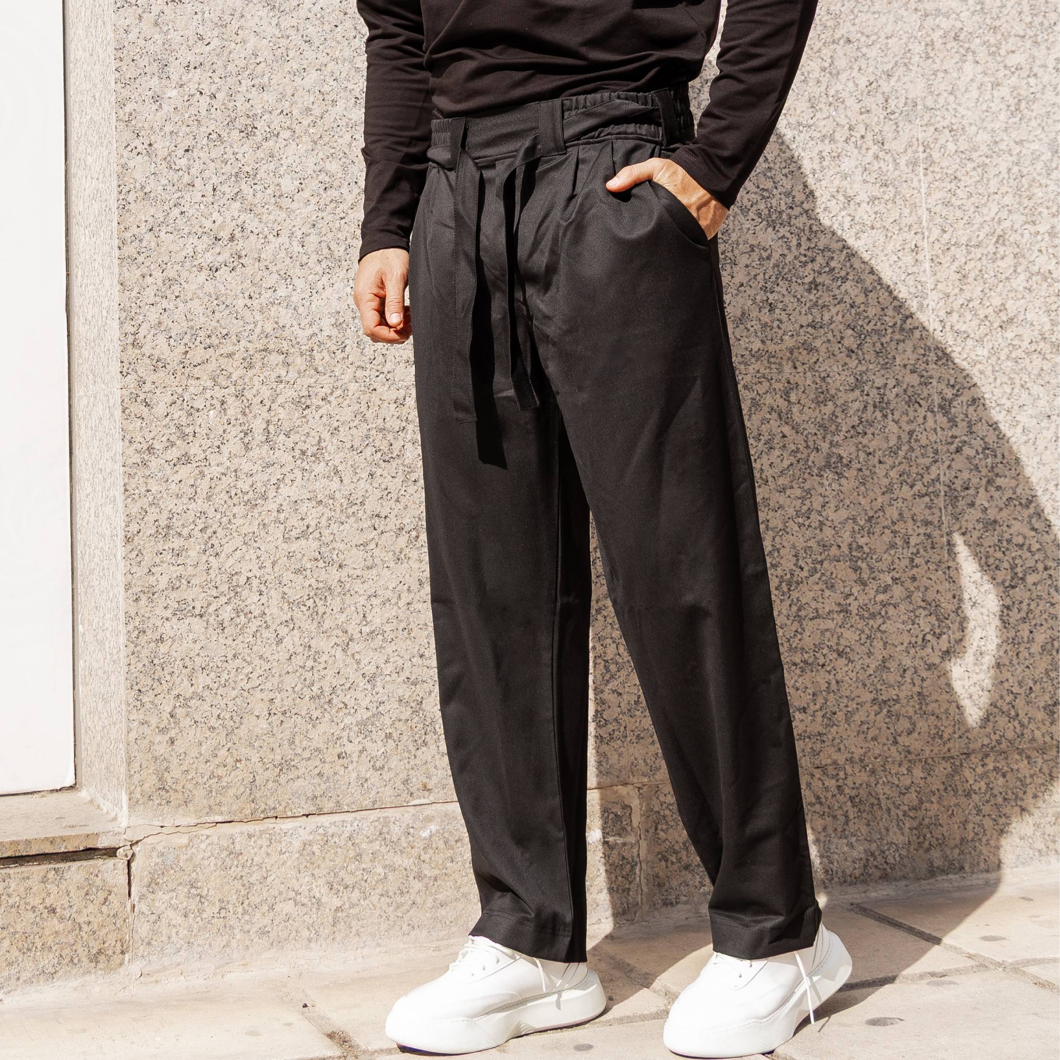 Παντελόνι μαύρο baggy με ζώνη