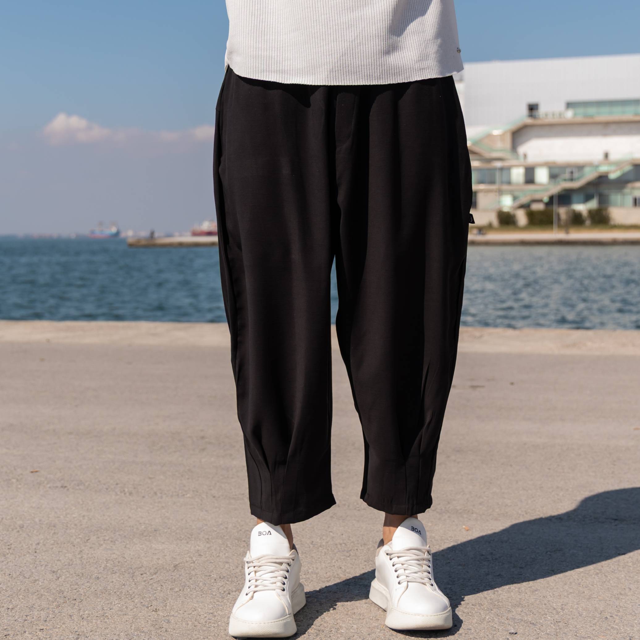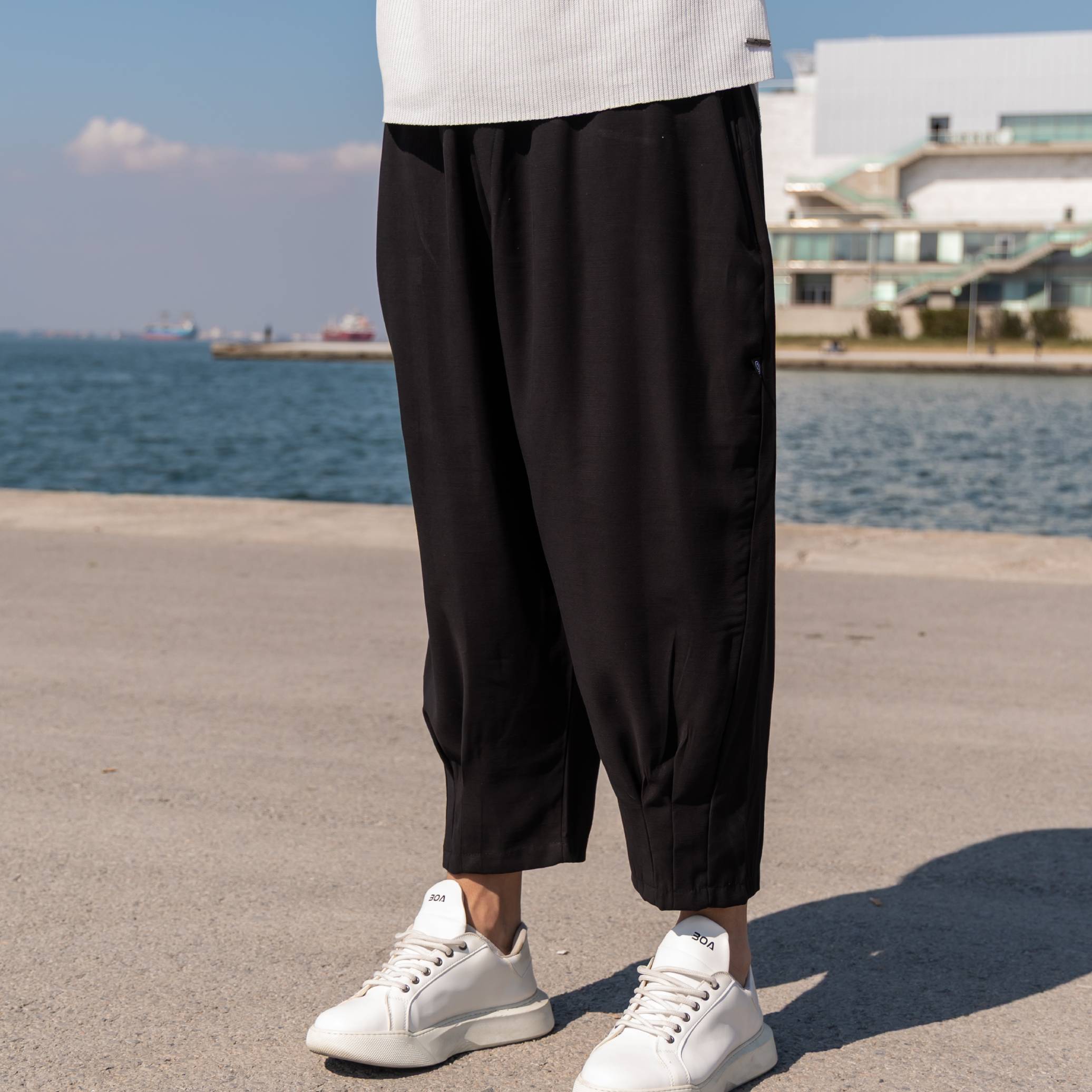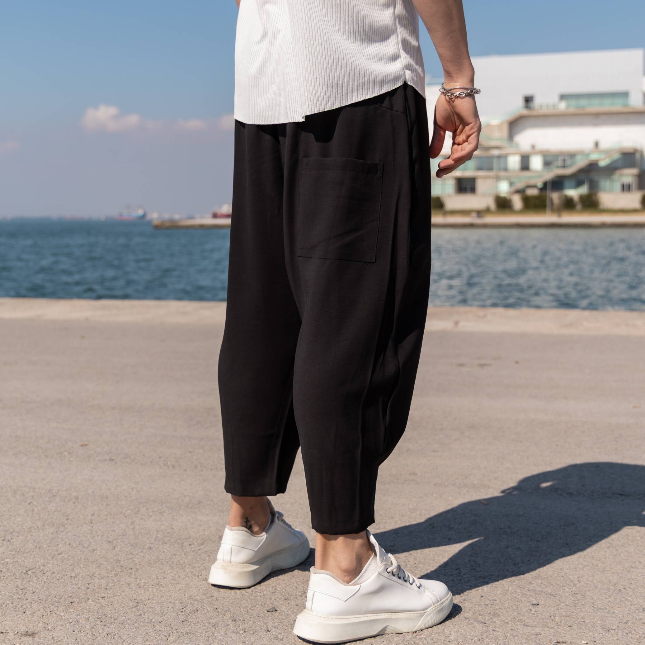 Παντελόνι μαύρο japaneese λινό σε oversized γραμμή