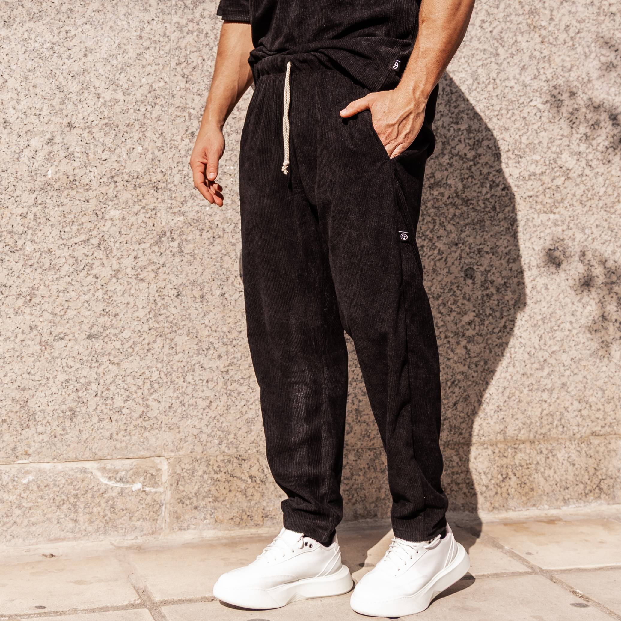 Παντελόνι μαύρο κοτλέ σε oversized γραμμή