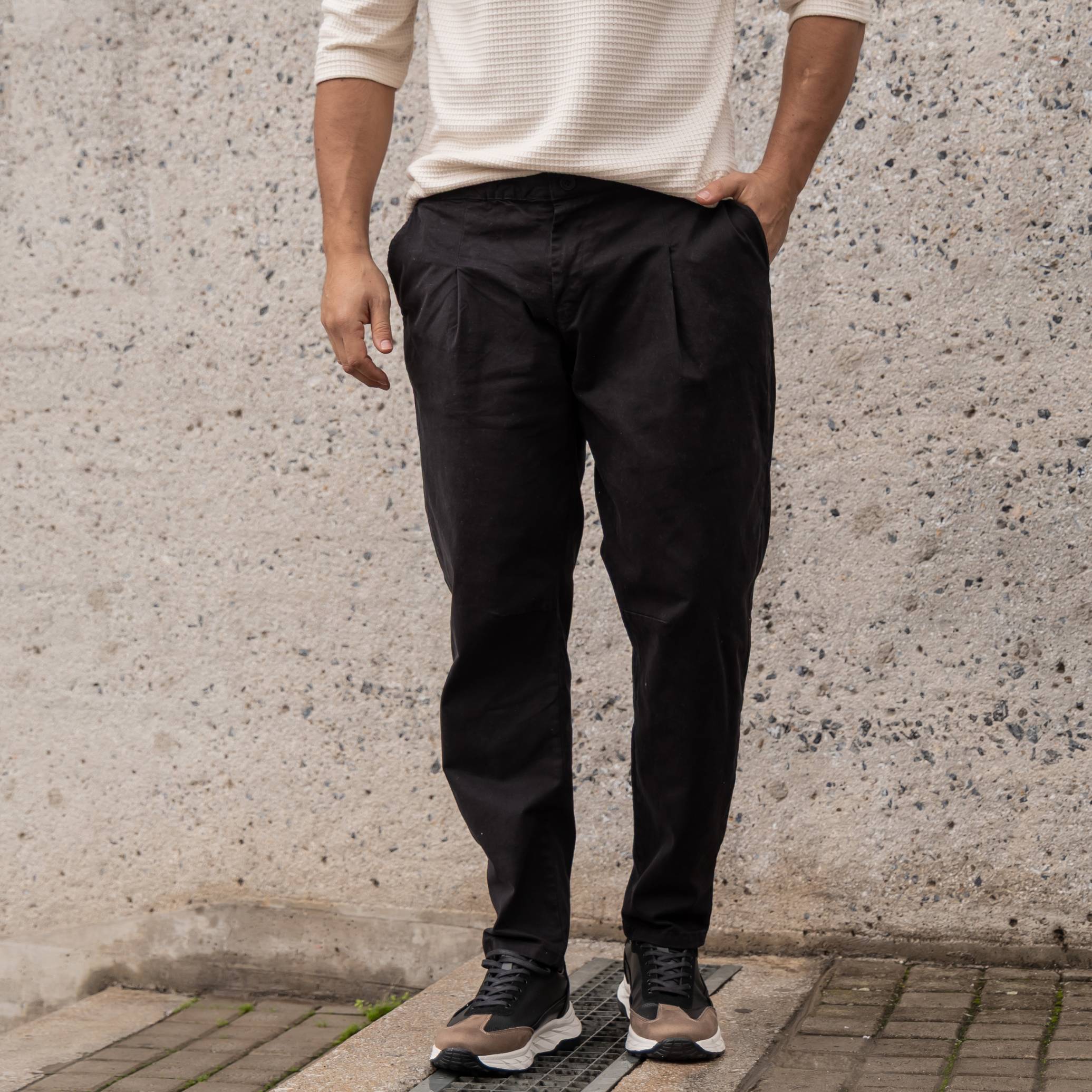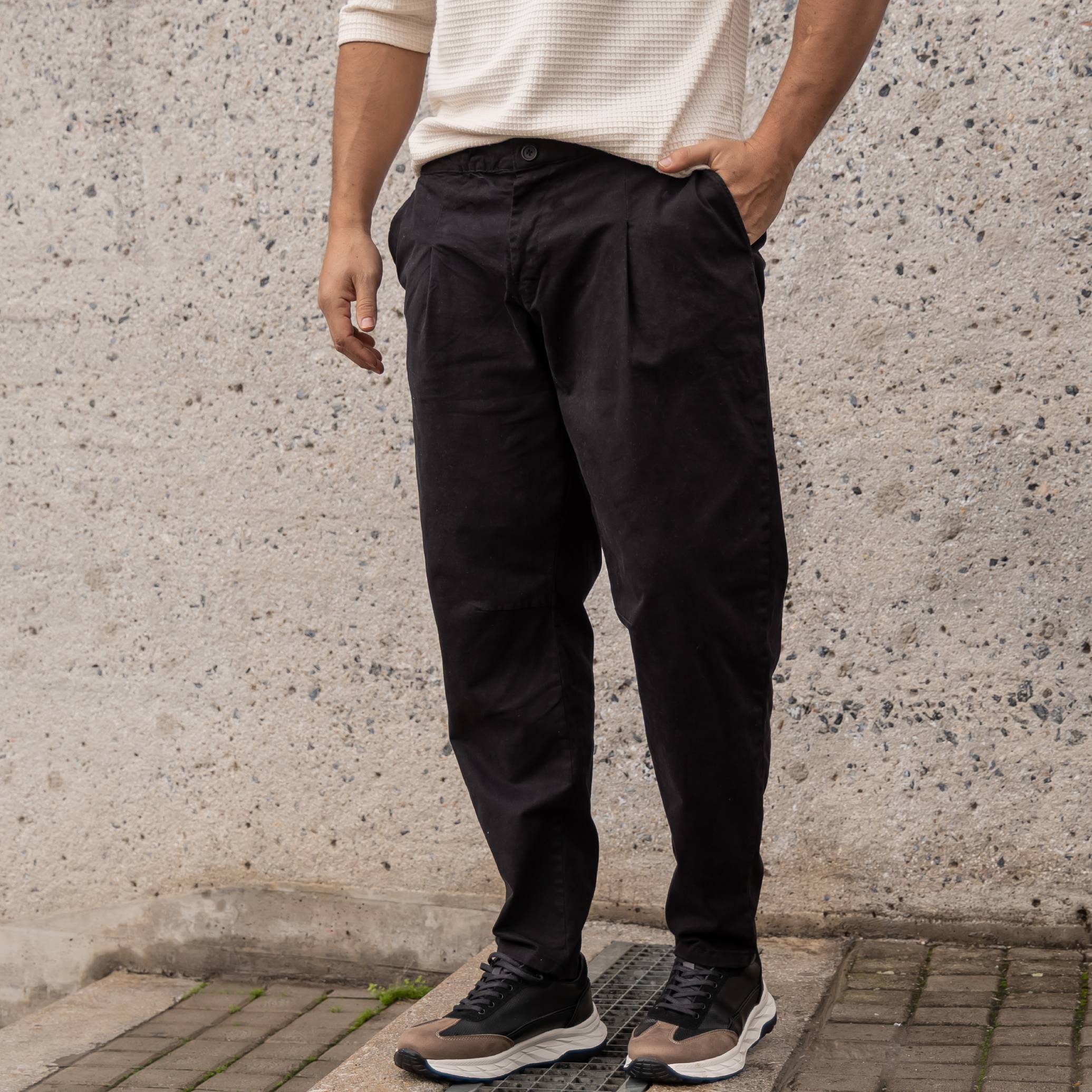 Παντελόνι μαύρο σε άνετη γραμμή