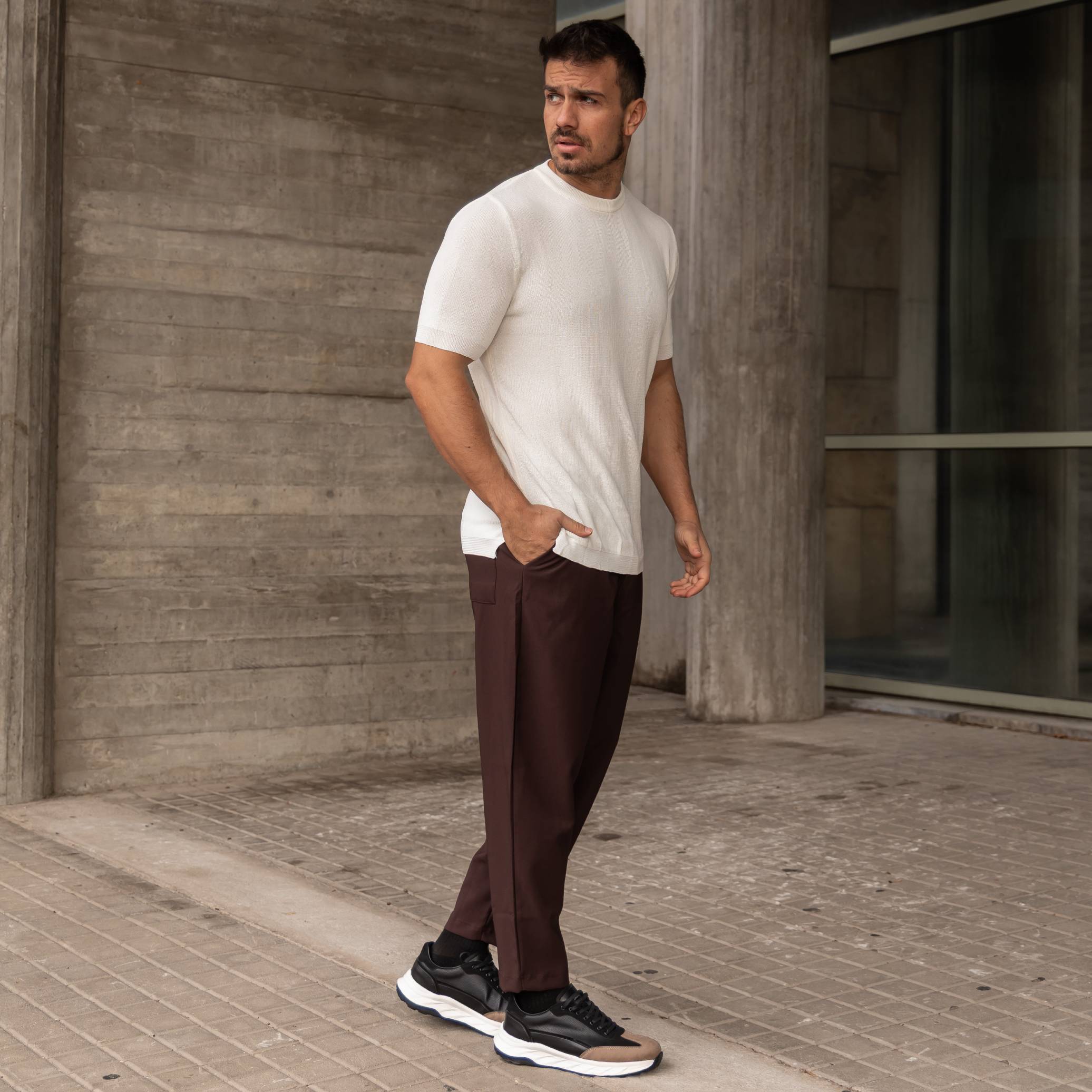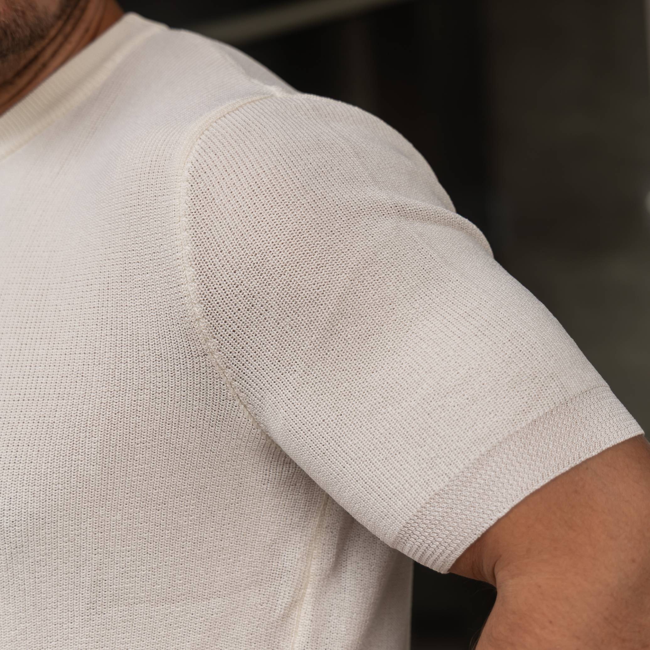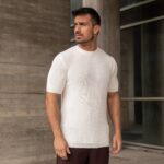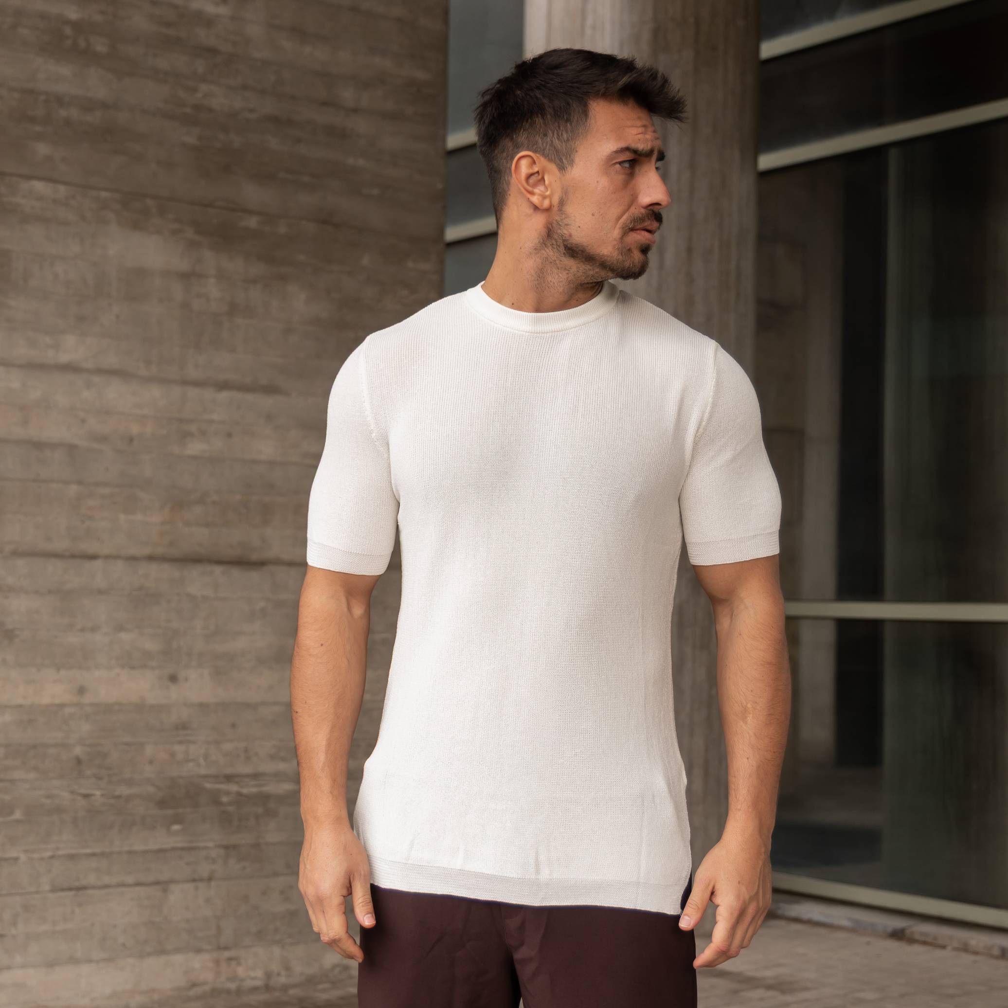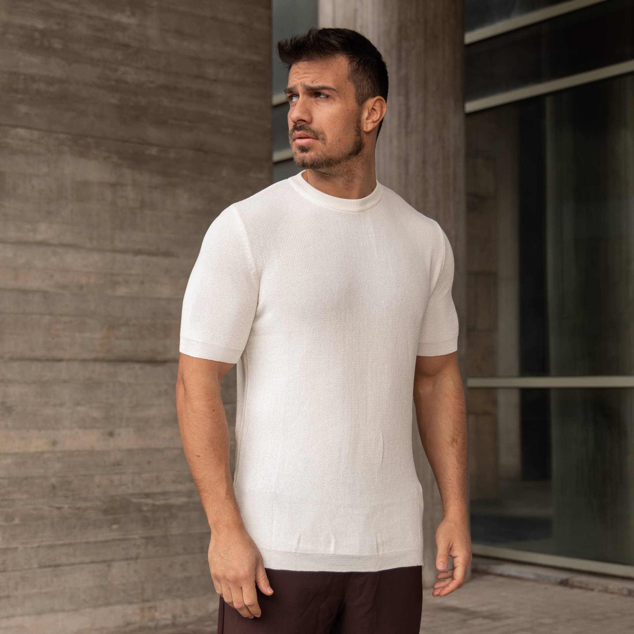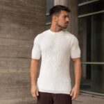 Πλεκτή μπλούζα κοντομάνικη λευκή σε κανονική γραμμή