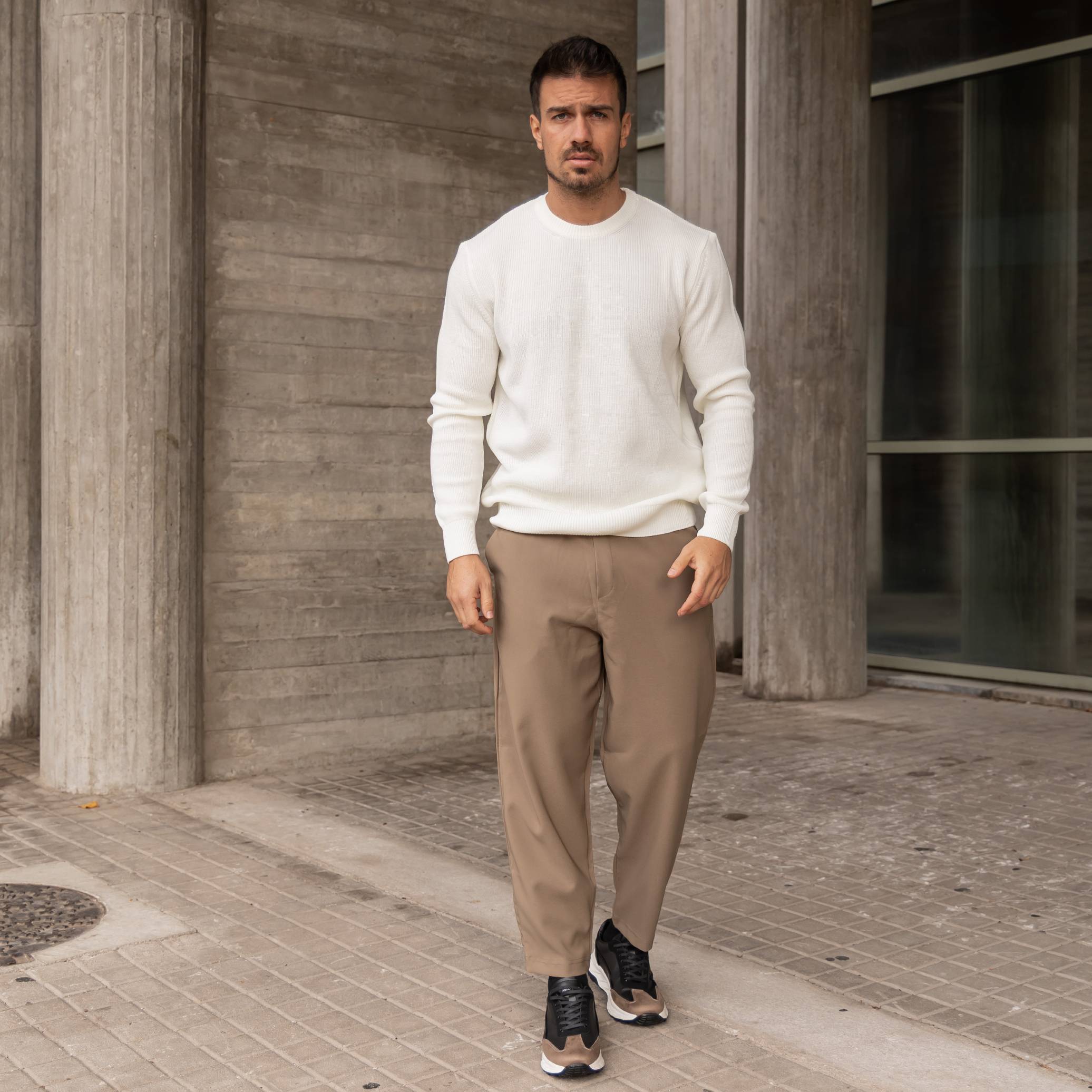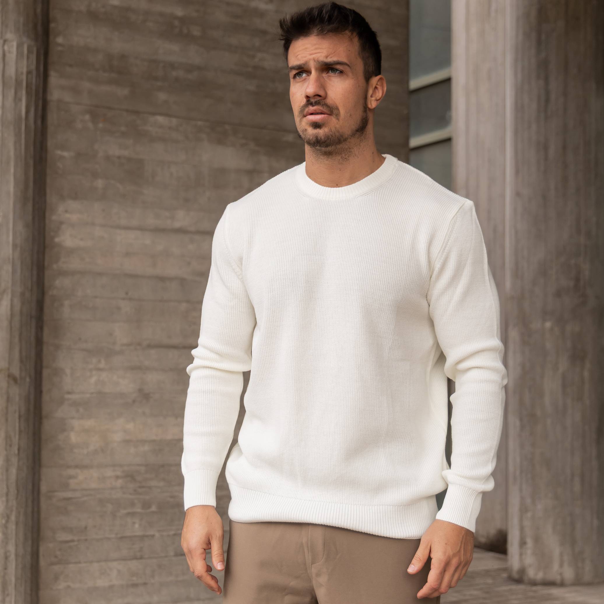 Πλεκτή μπλούζα λευκή σε κανονική γραμμή