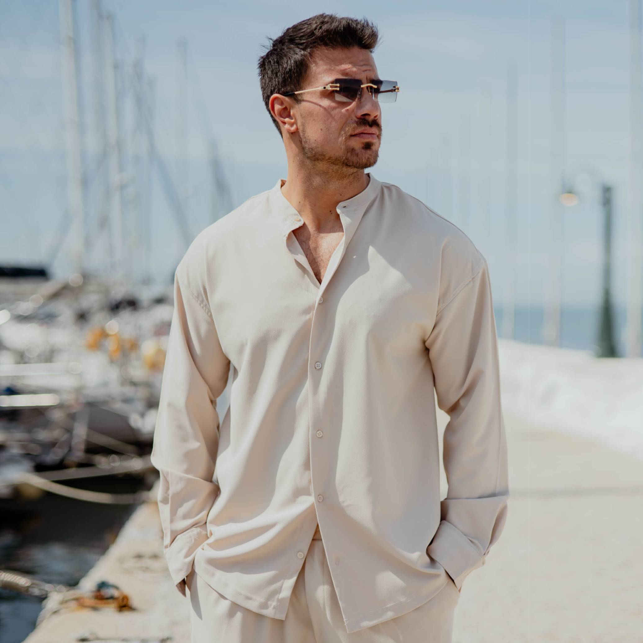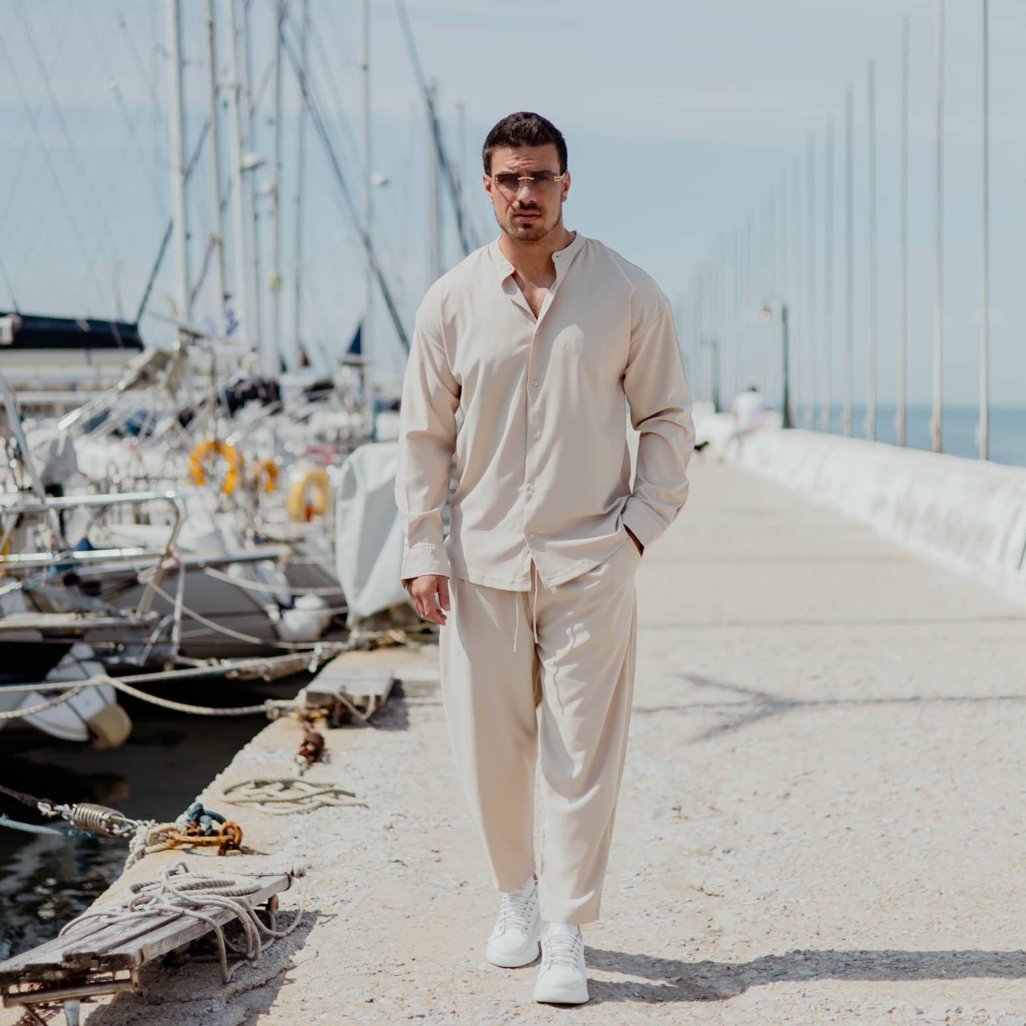 Πουκάμισο μαο μπεζ σε oversized γραμμή
