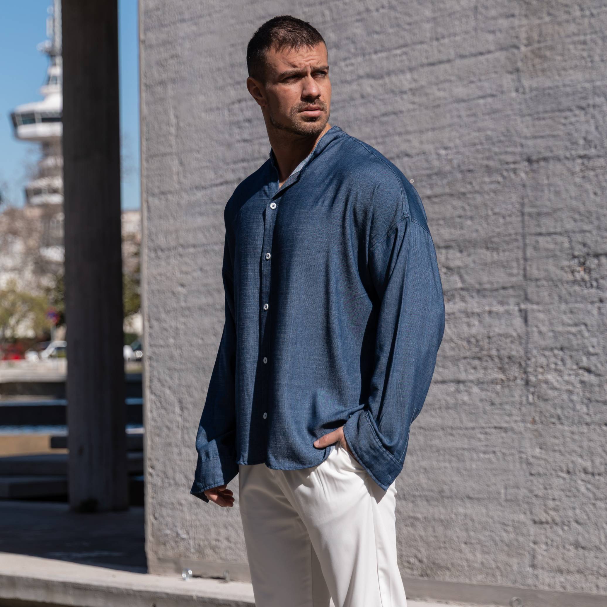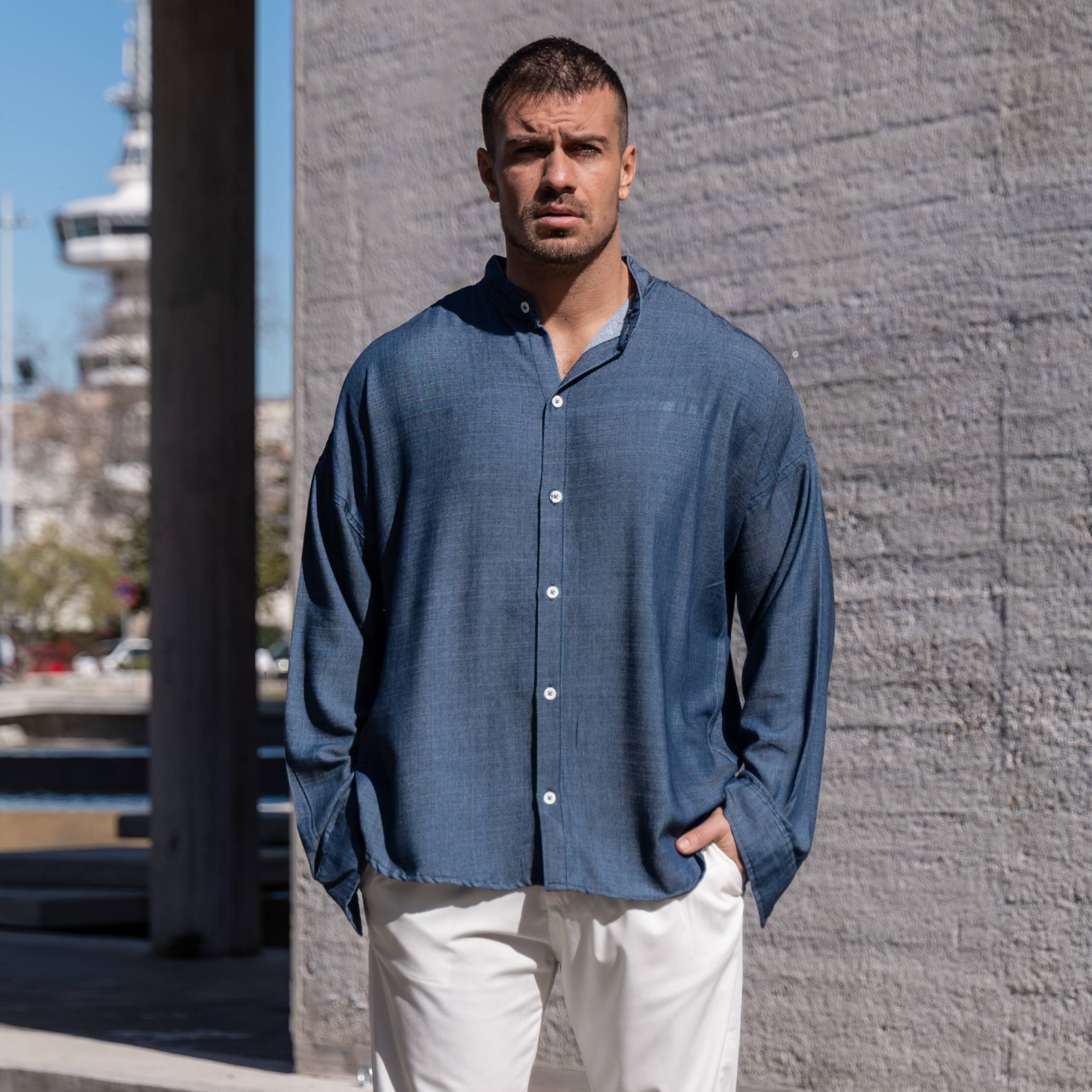 Πουκάμισο μαο τζιν σε oversized γραμμή