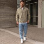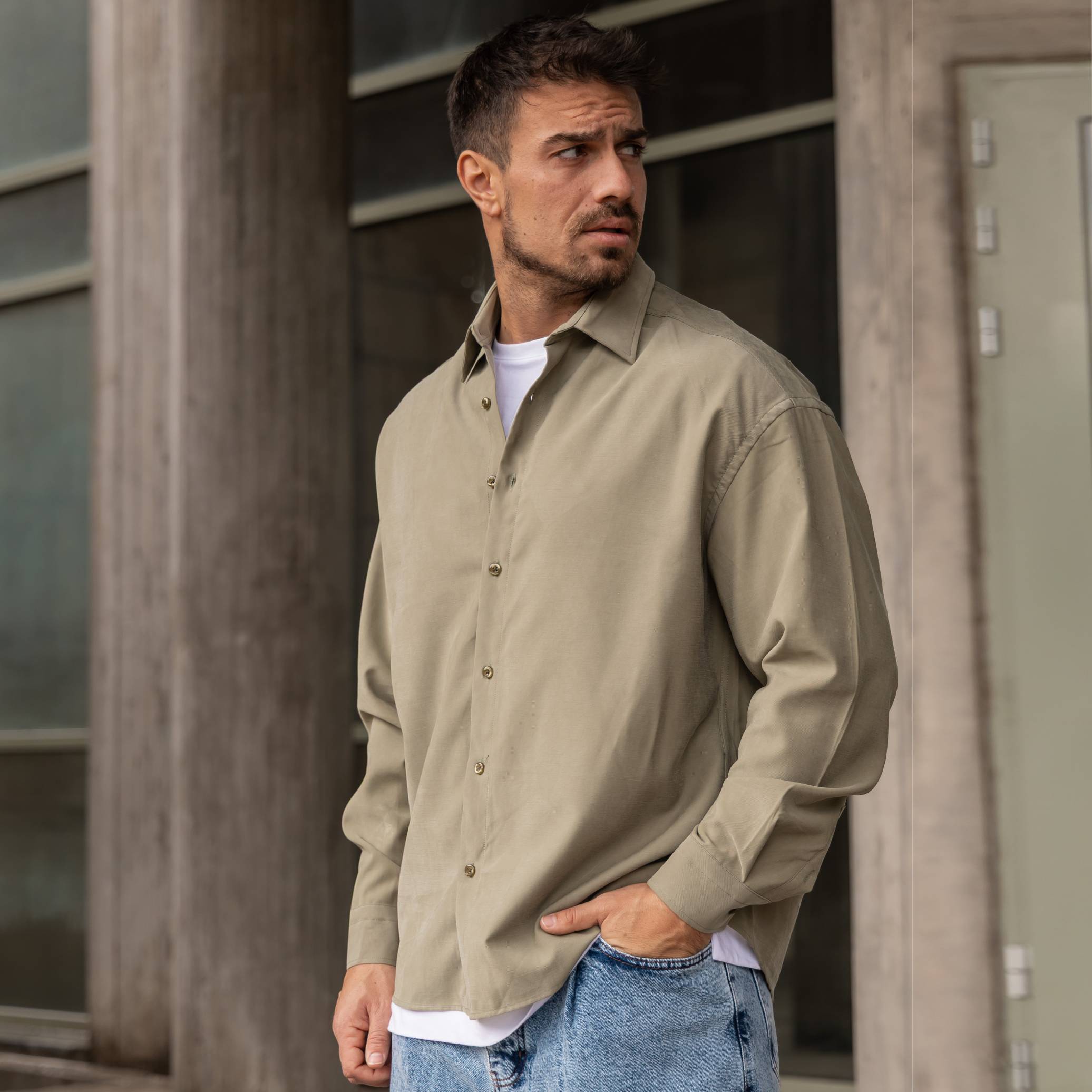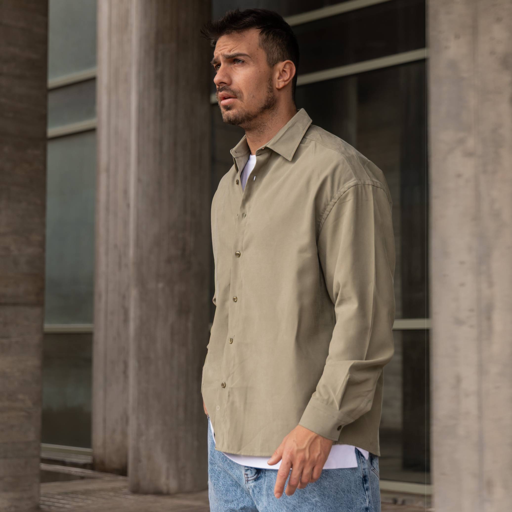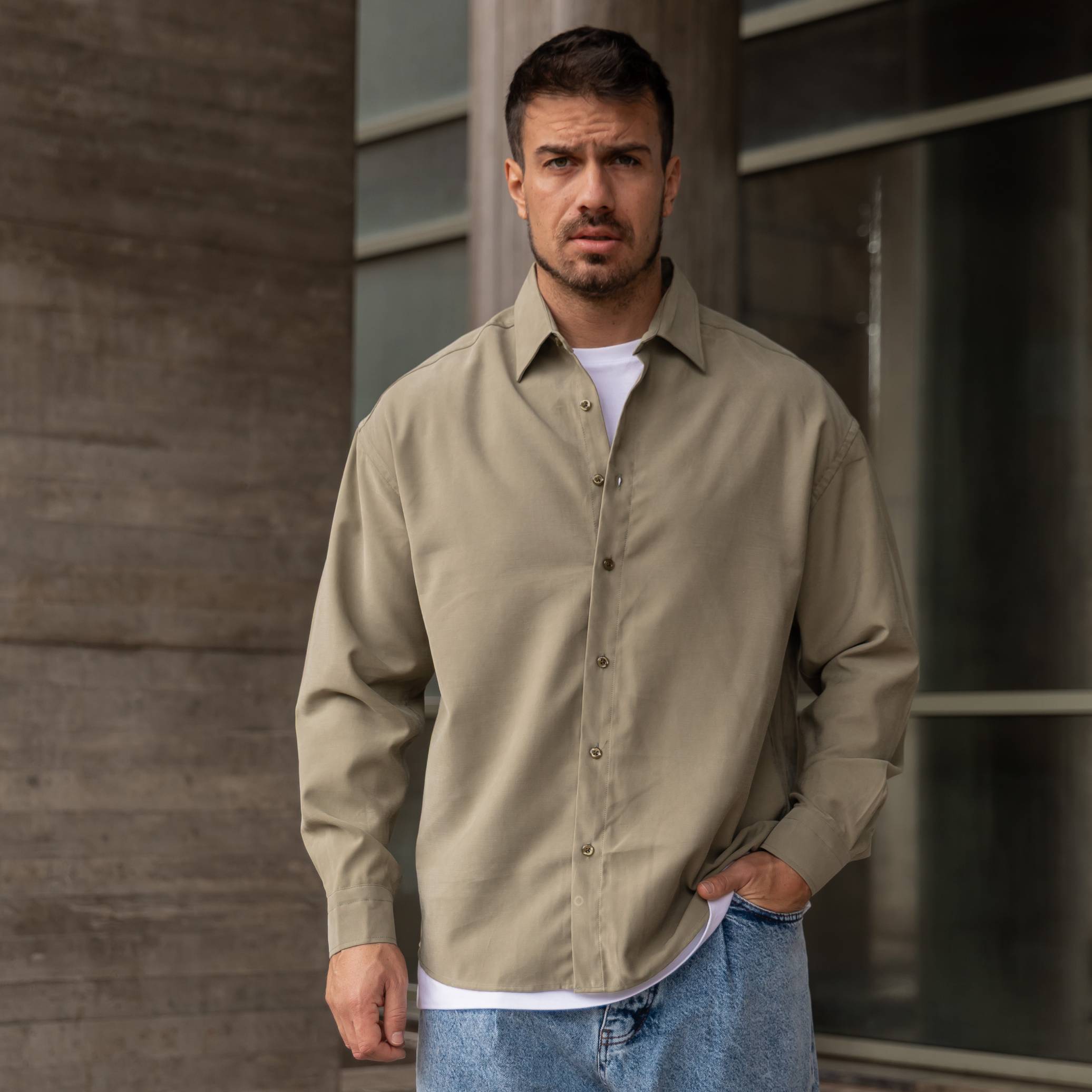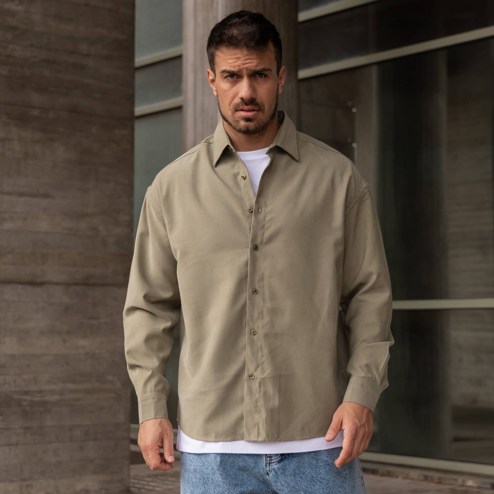 Πουκάμισο-ζακέτα χακί σε oversized γραμμή