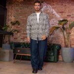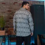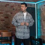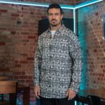 Πουκάμισο-ζακέτα λευκό/μαύρο με σχέδια σε oversized γραμμή