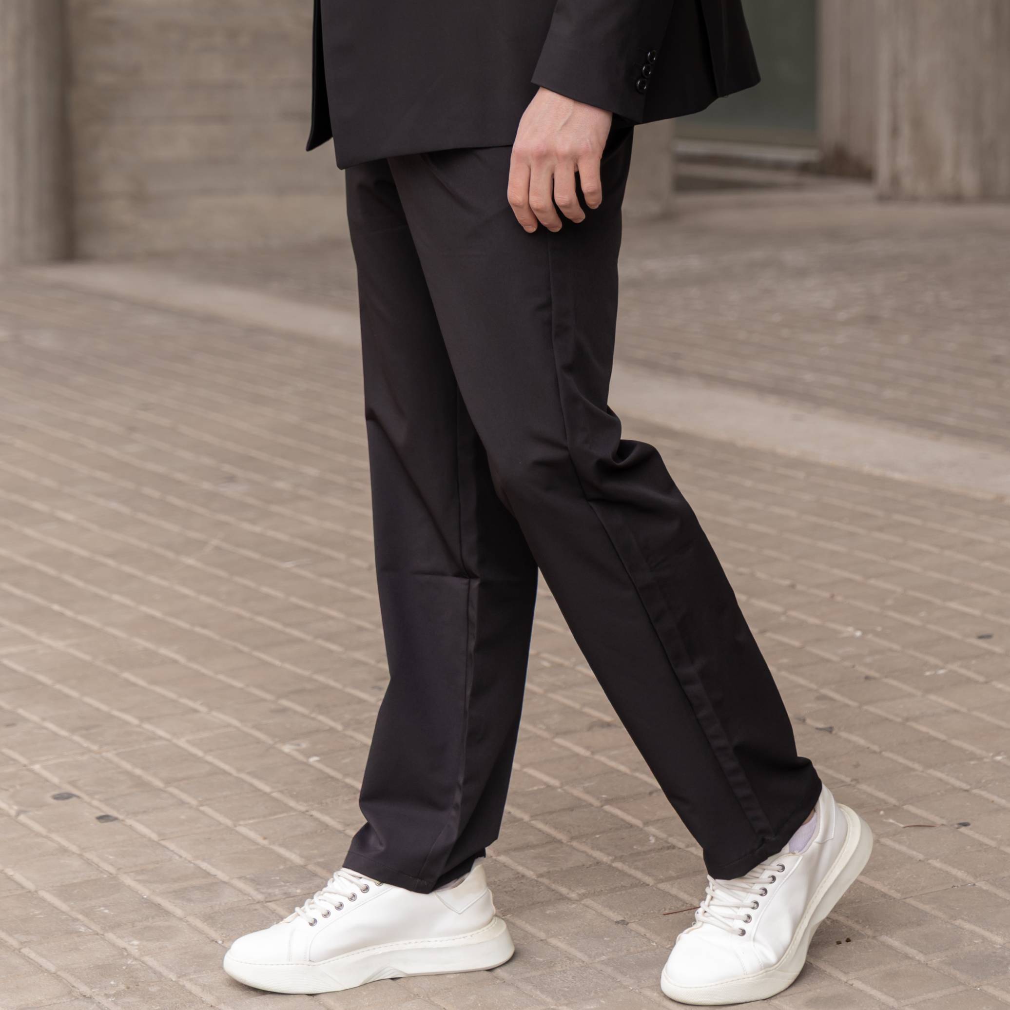 Φόρμα παντελόνι μαύρη με κορδόνι σε κανονική γραμμή