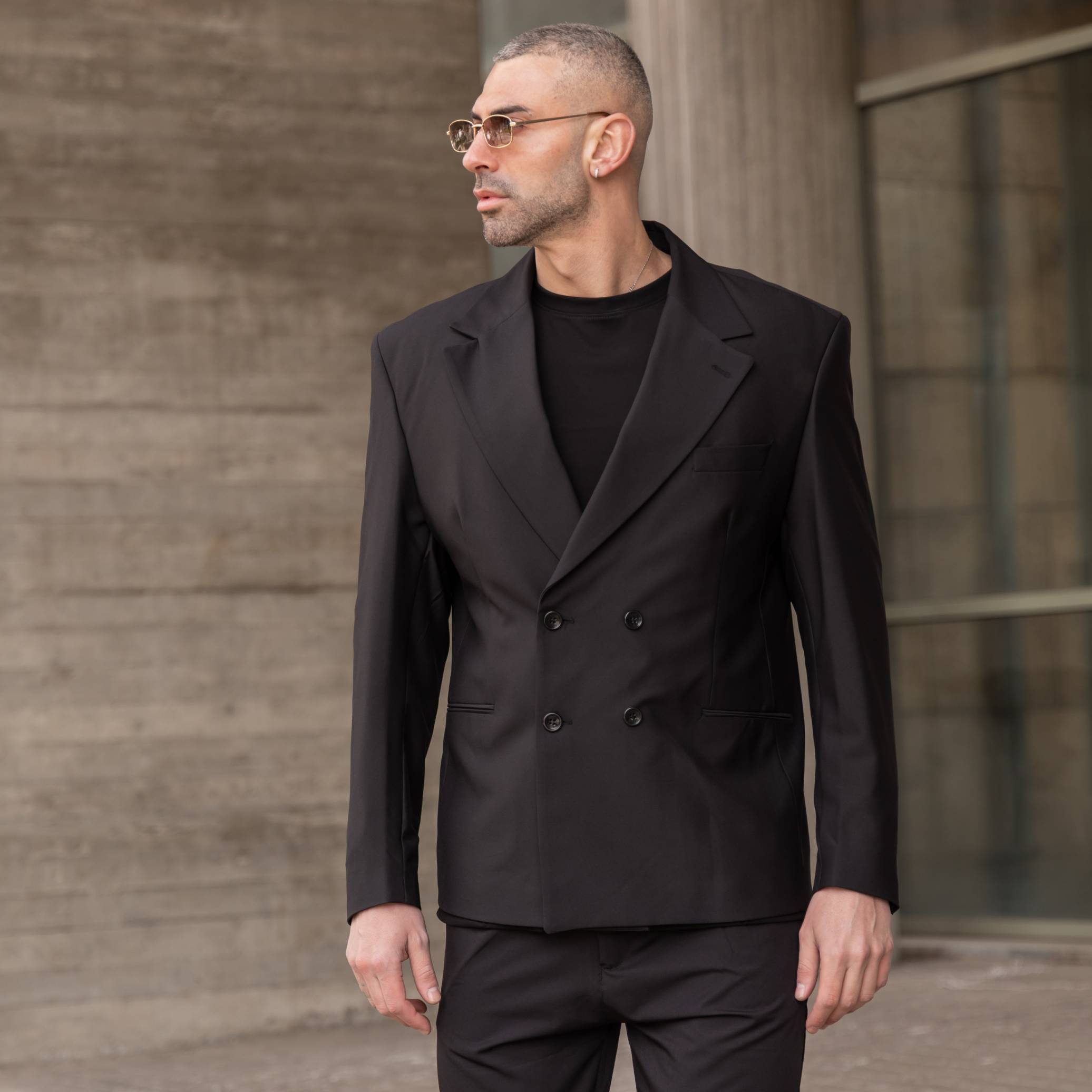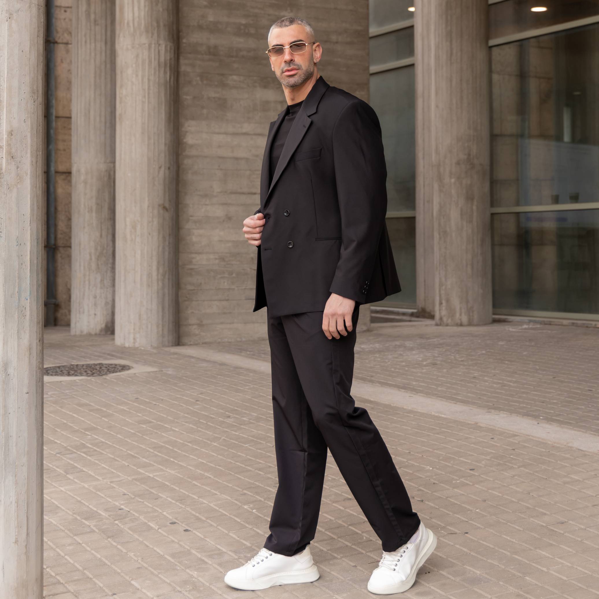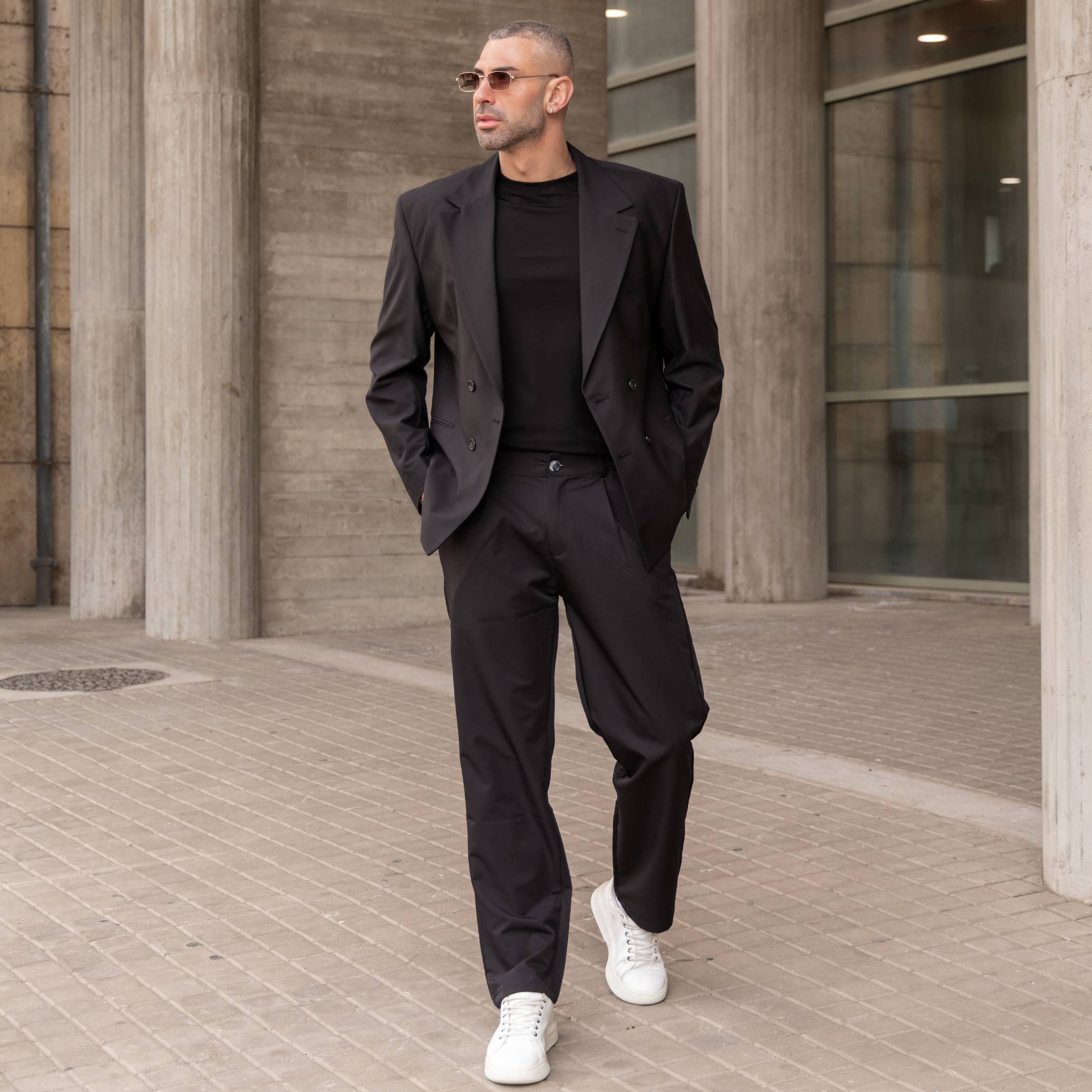 Βερμούδα μαύρη φαρδιά με πιέτες oversized γραμμή