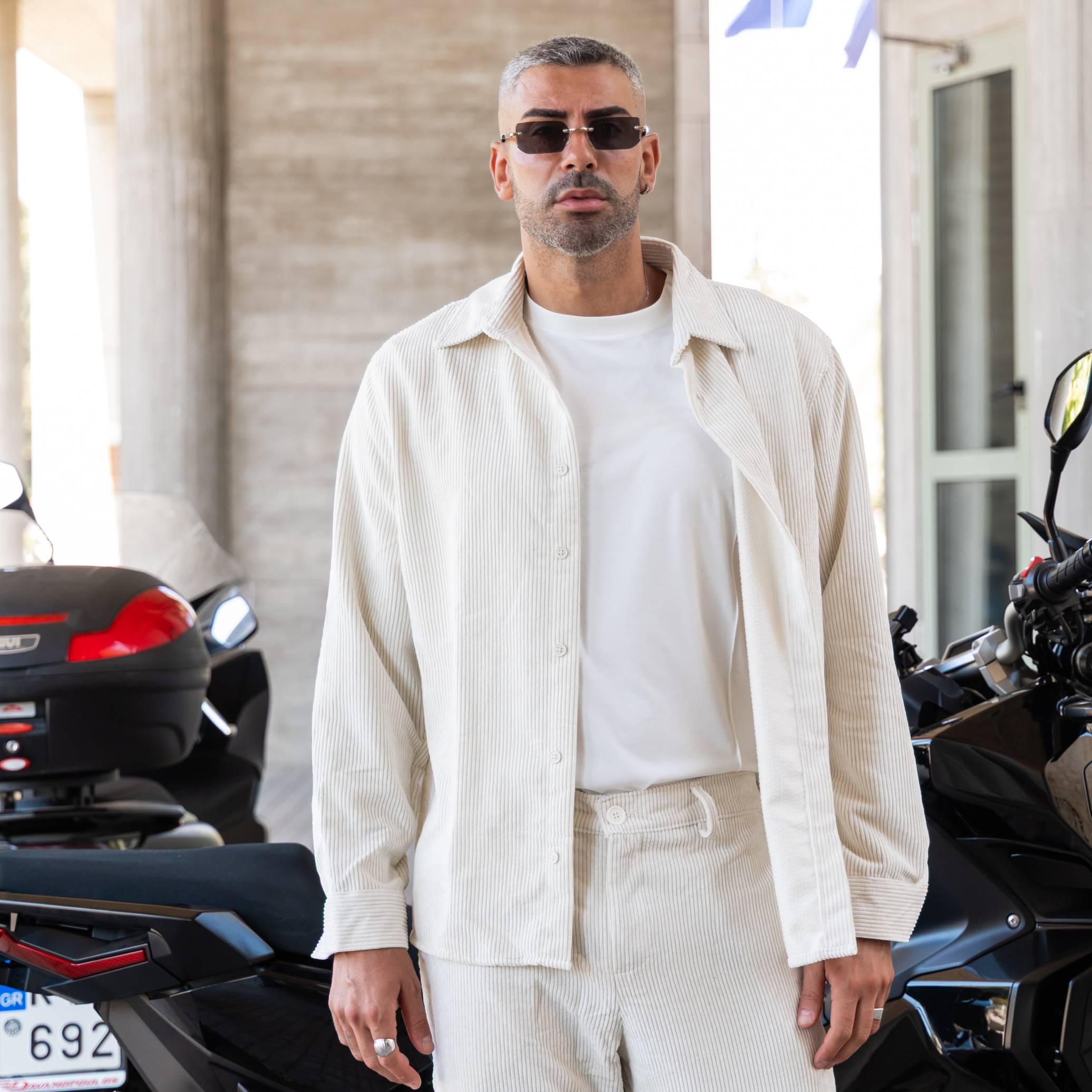 Σετ παντελόνι & πουκάμισο μπεζ κοτλέ σε άνετη γραμμή