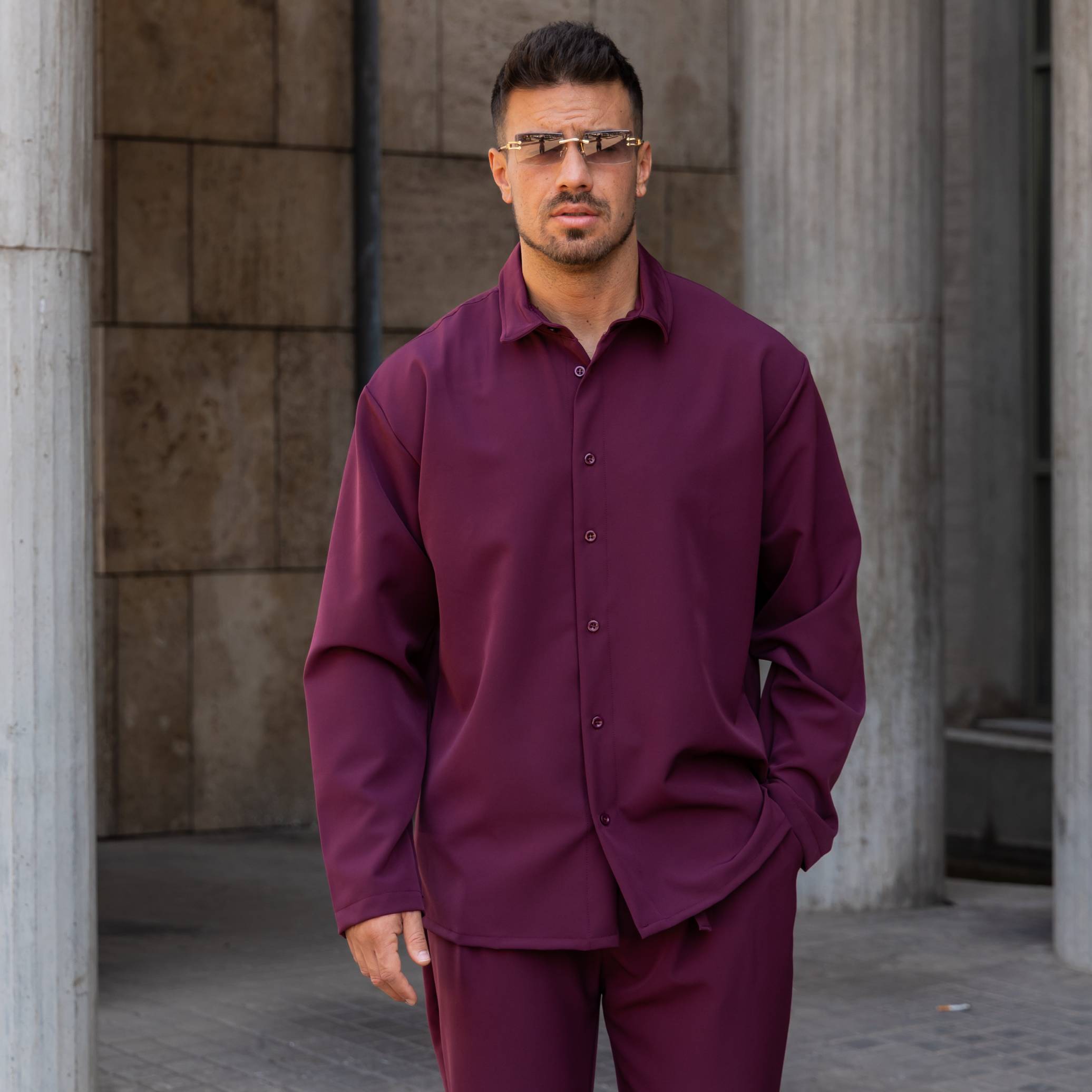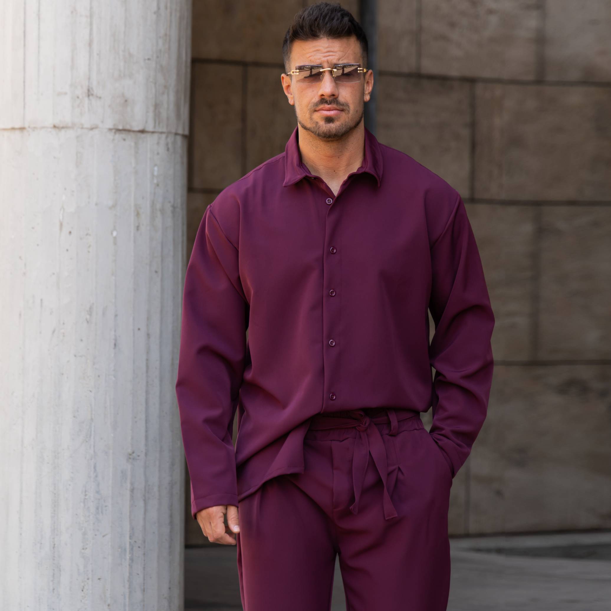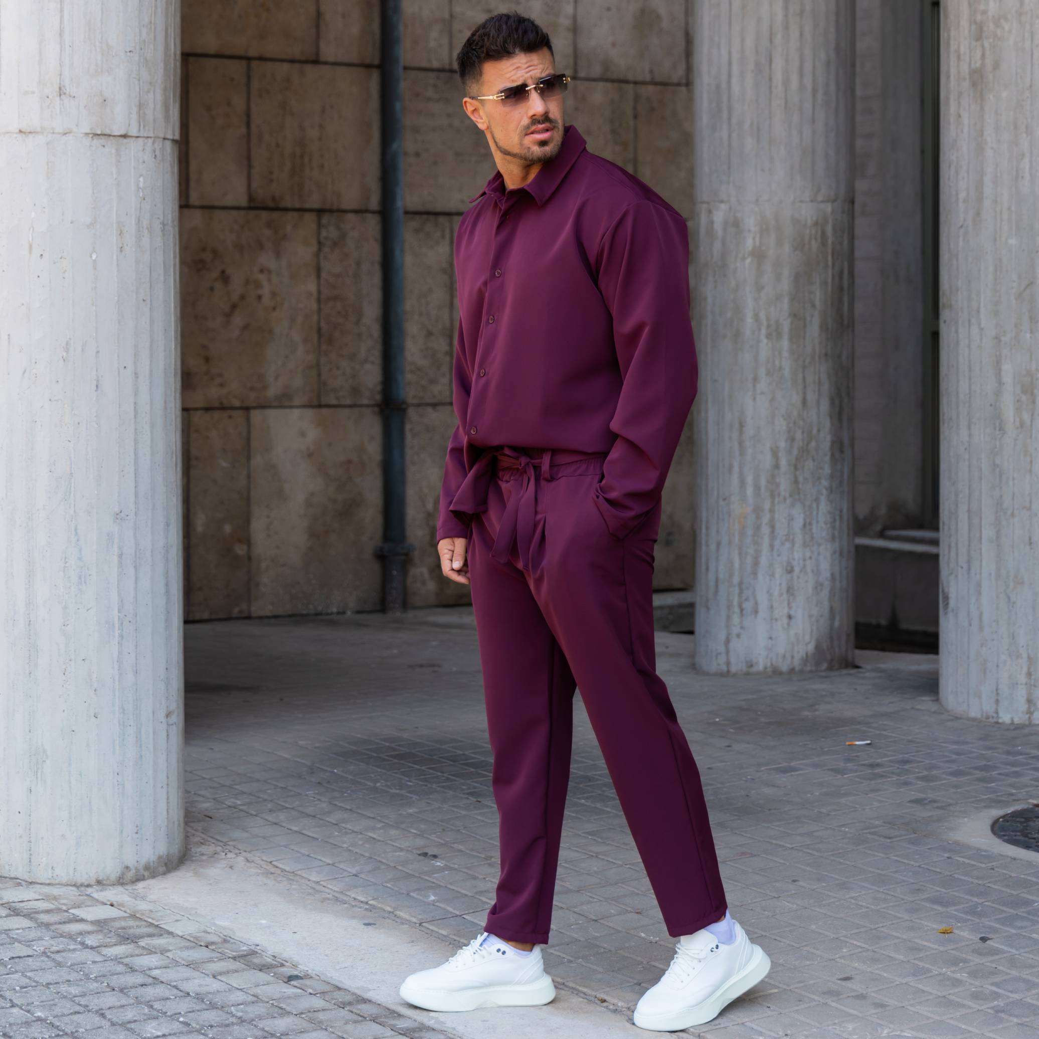Σετ παντελόνι & πουκάμισο μπορντό σε άνετη γραμμή
