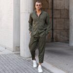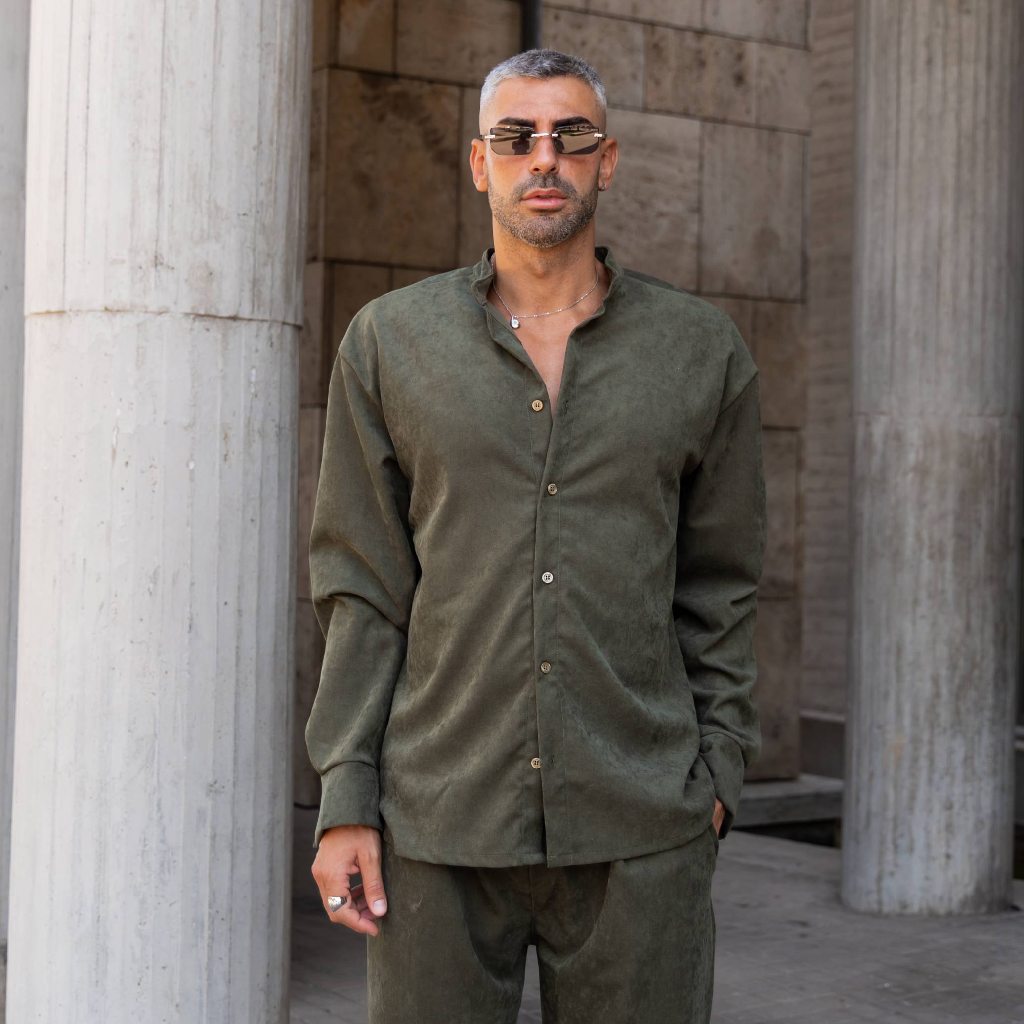 Σετ παντελόνι & πουκάμισο χακί τύπου κοτλέ σε άνετη γραμμή