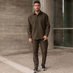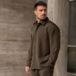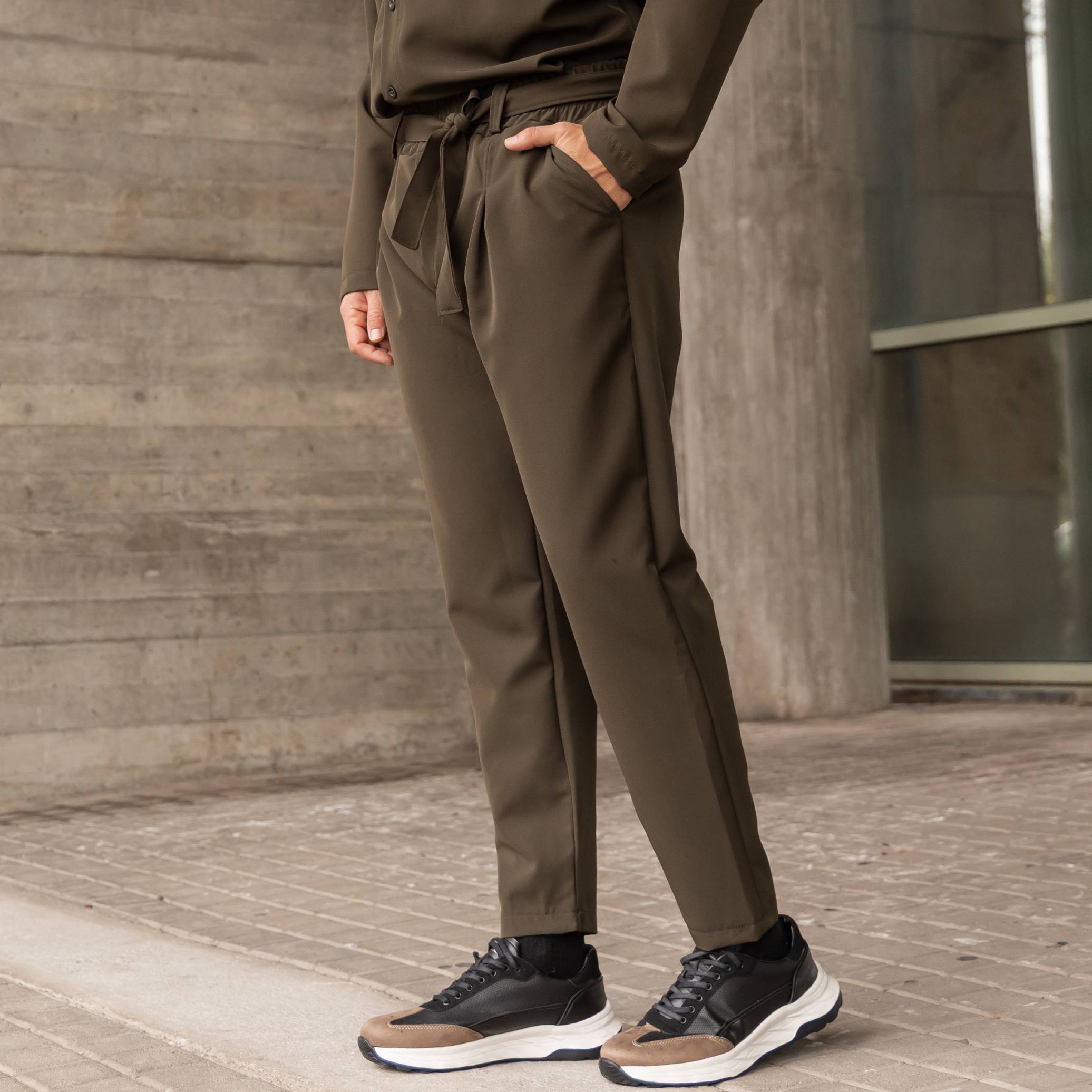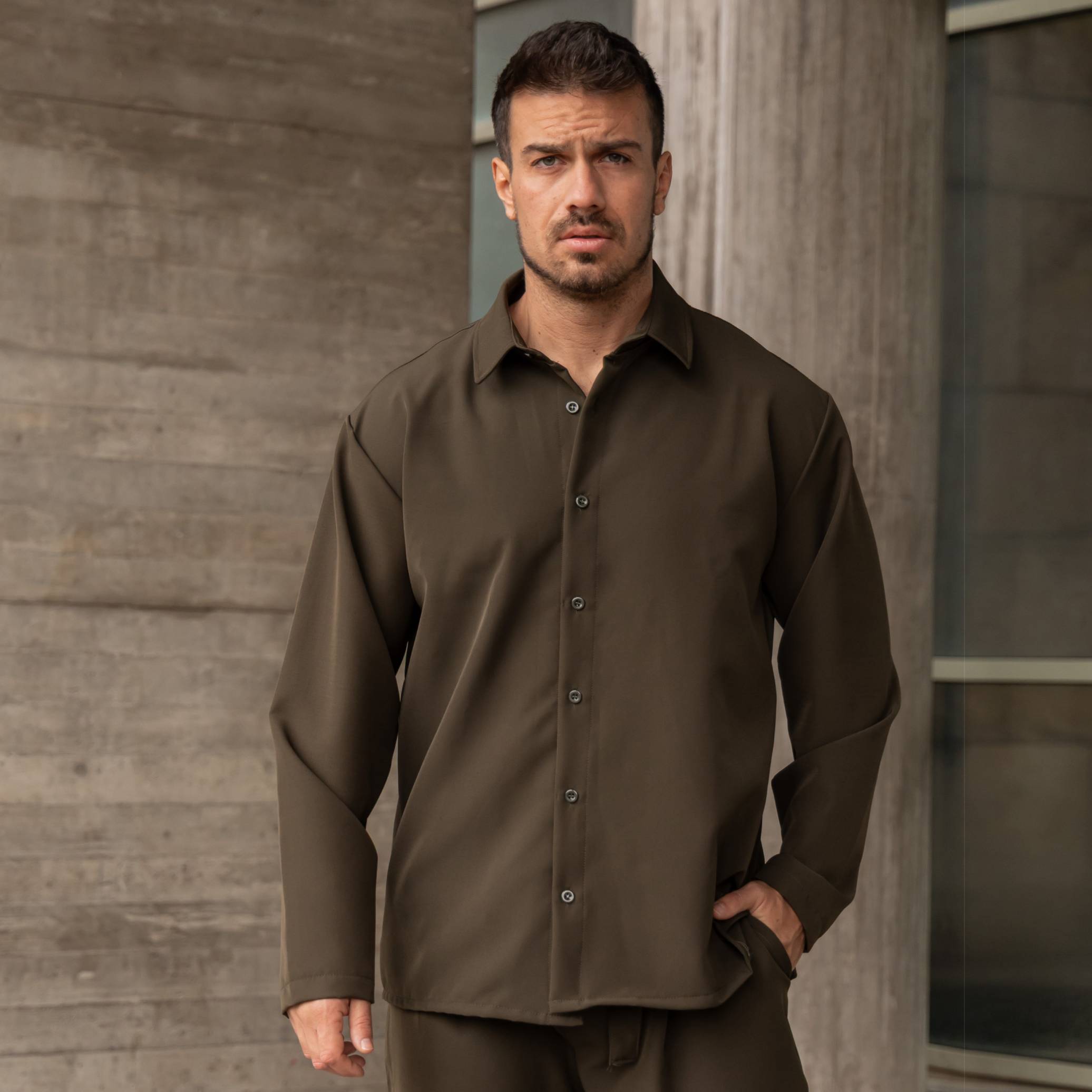 Σετ παντελόνι & πουκάμισο λαδί σε άνετη γραμμή