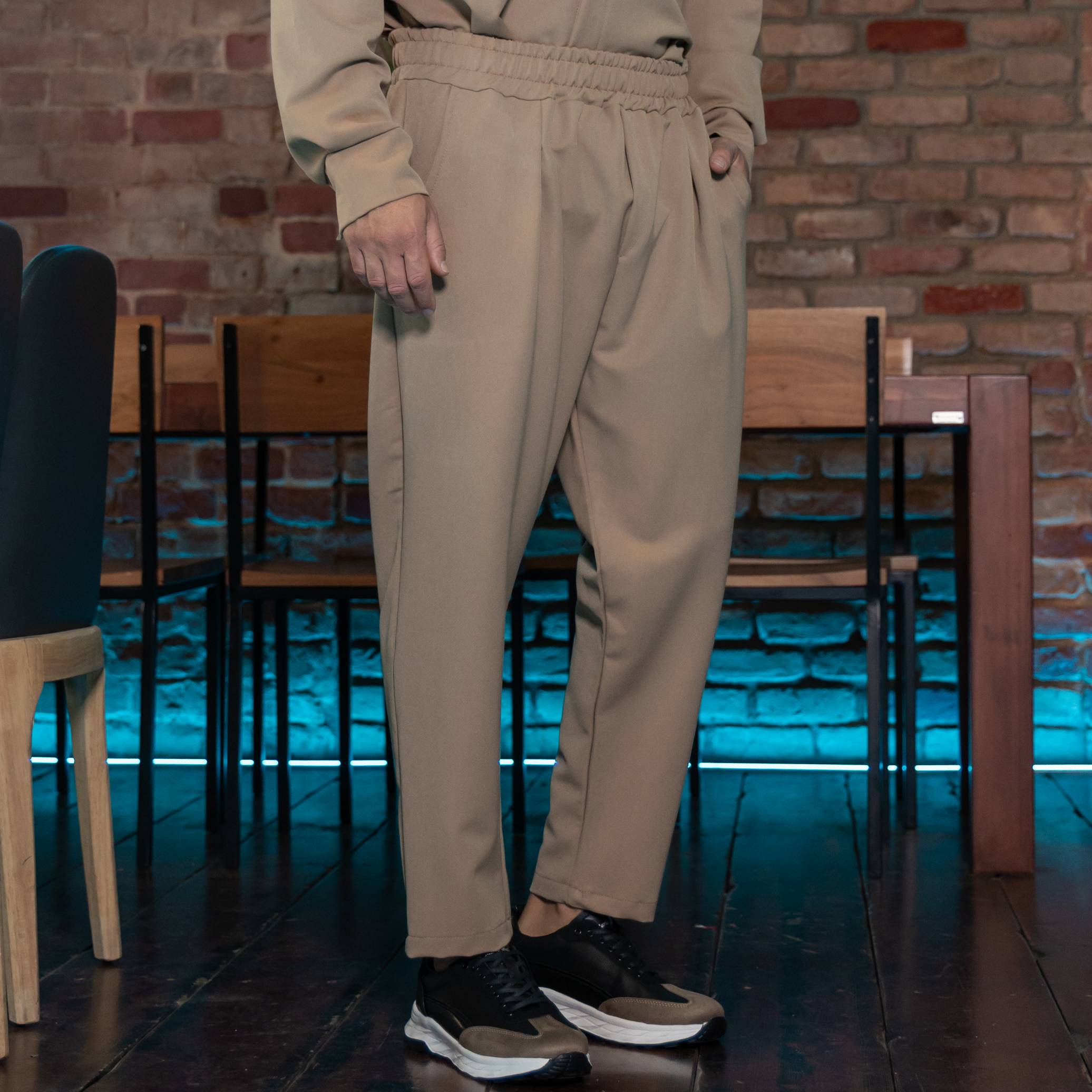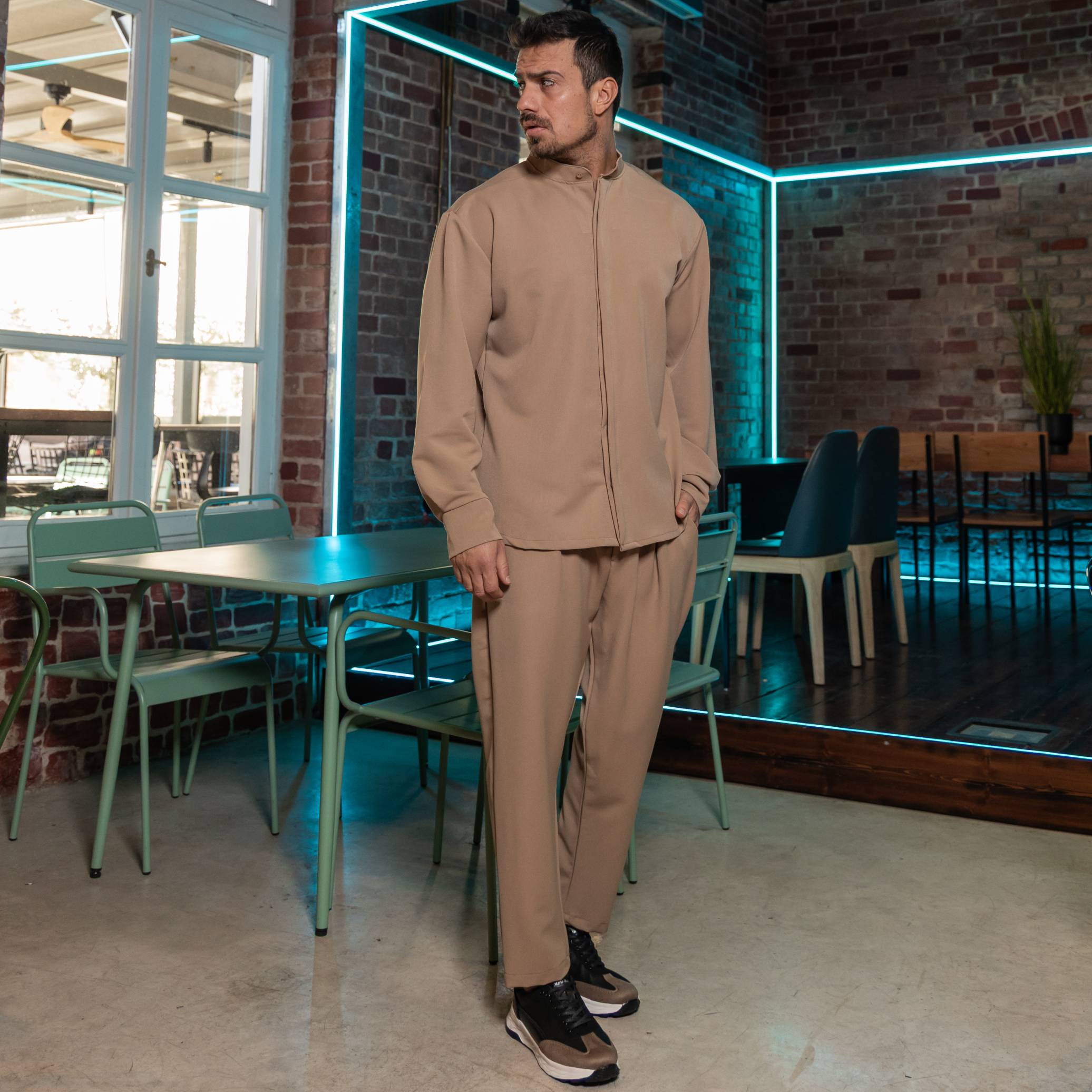 Σετ παντελόνι & πουκάμισο μαο camel σε άνετη γραμμή