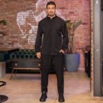 Σετ παντελόνι & πουκάμισο μαο μαύρο σε άνετη γραμμή