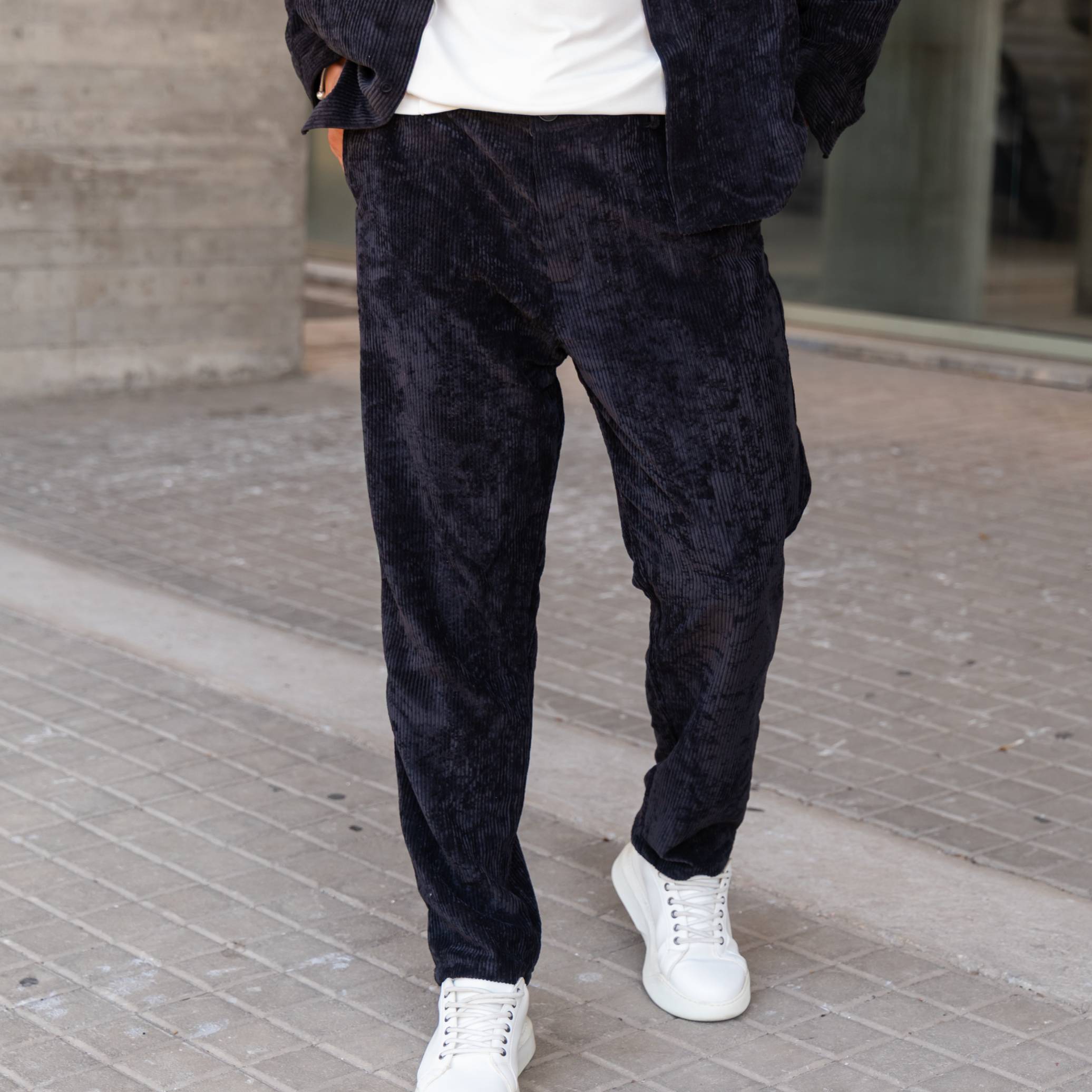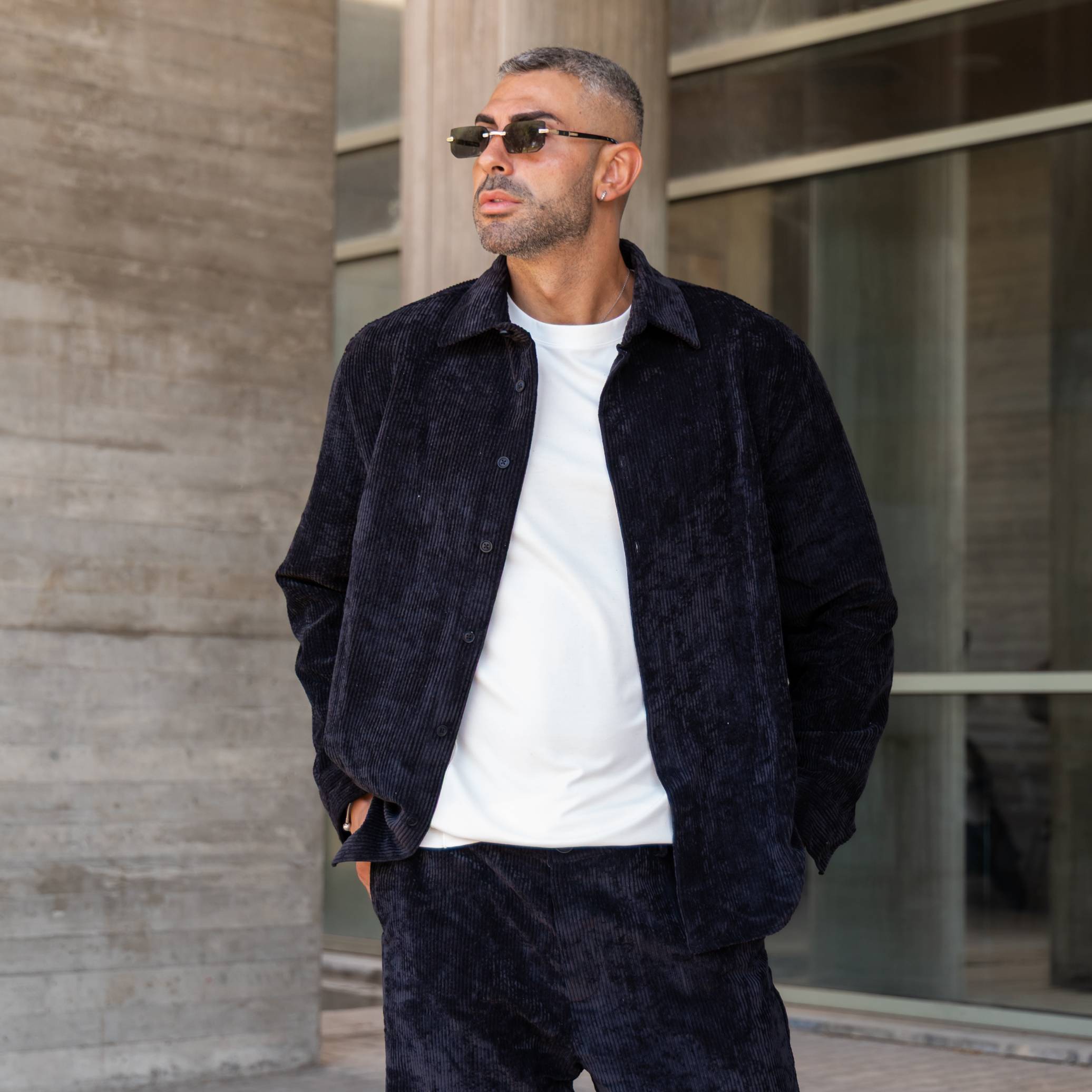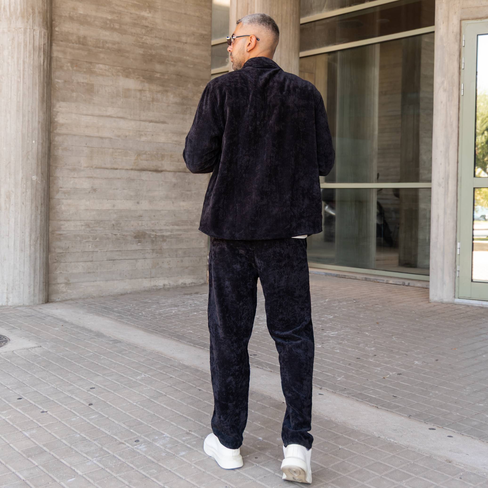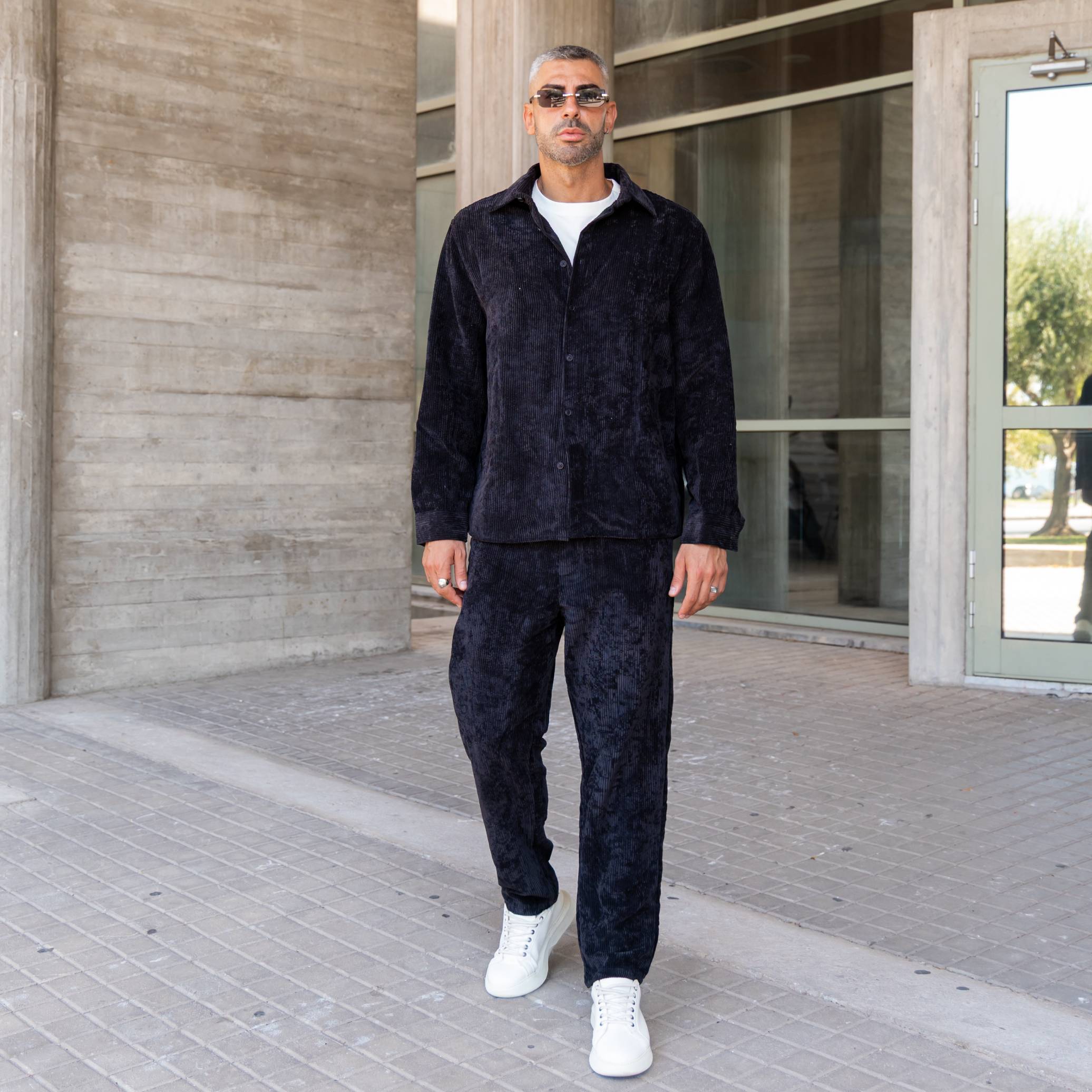 Σετ παντελόνι & πουκάμισο μαύρο κοτλέ σε άνετη γραμμή