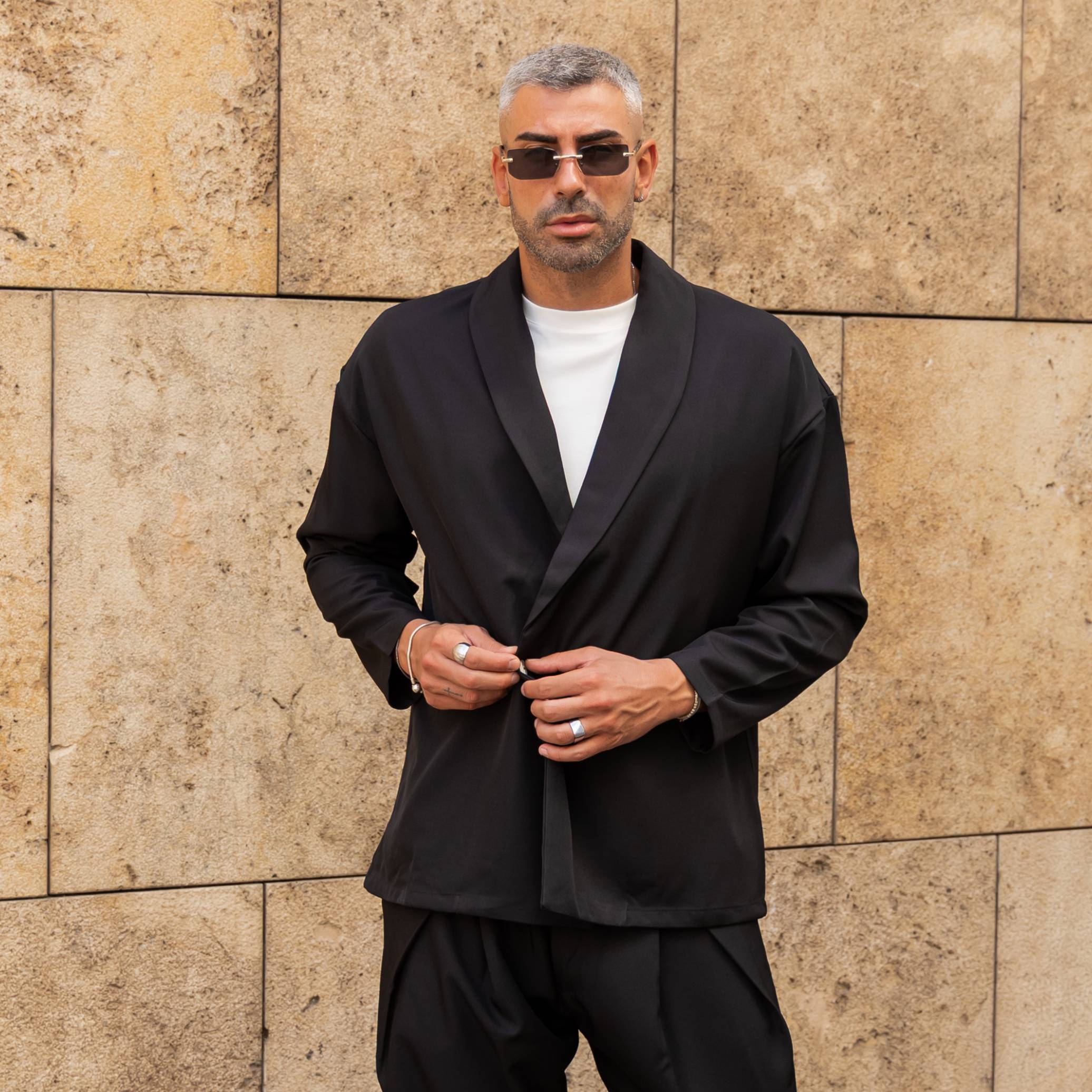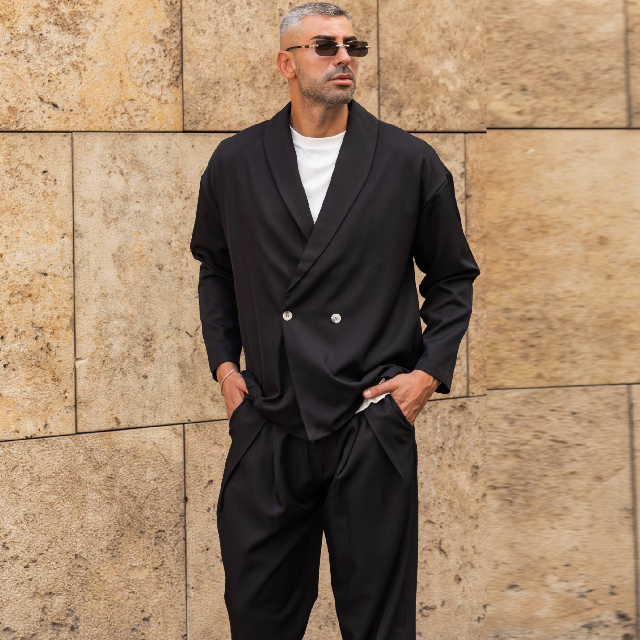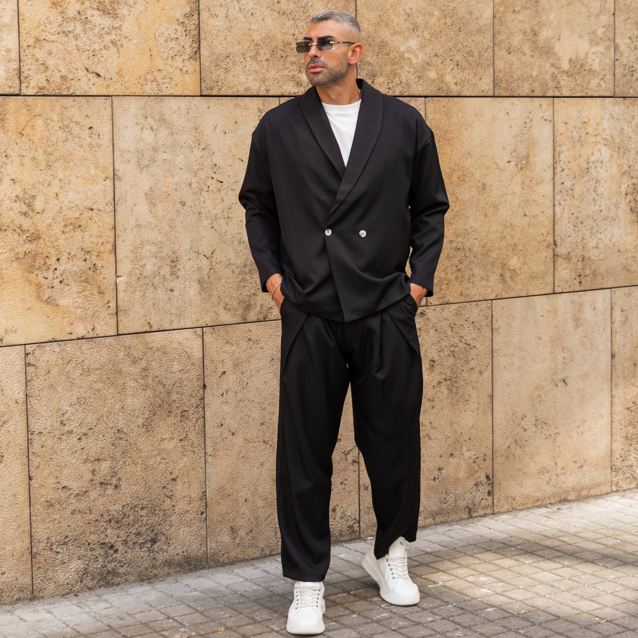Σετ παντελόνι & σακάκι μαύρο σε oversized γραμμή
