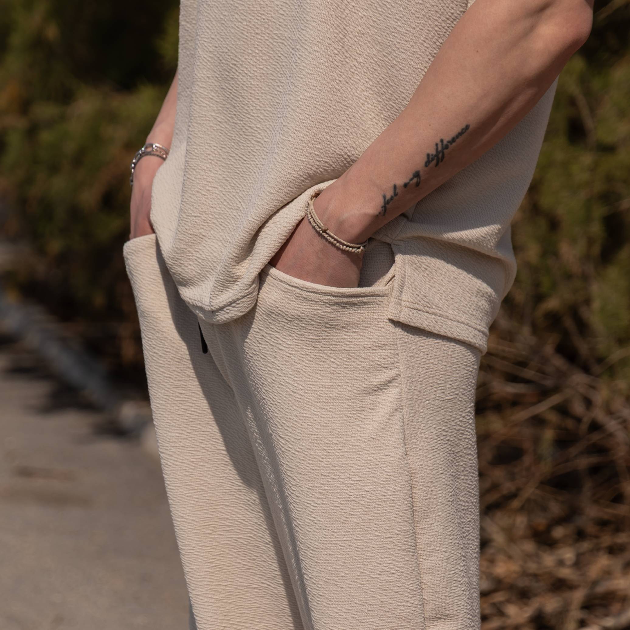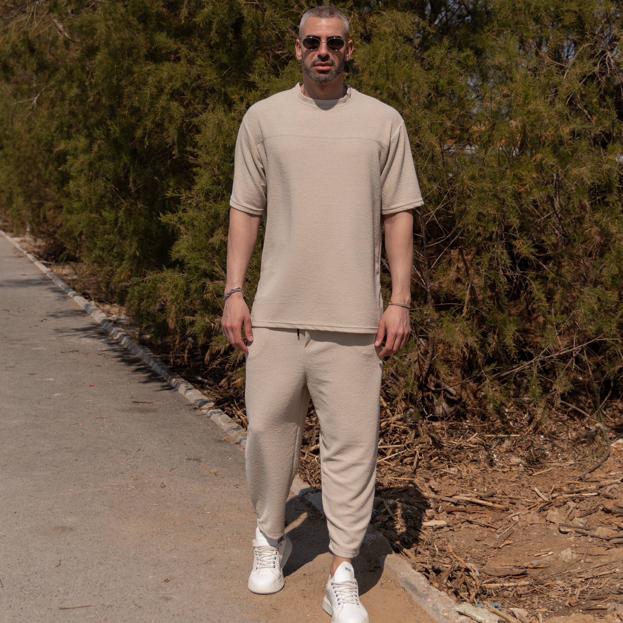 Σετ παντελόνι & T-shirt μπεζ σε oversized γραμμή