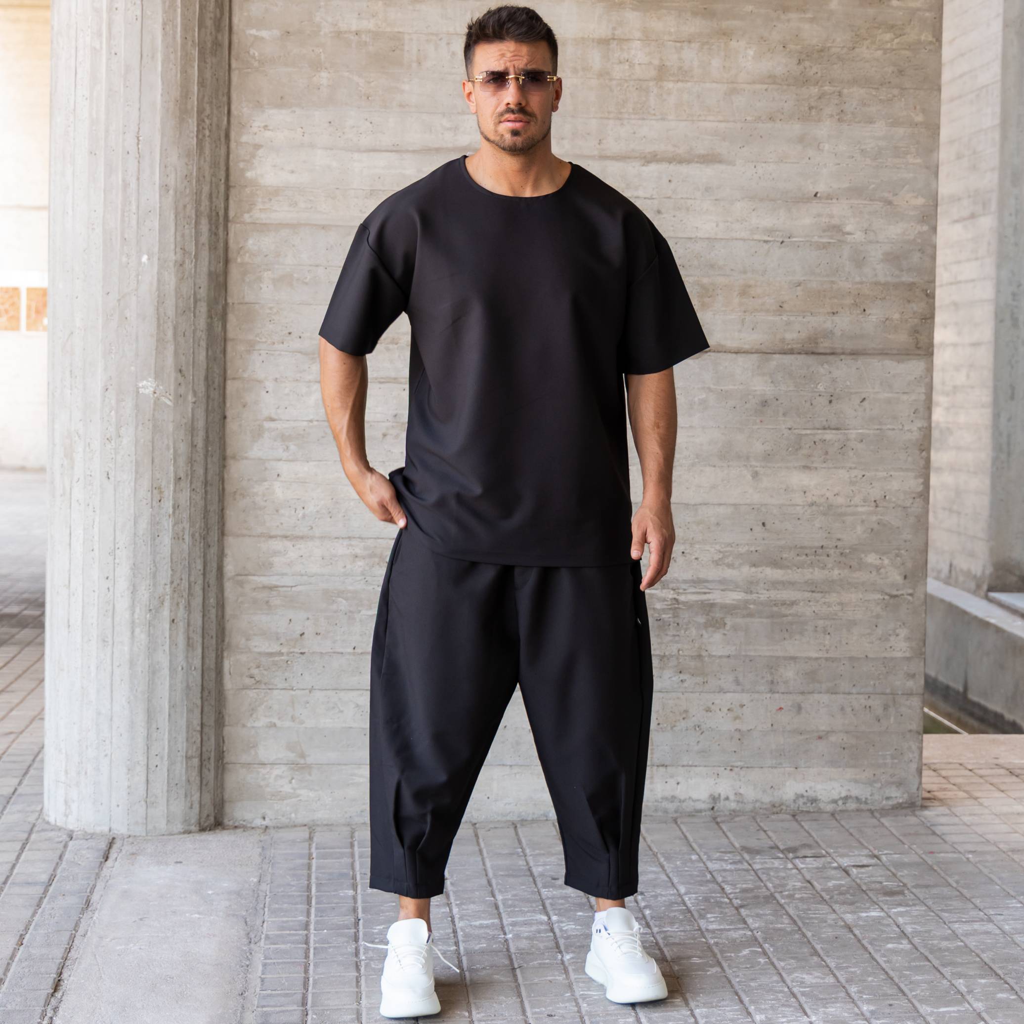 Σετ παντελόνι & T-shirt μαύρο σε oversized γραμμή