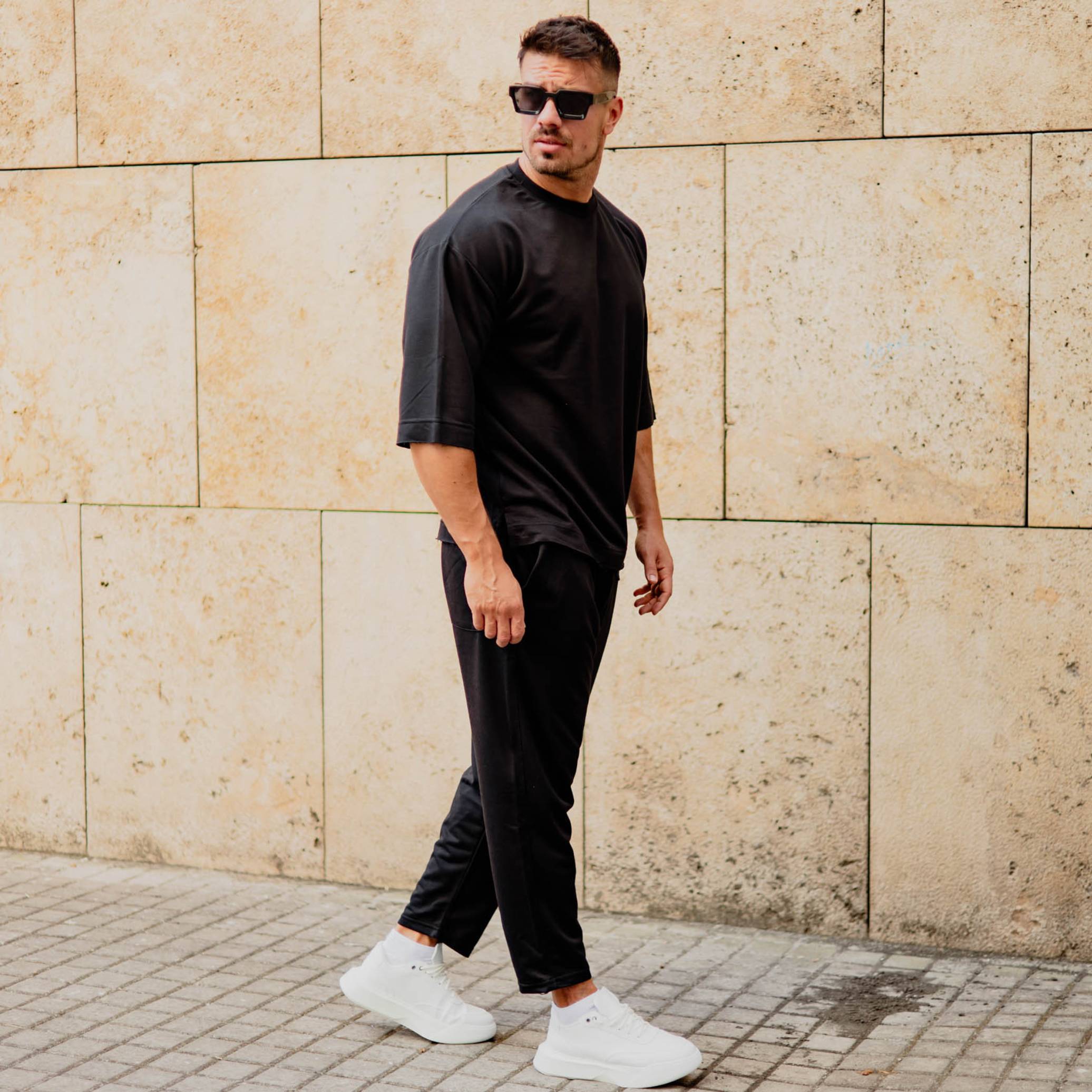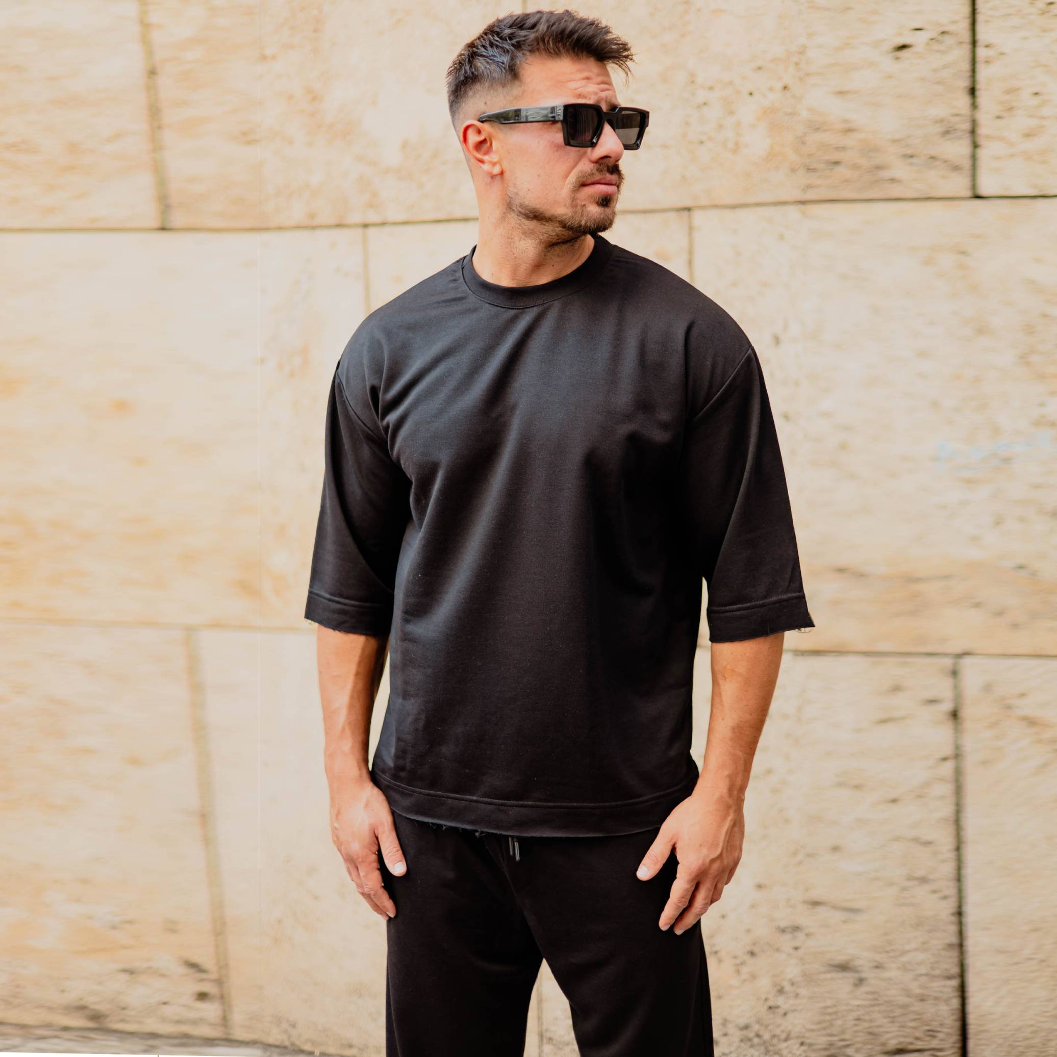 Σετ παντελόνι & T-shirt μαύρο 3/4 μανίκι σε κανονική γραμμή