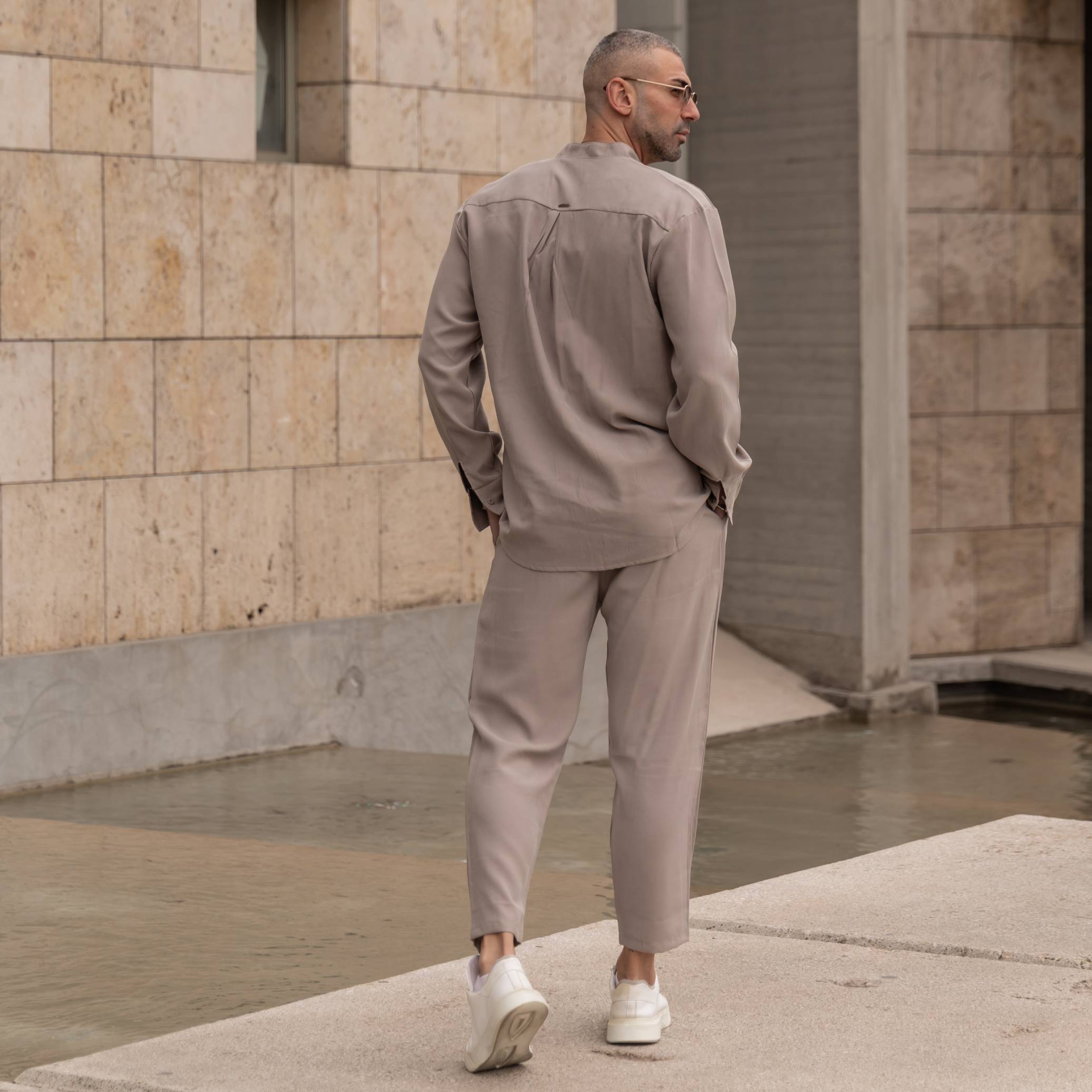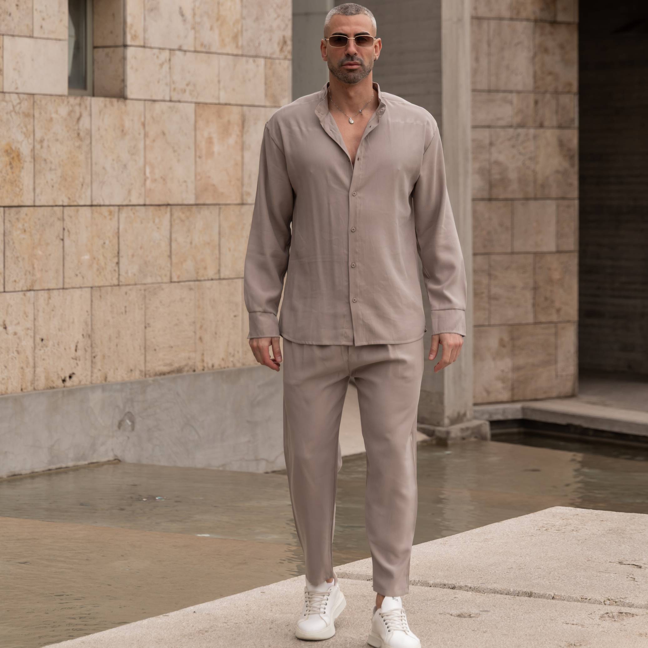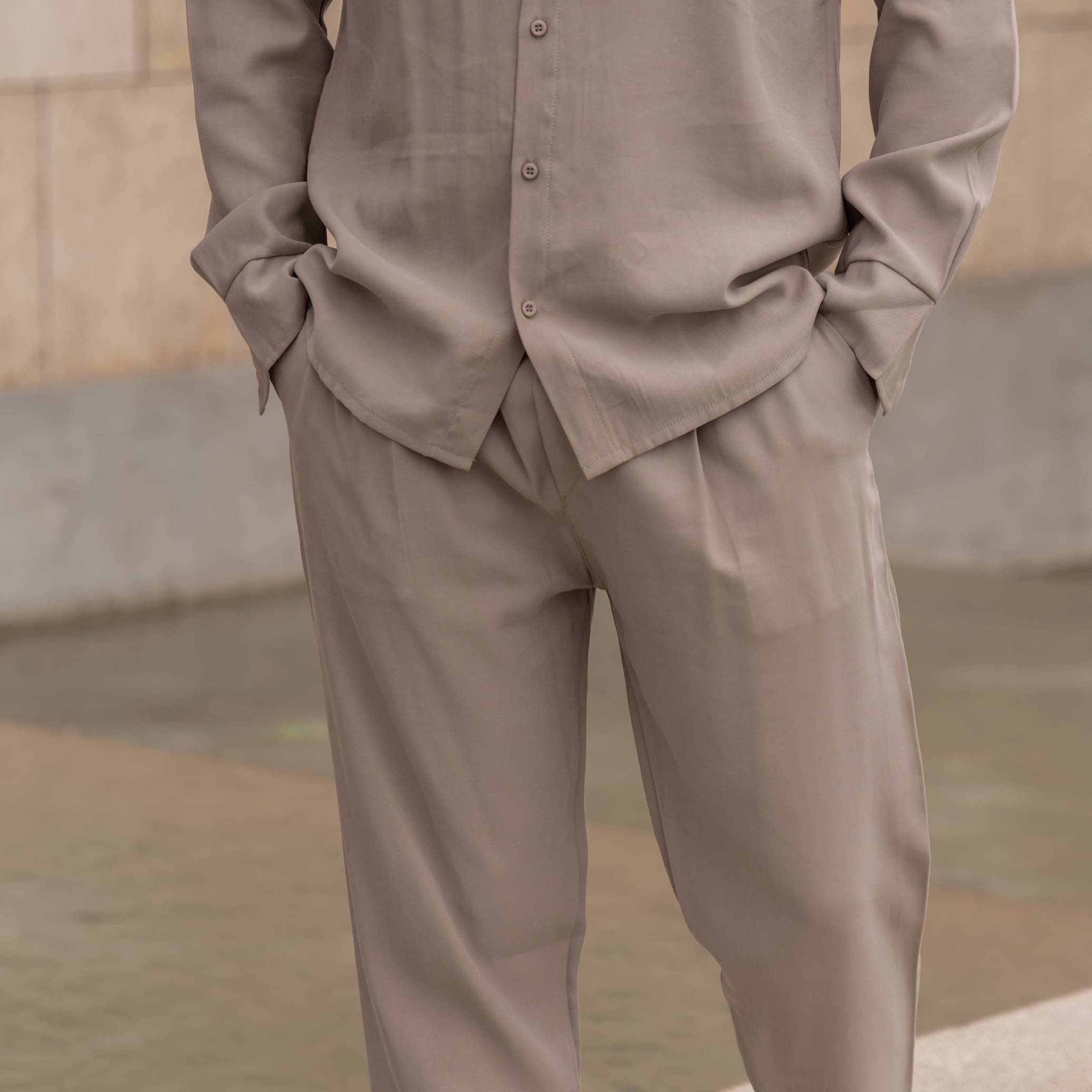Φόρμα παντελόνι μόκα με κορδόνι σε κανονική γραμμή
