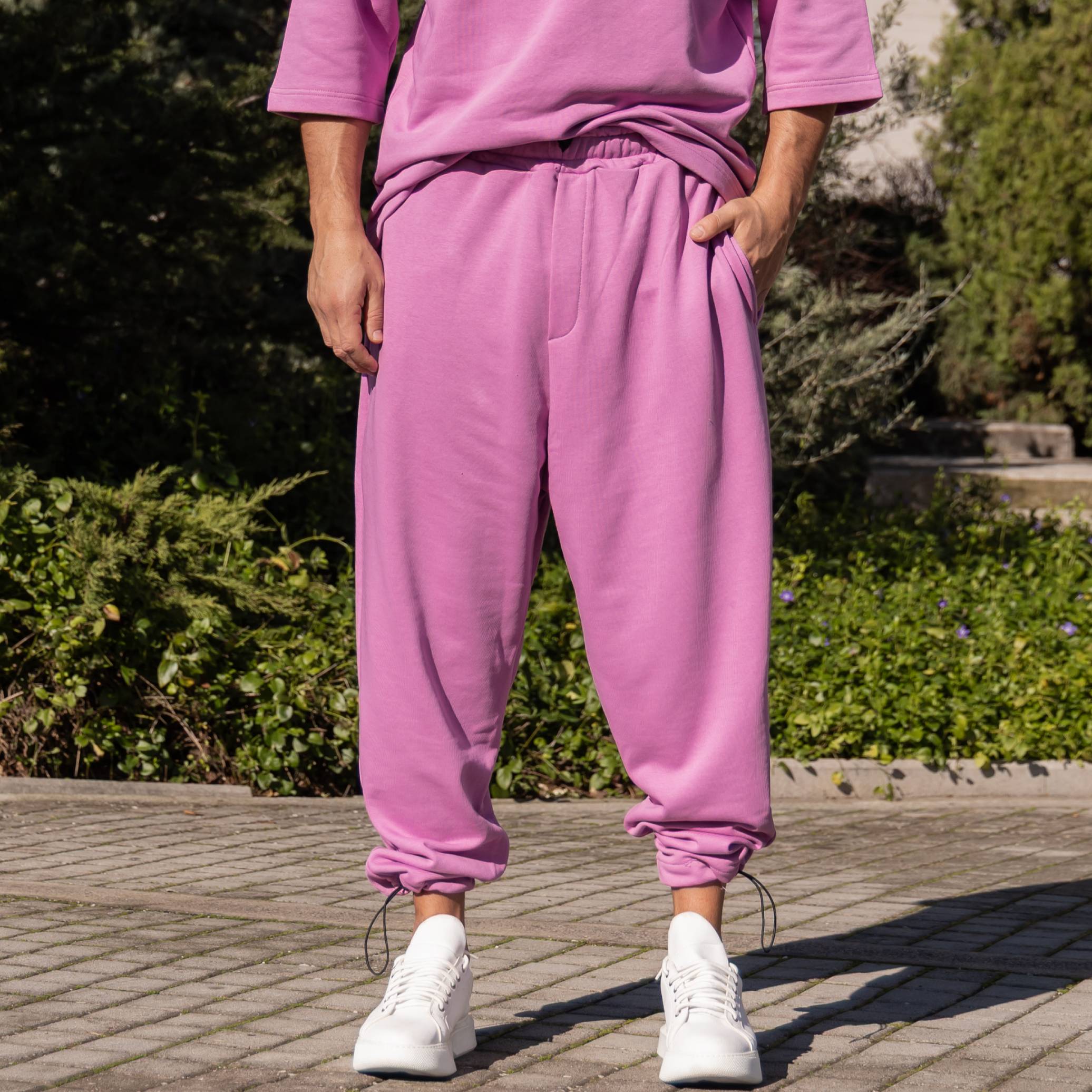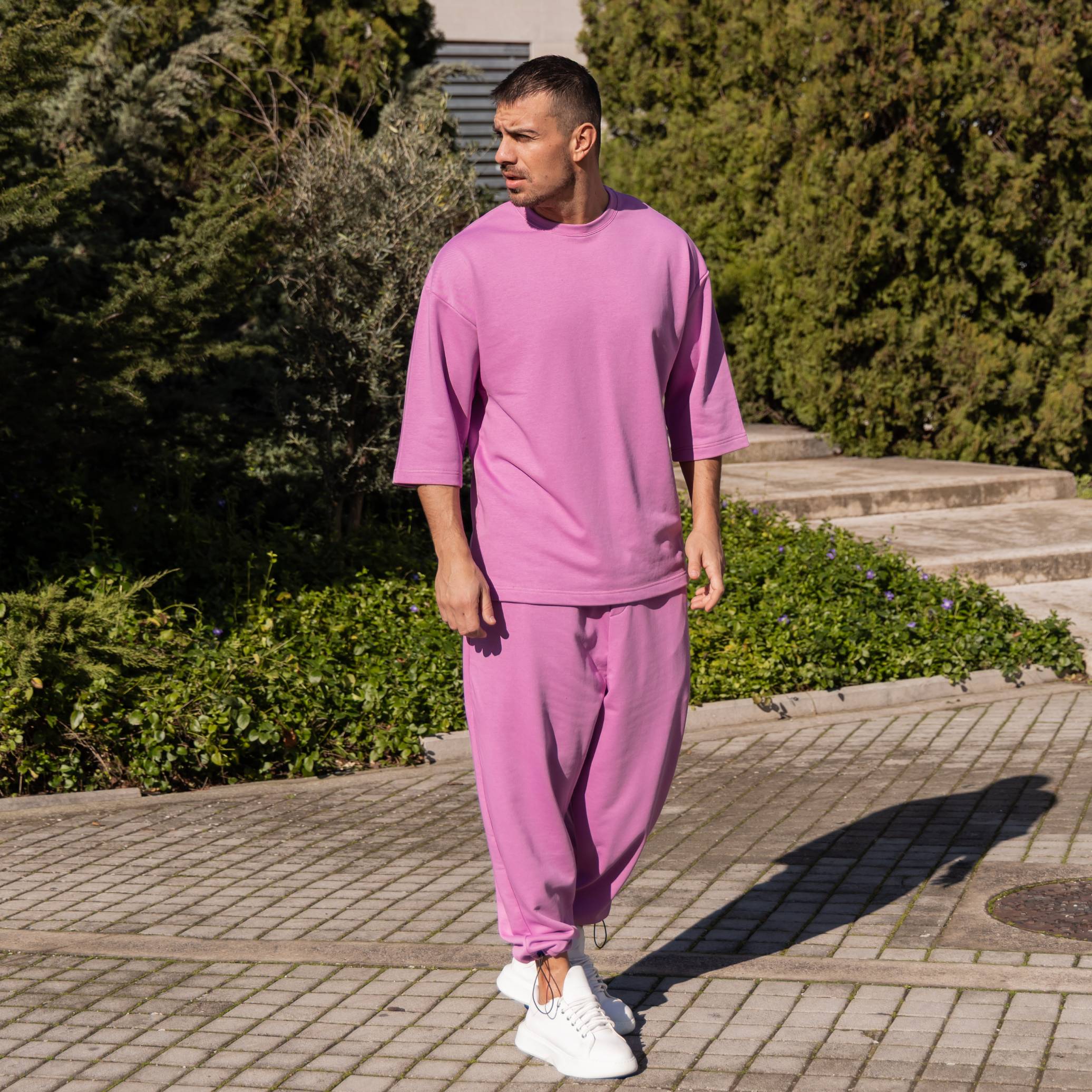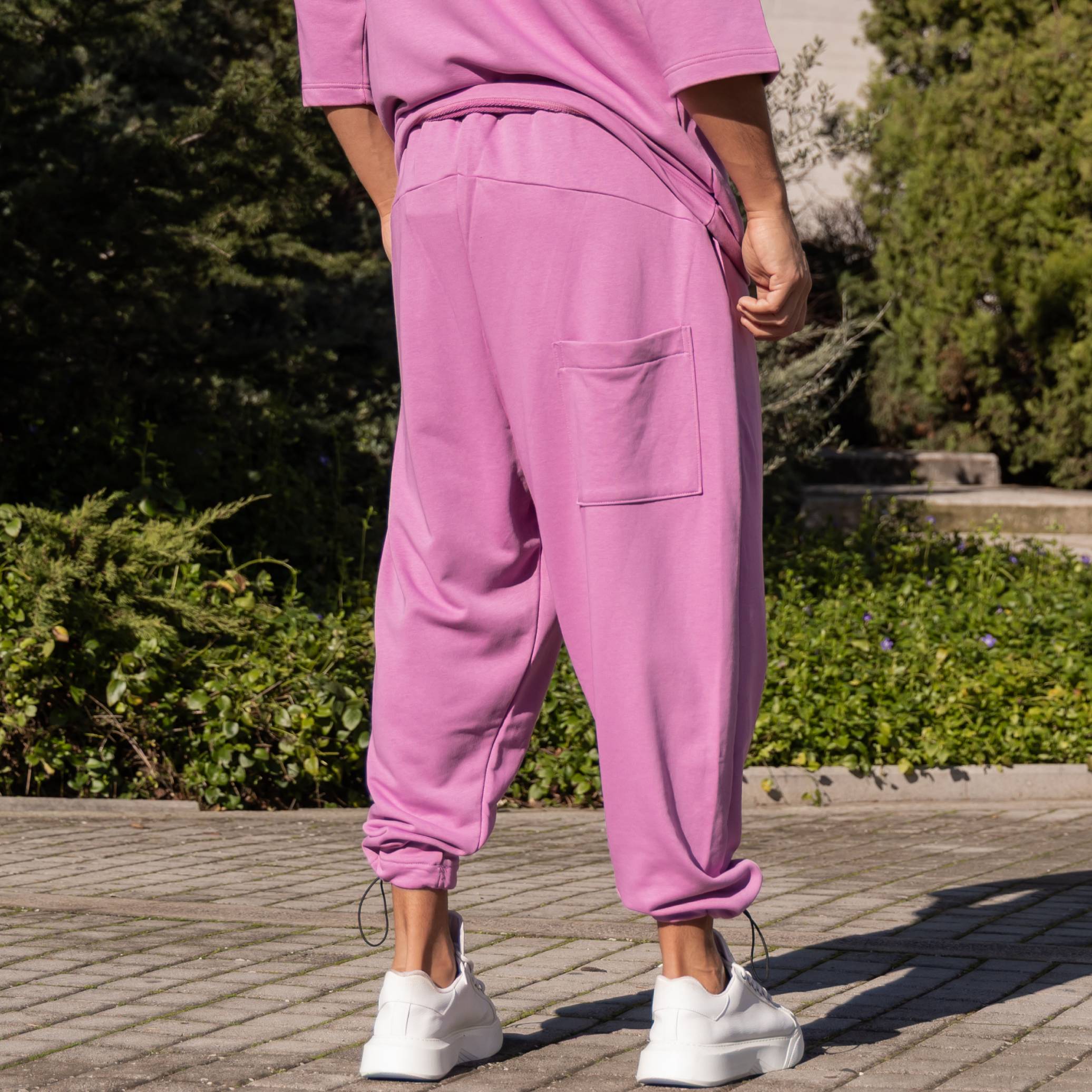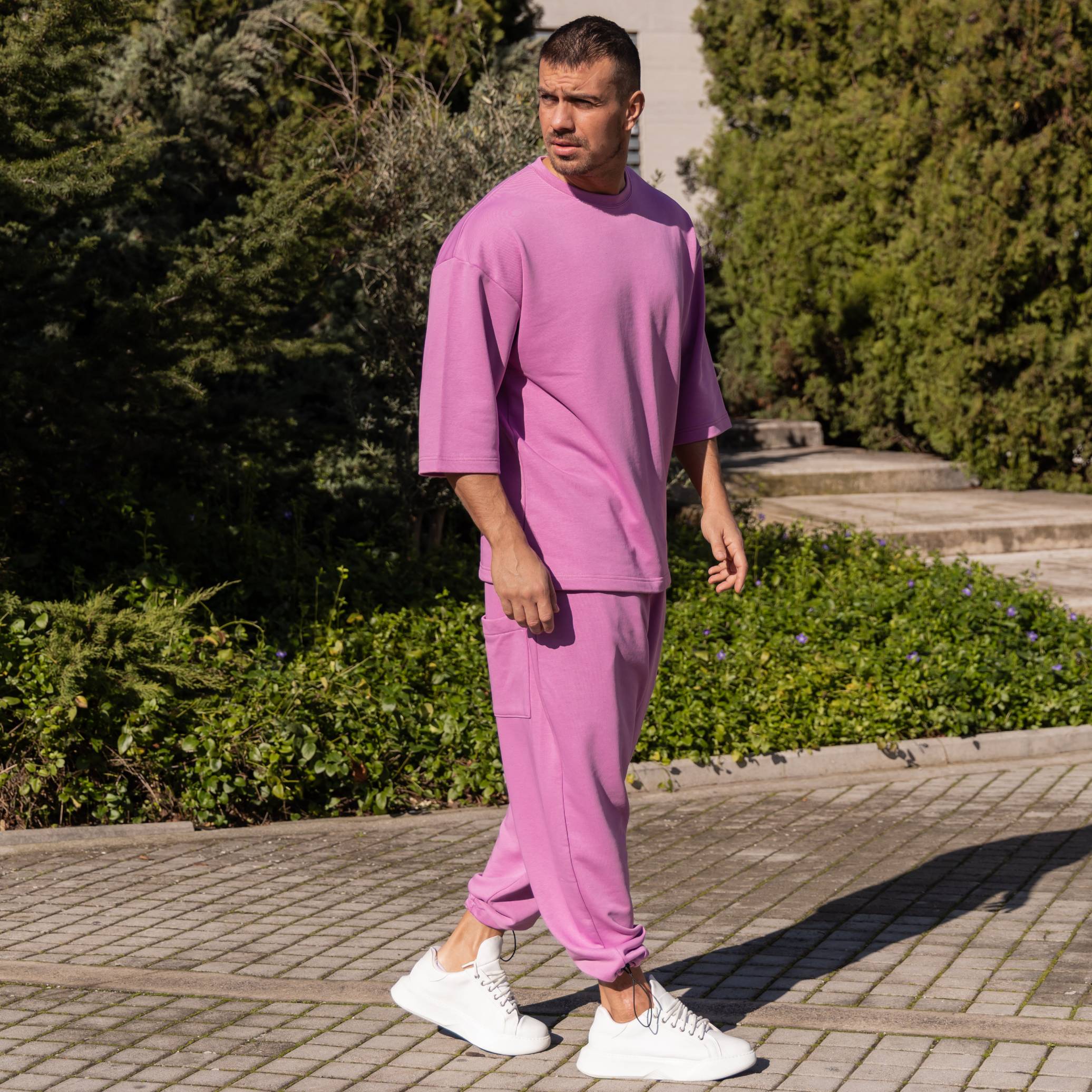 Σετ T-shirt & japaneese baggy φόρμα λιλά σε oversized γραμμή