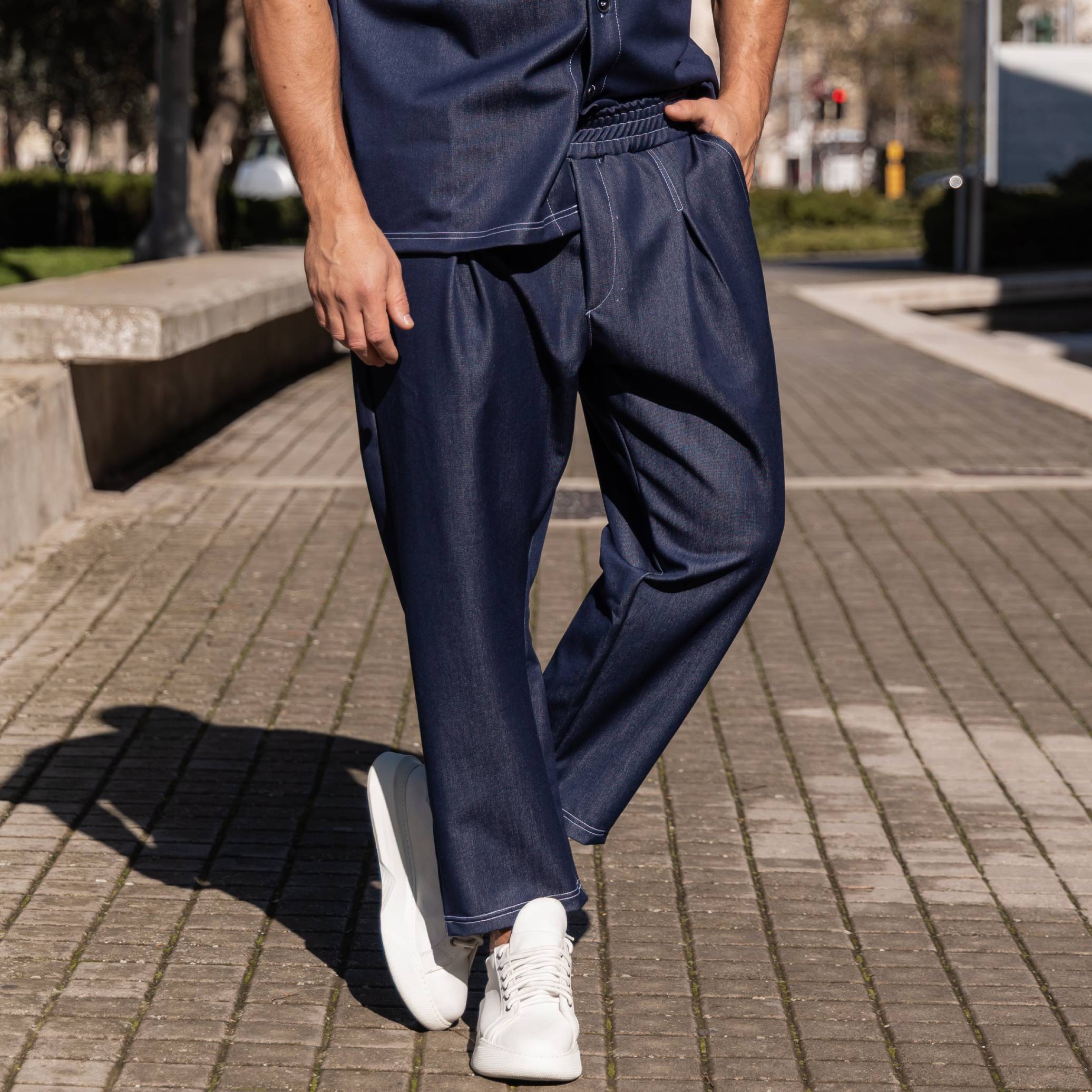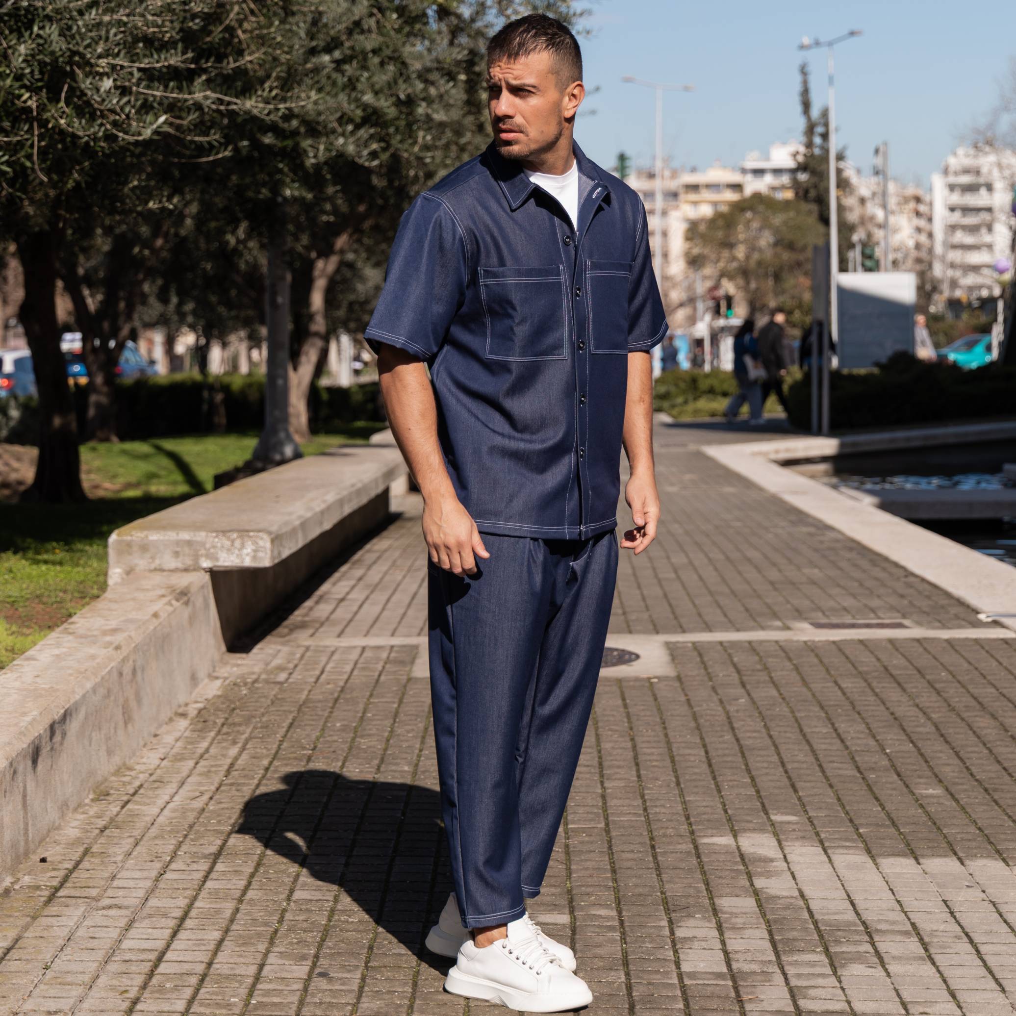 Σετ τζιν κοντομάνικο πουκάμισο & παντελόνι σε oversized γραμμή