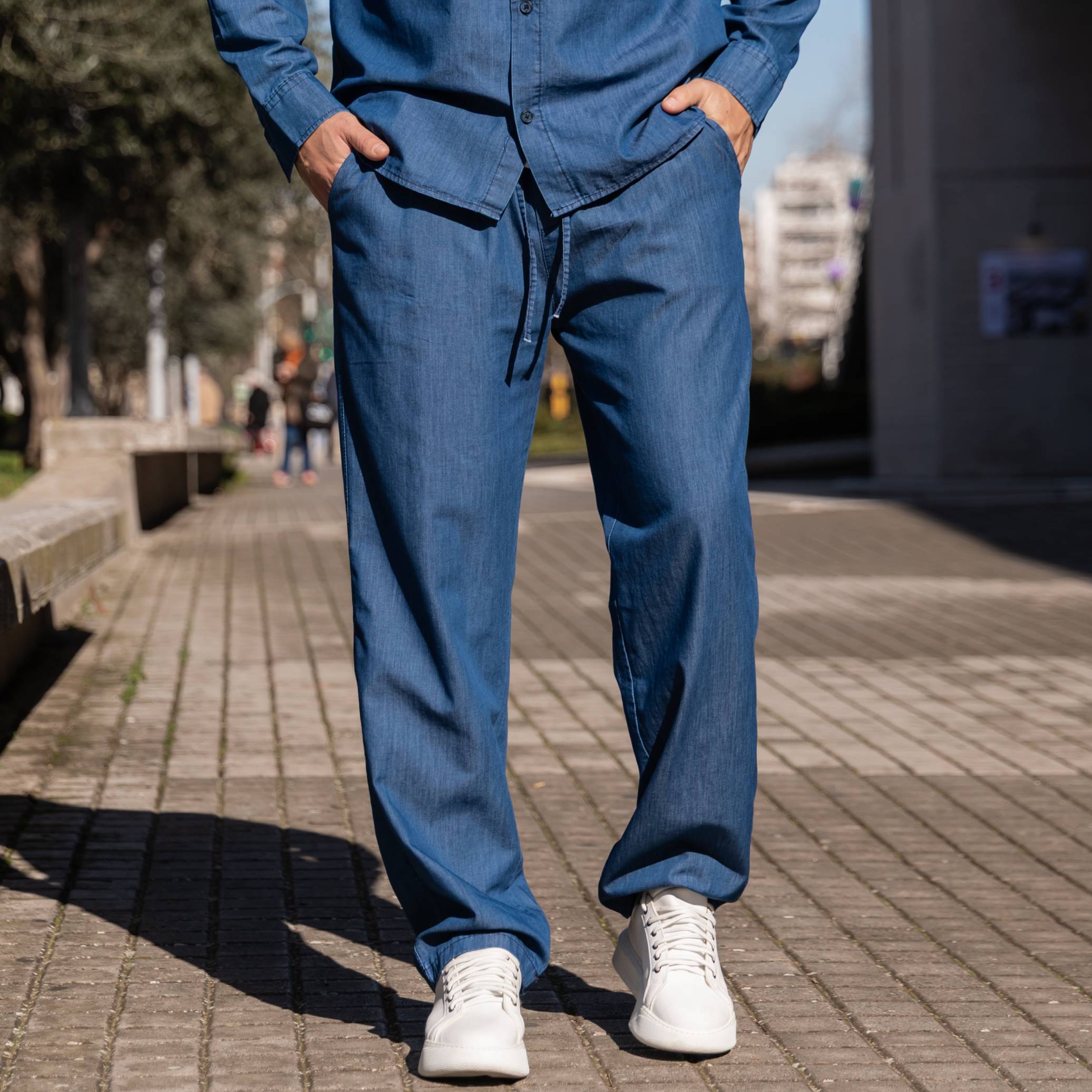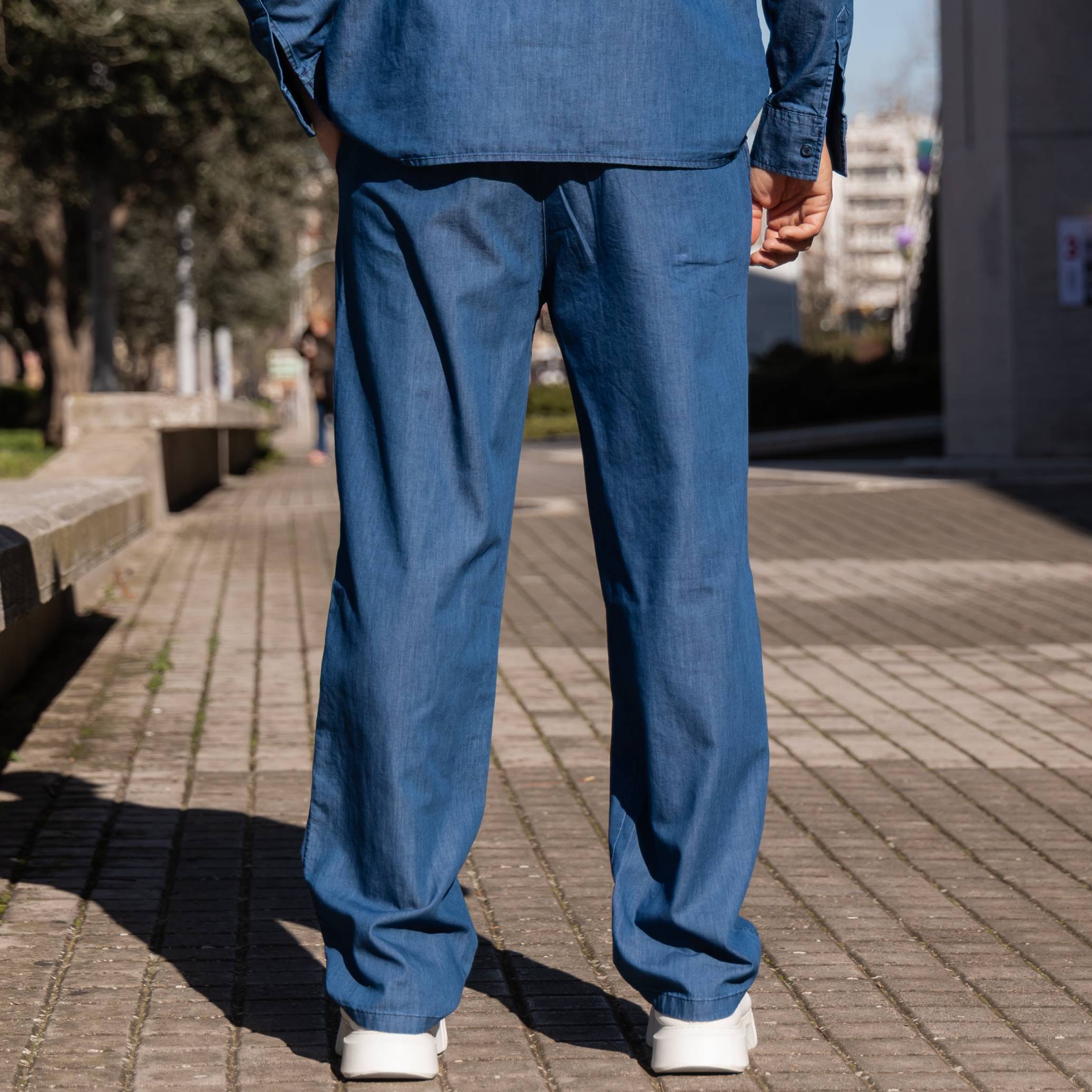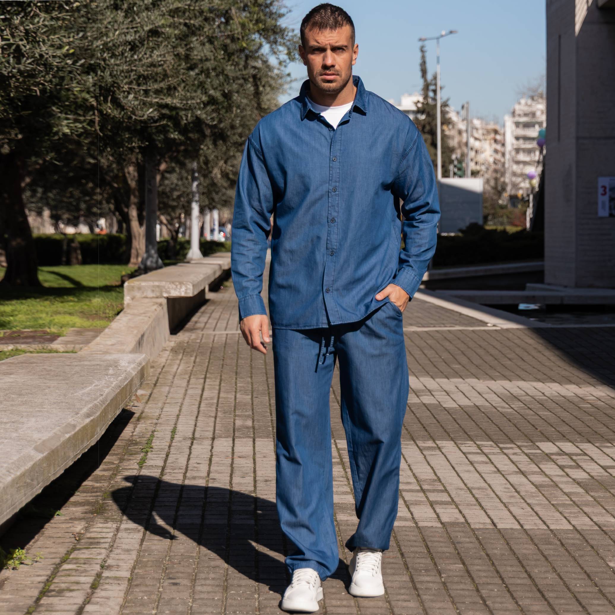 Σετ τζιν πουκάμισο & παντελόνι σε oversized γραμμή