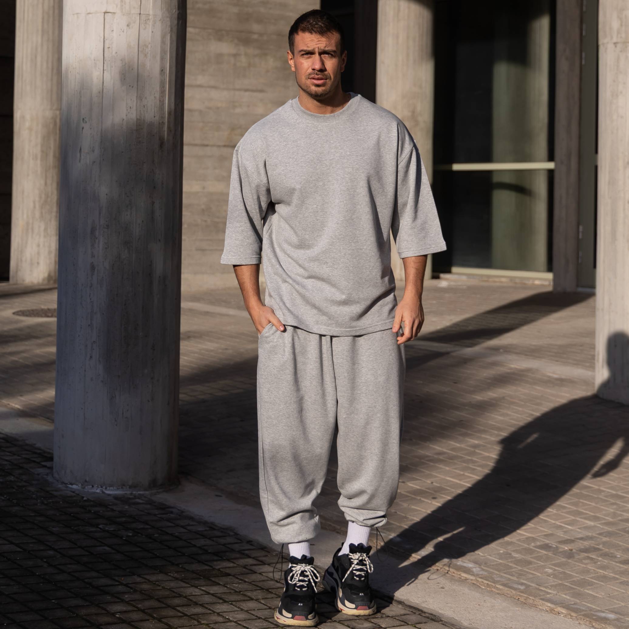 T-shirt μπλούζα 3/4 γκρι σε oversized γραμμή