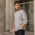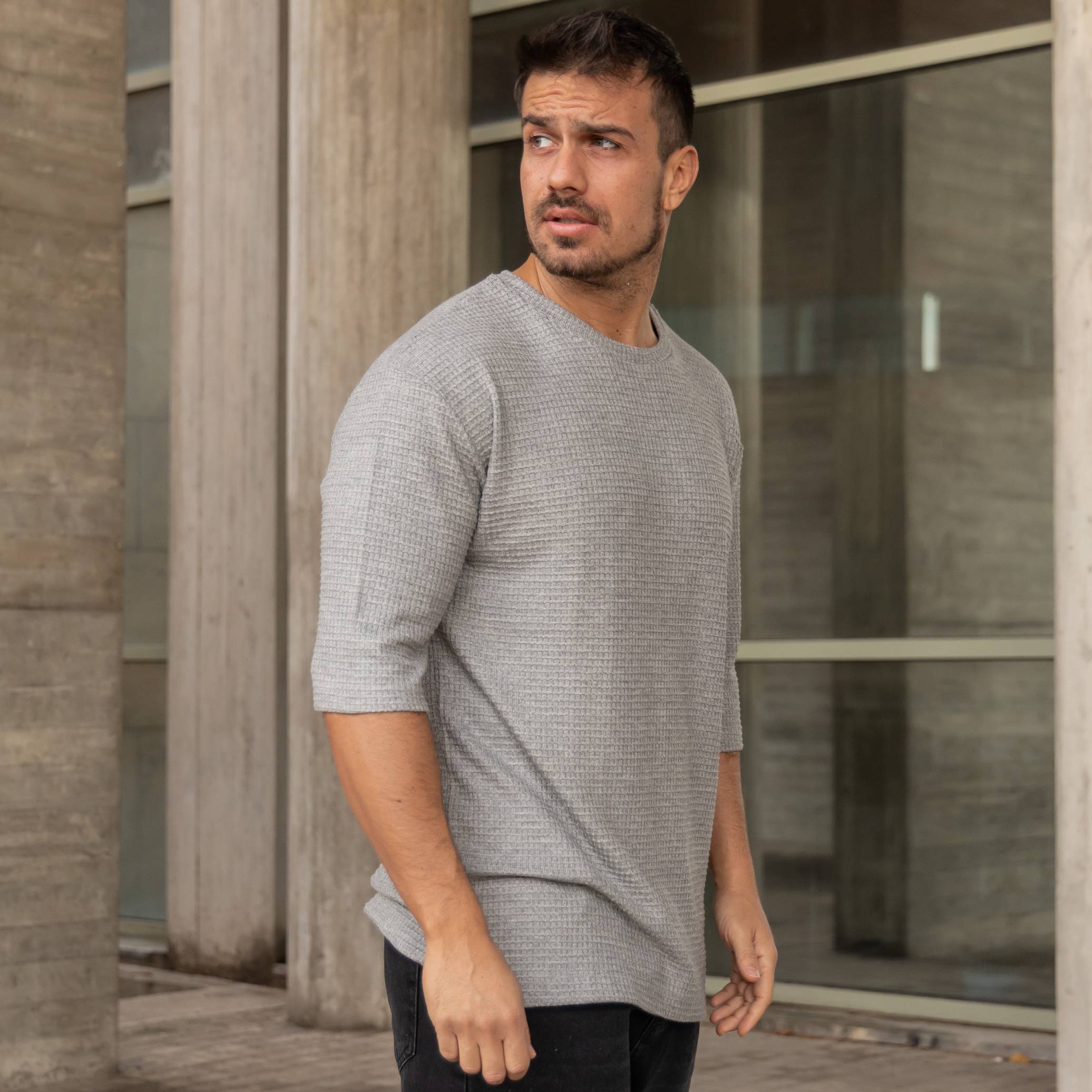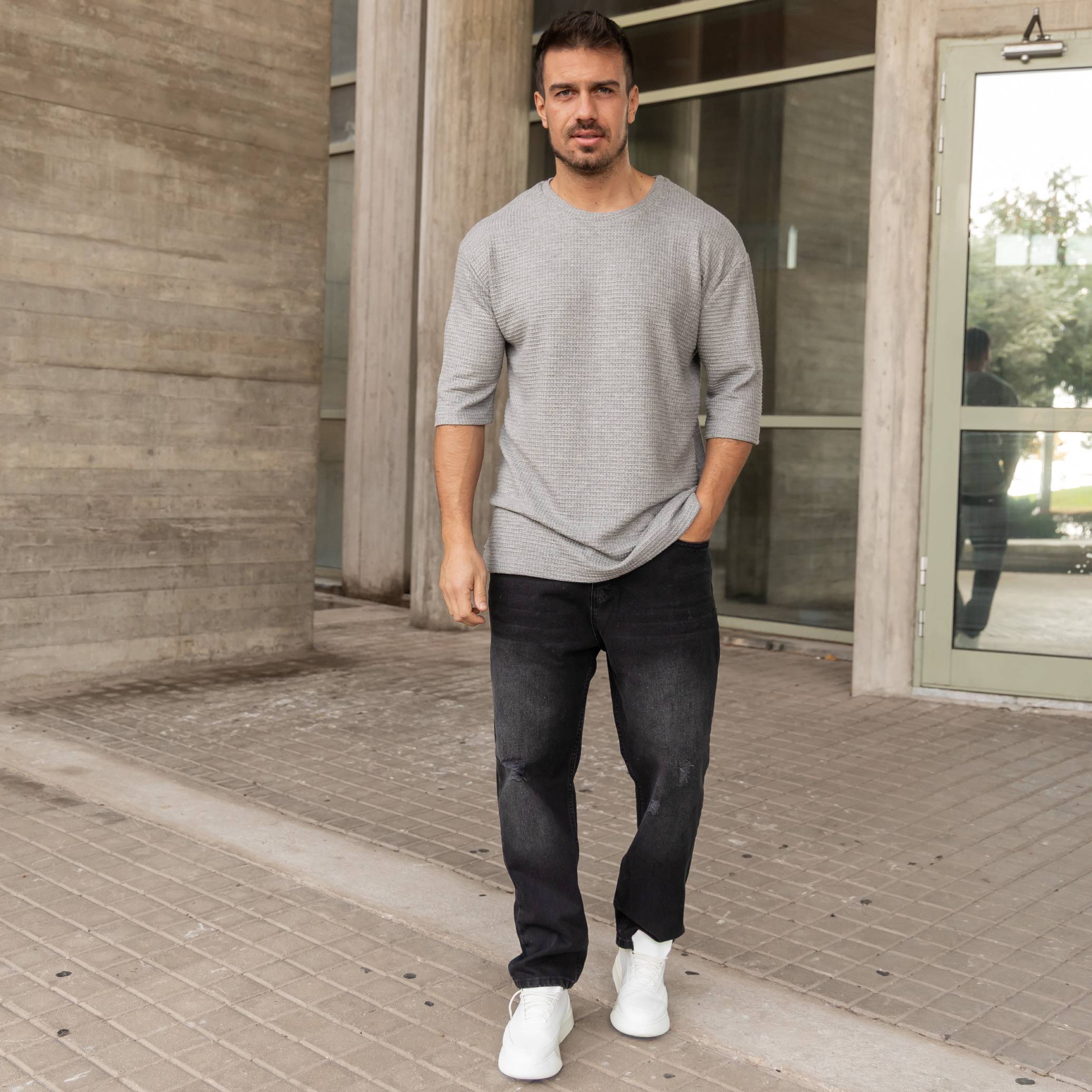 T-shirt μπλούζα 3/4 γκρι σε oversized γραμμή