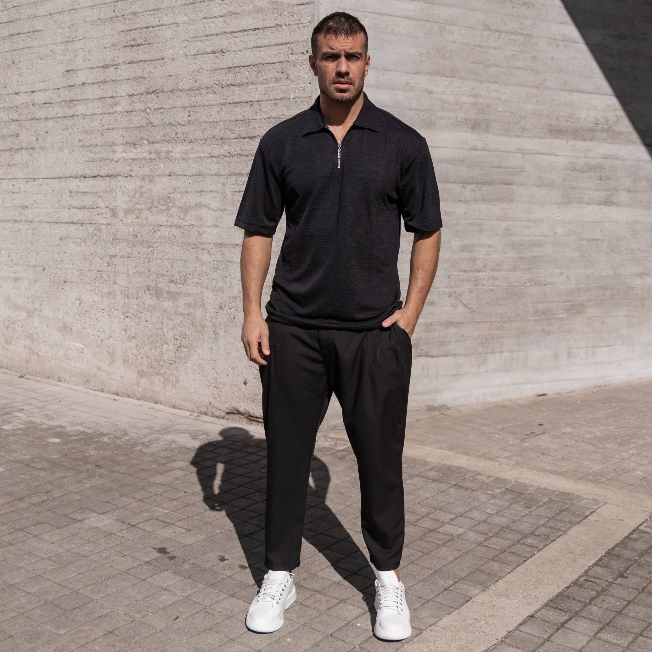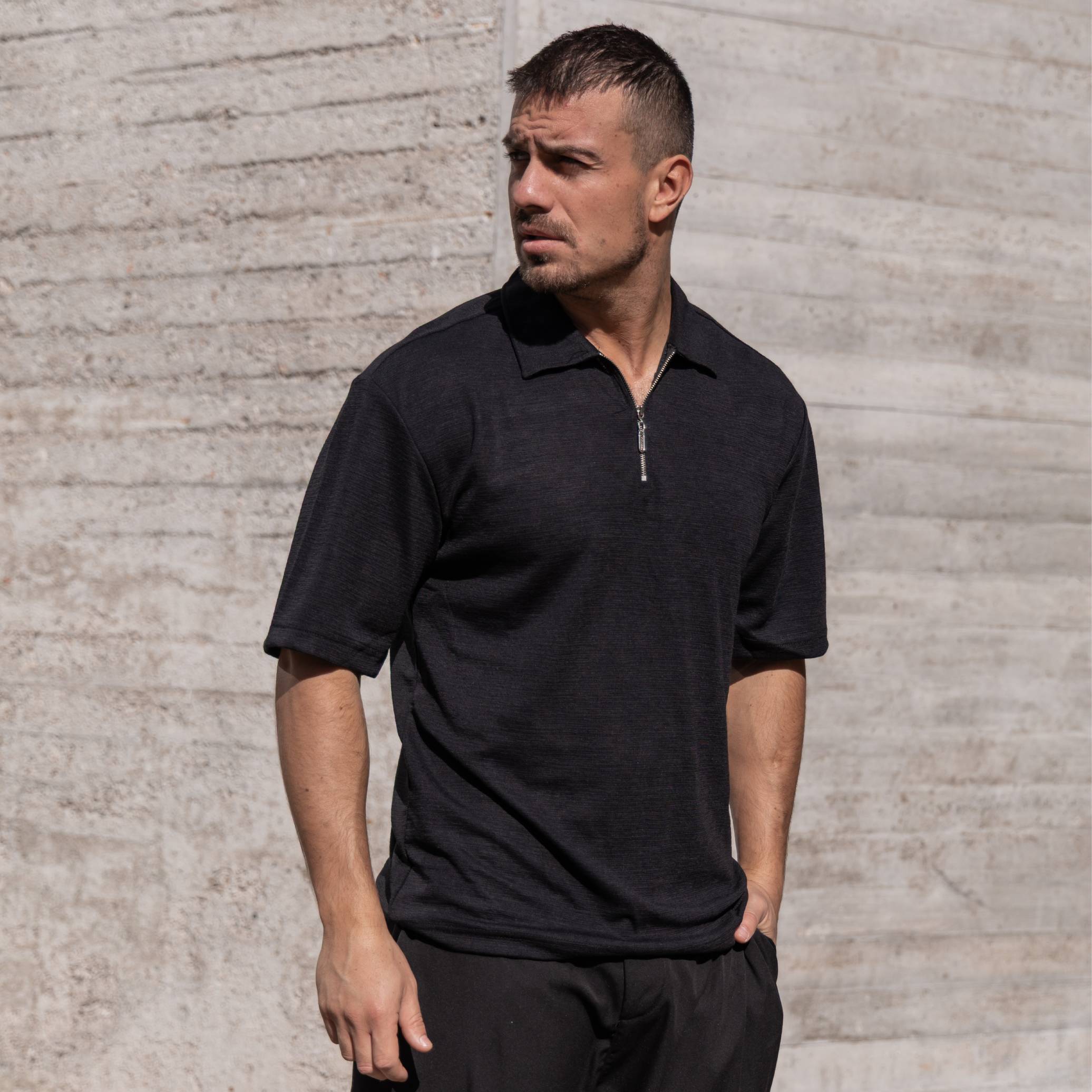 T-shirt μπλούζα μαύρο με φερμουάρ σε oversized γραμμή
