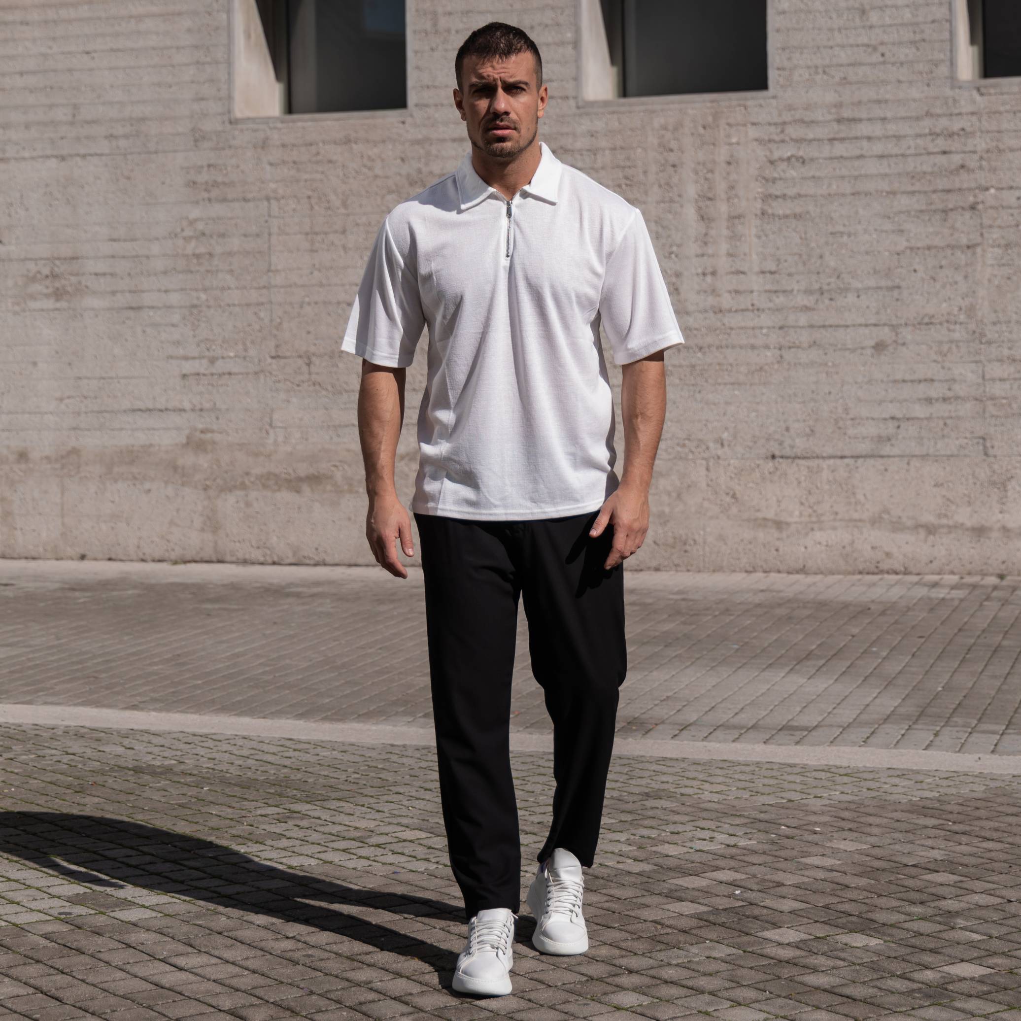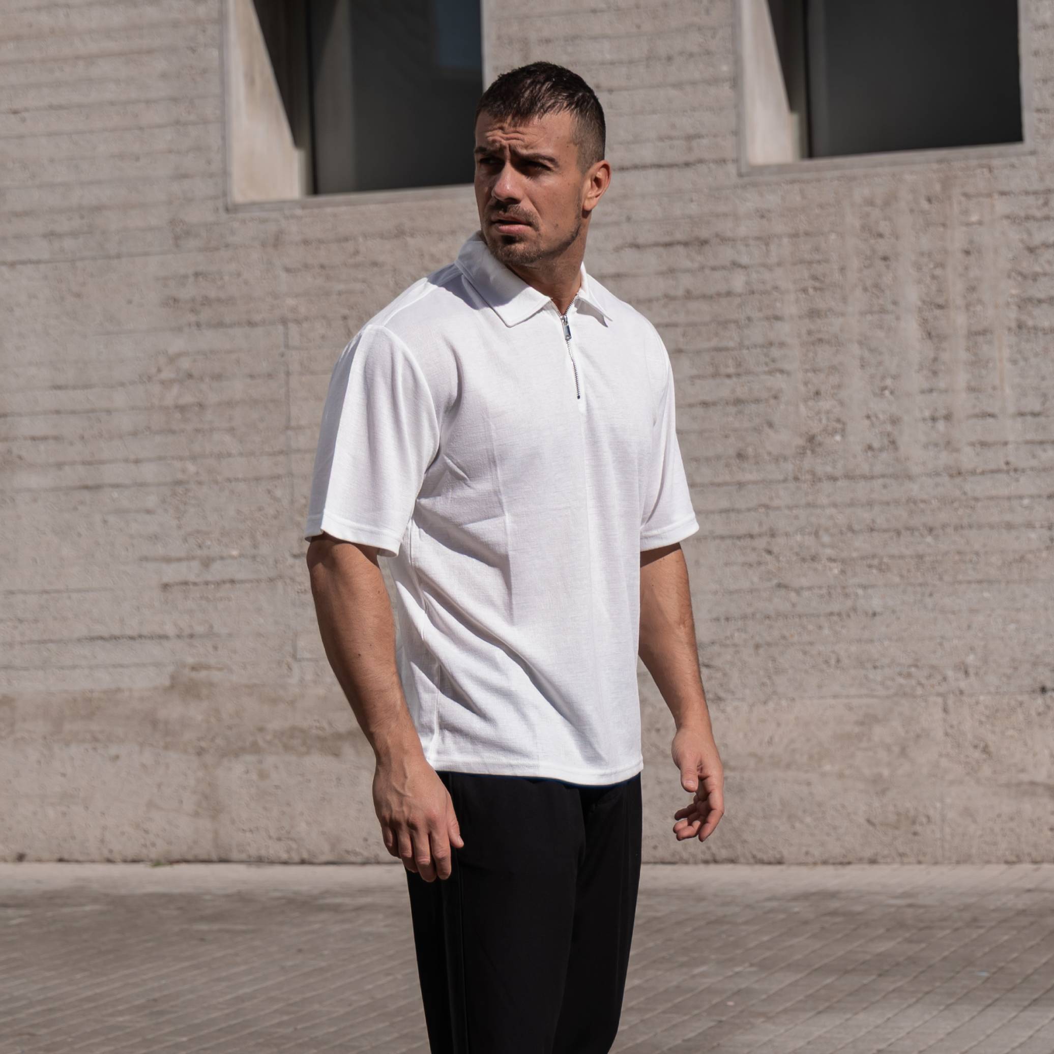 T-shirt μπλούζα λευκή με φερμουάρ σε oversized γραμμή