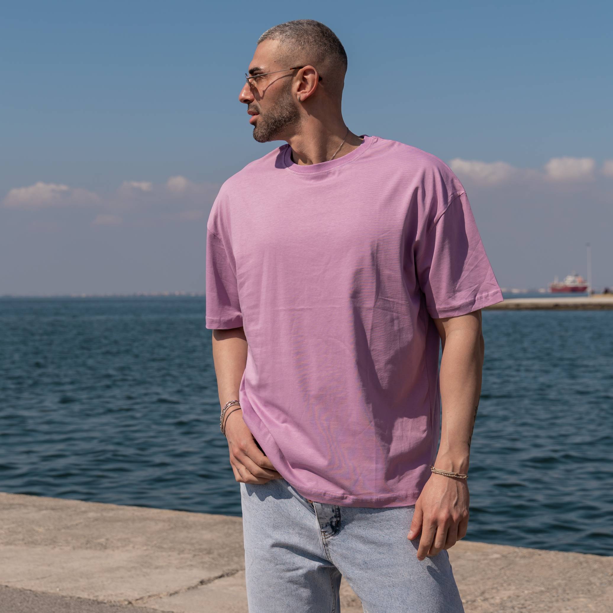 T-shirt μπλούζα λιλά σε oversized γραμμή