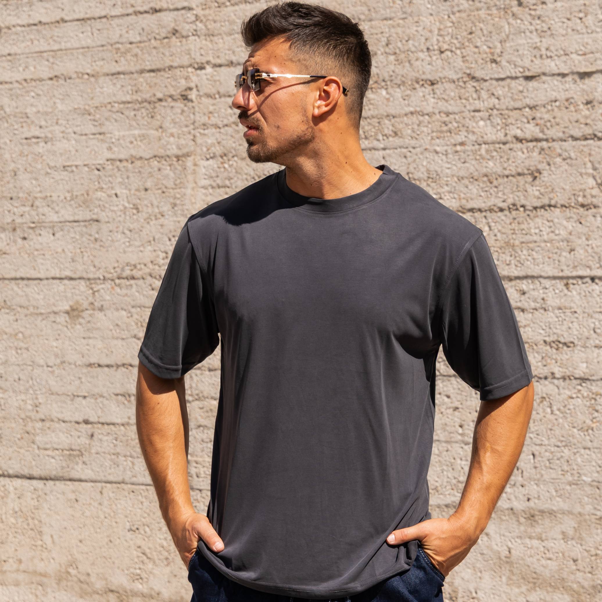 T-Shirt γκρι σε oversized γραμμή