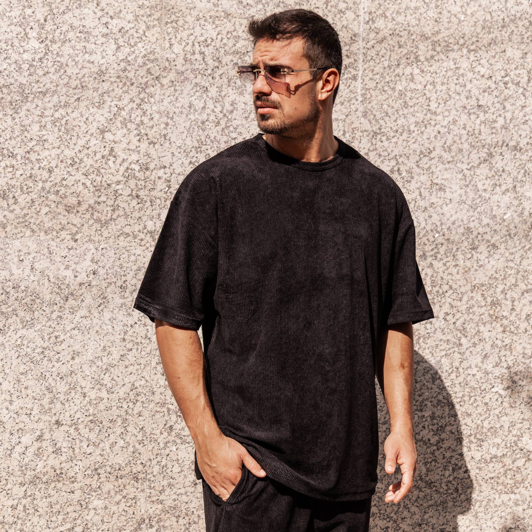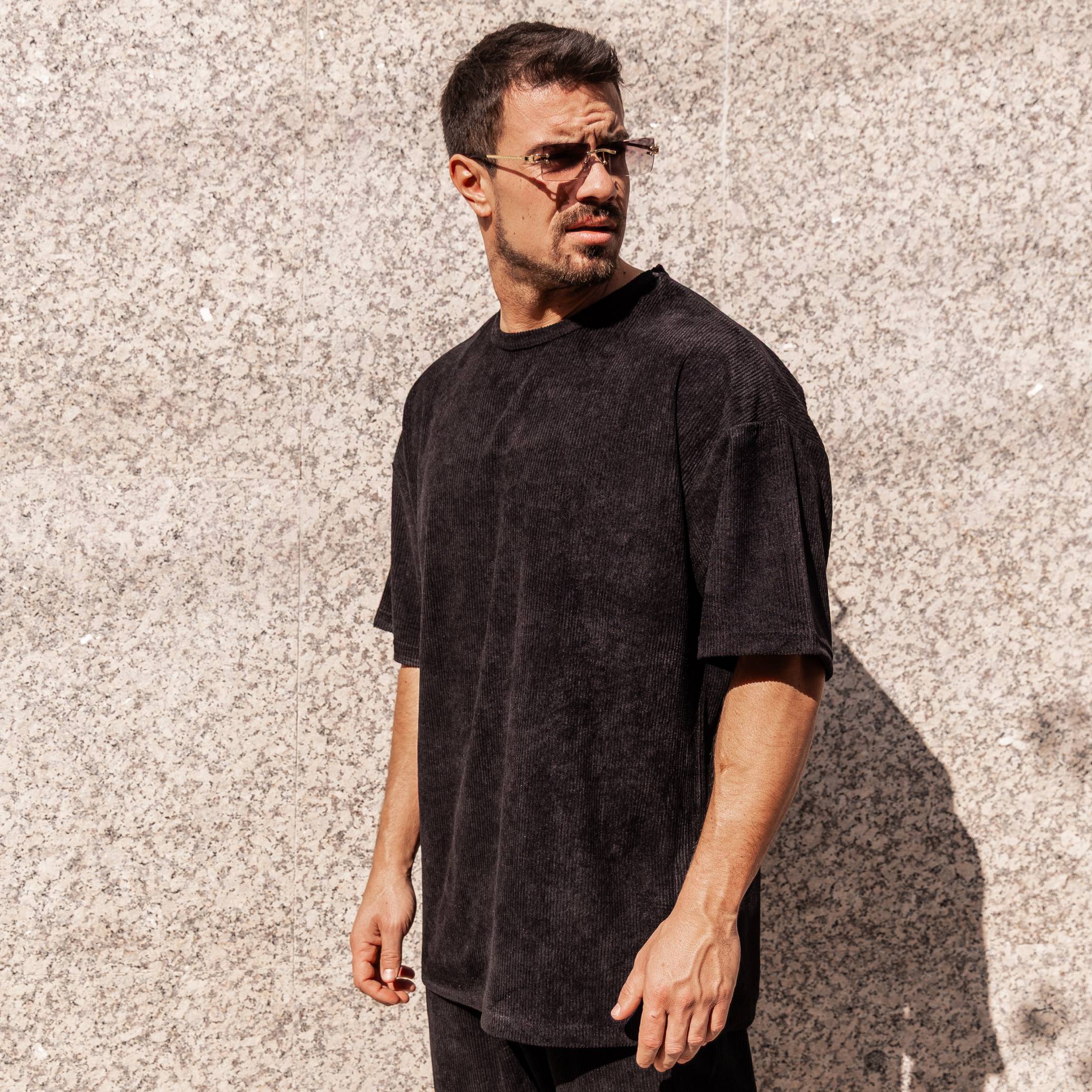 Τ-shirt μαύρη κοτλέ σε oversized γραμμή