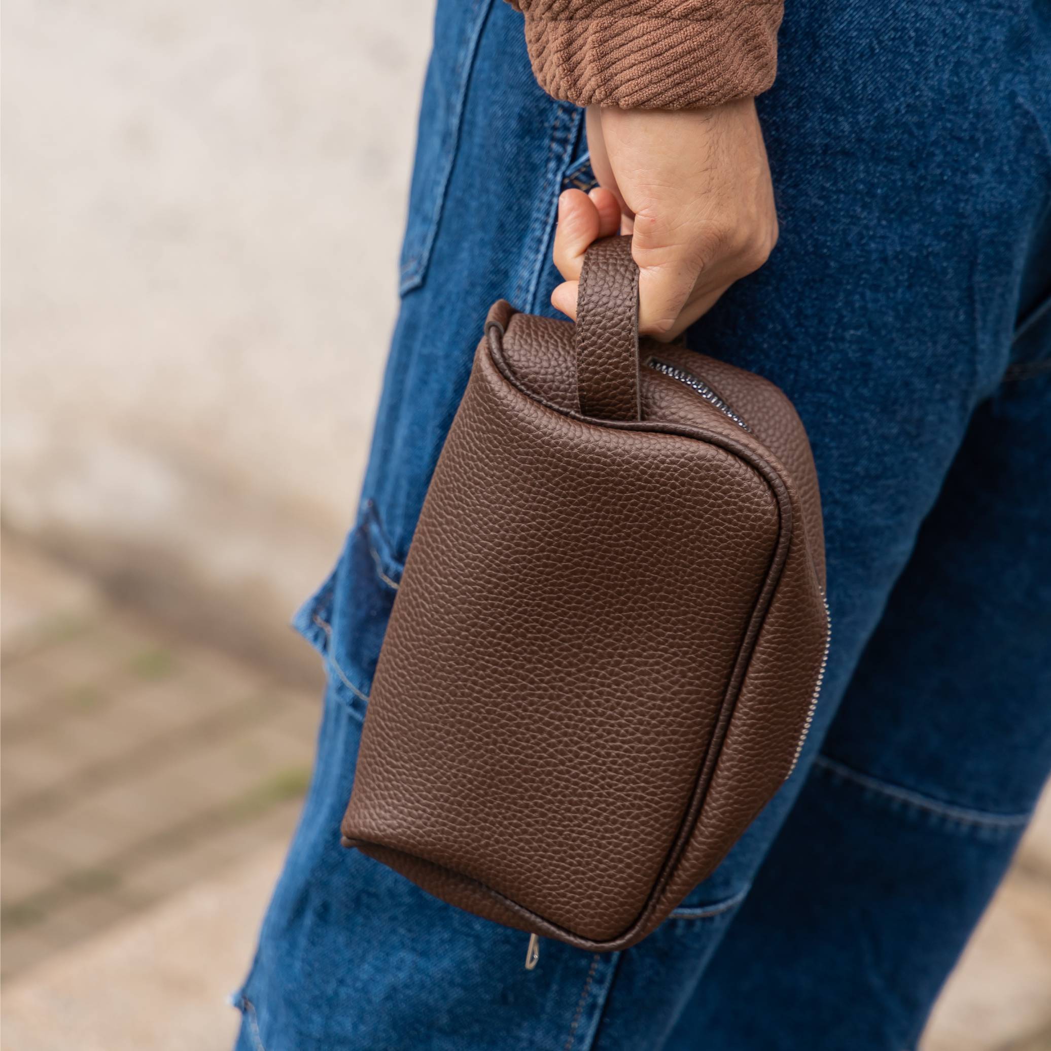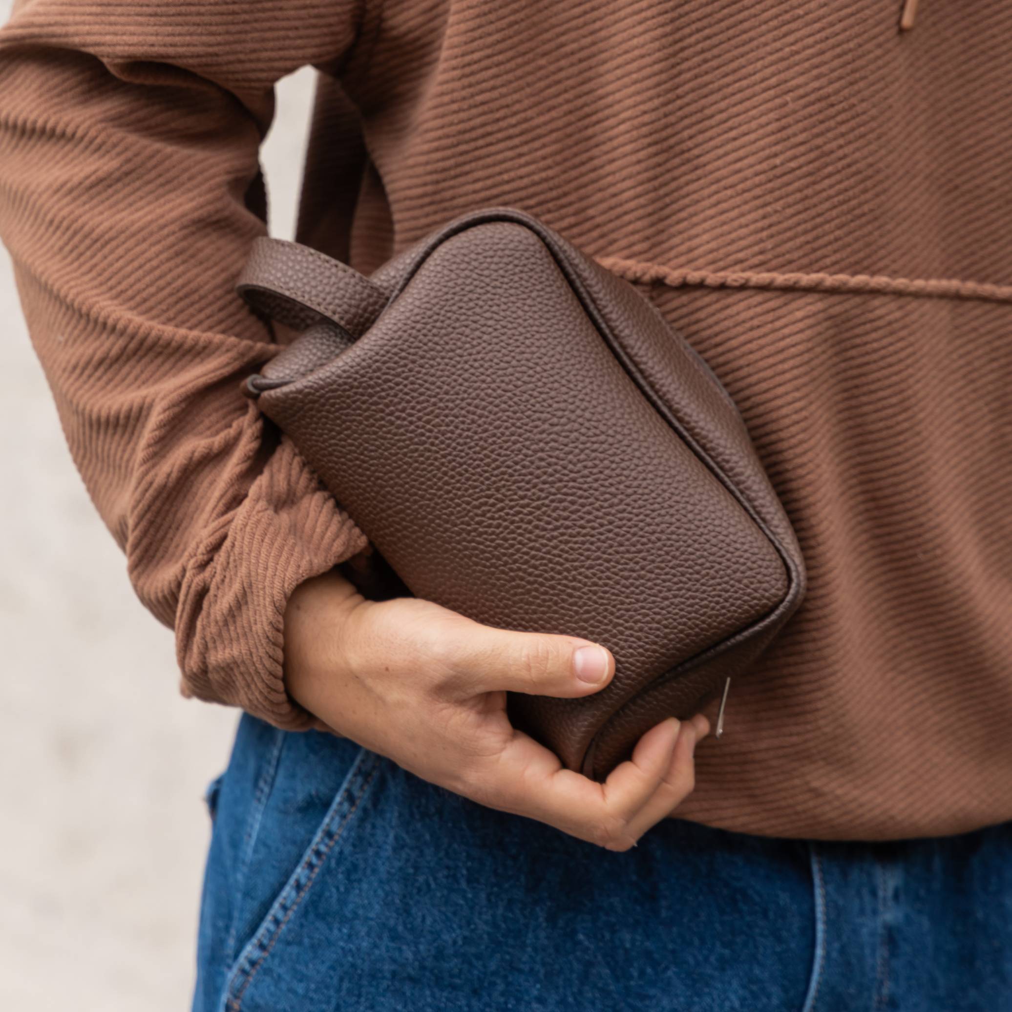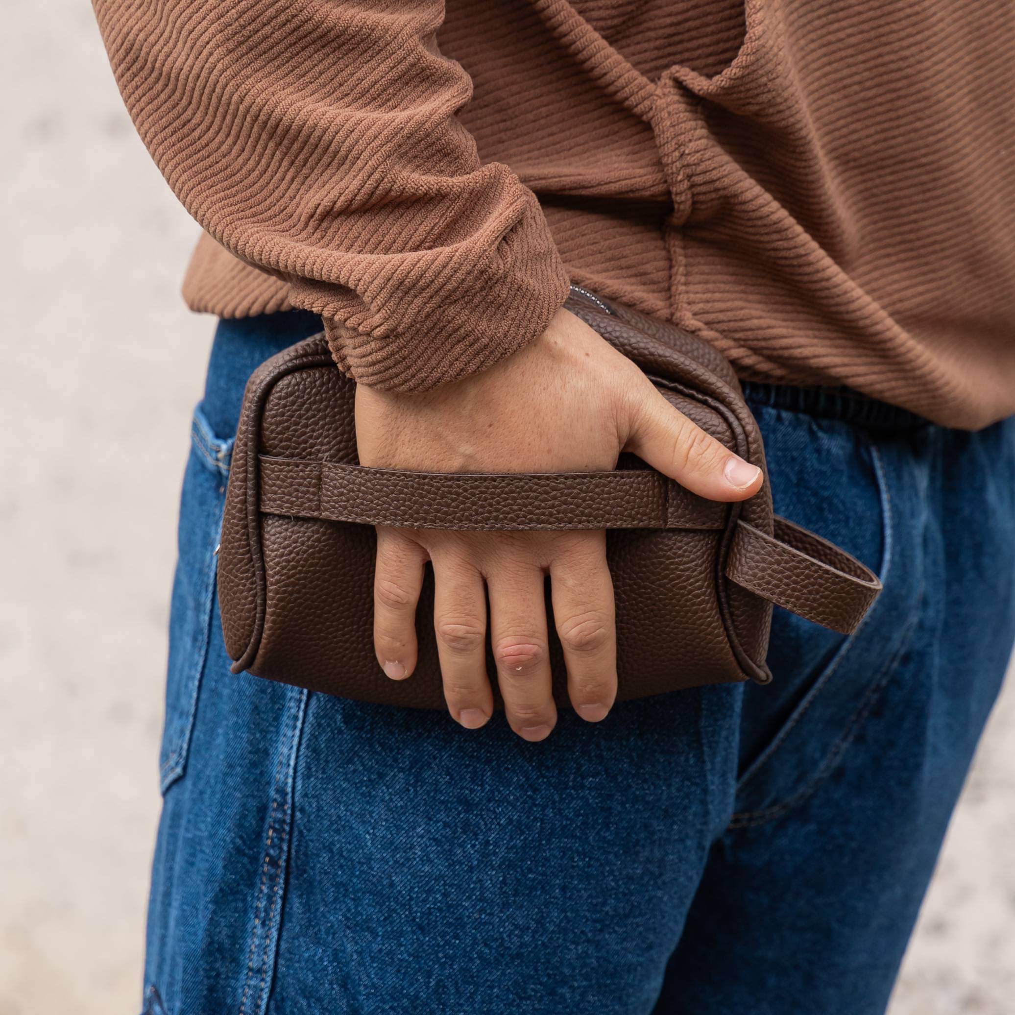 Τσαντάκι νεσεσέρ καφέ δερματίνη