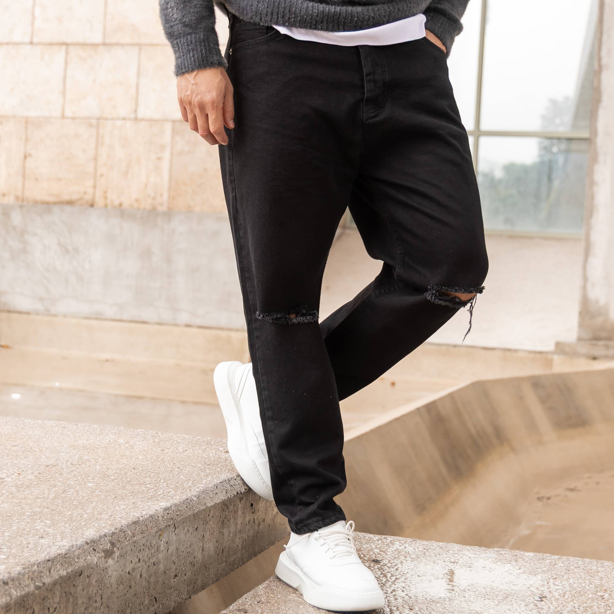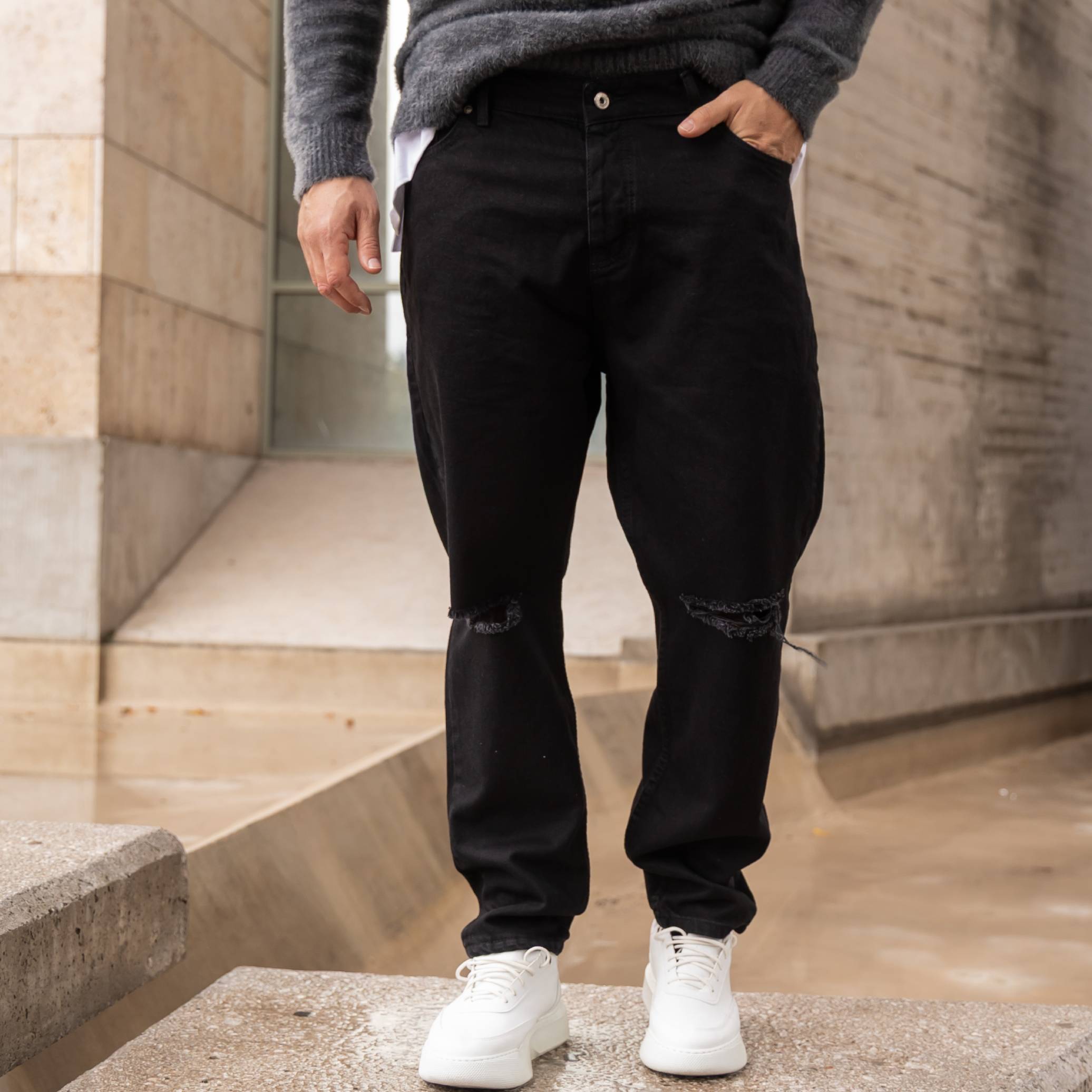 Τζιν μαύρο με σκισίματα σε άνετη γραμμή