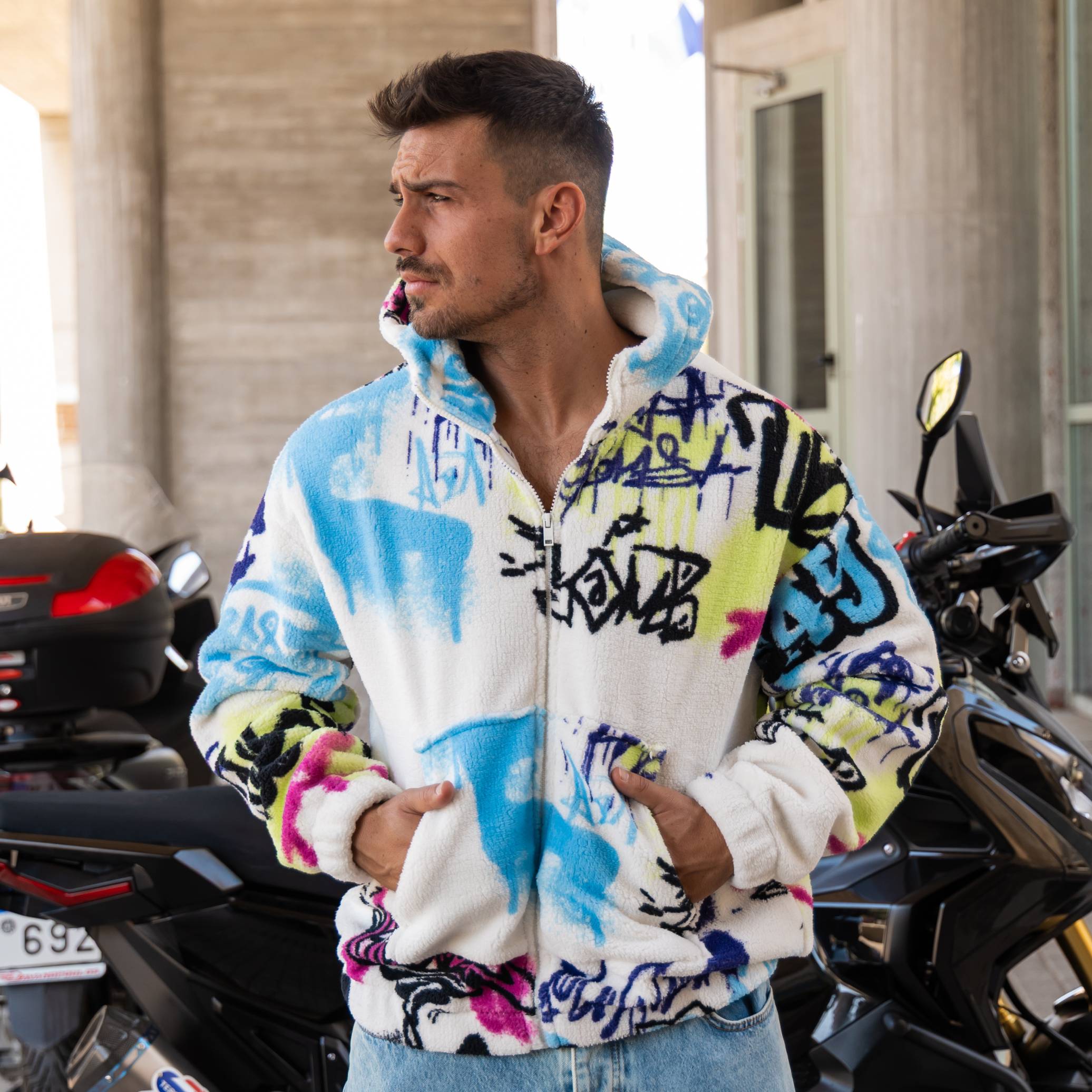Ζακέτα fleece σε oversized γραμμή