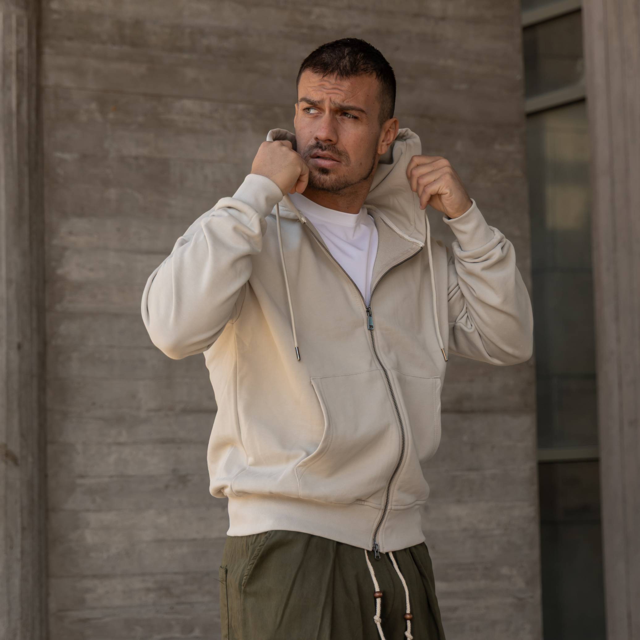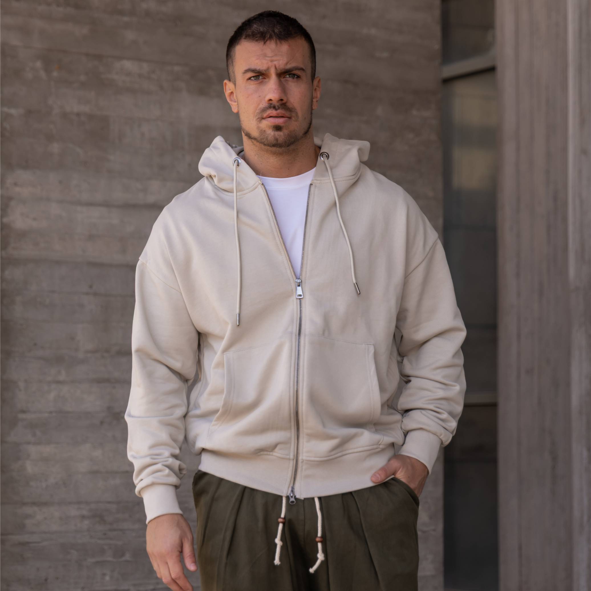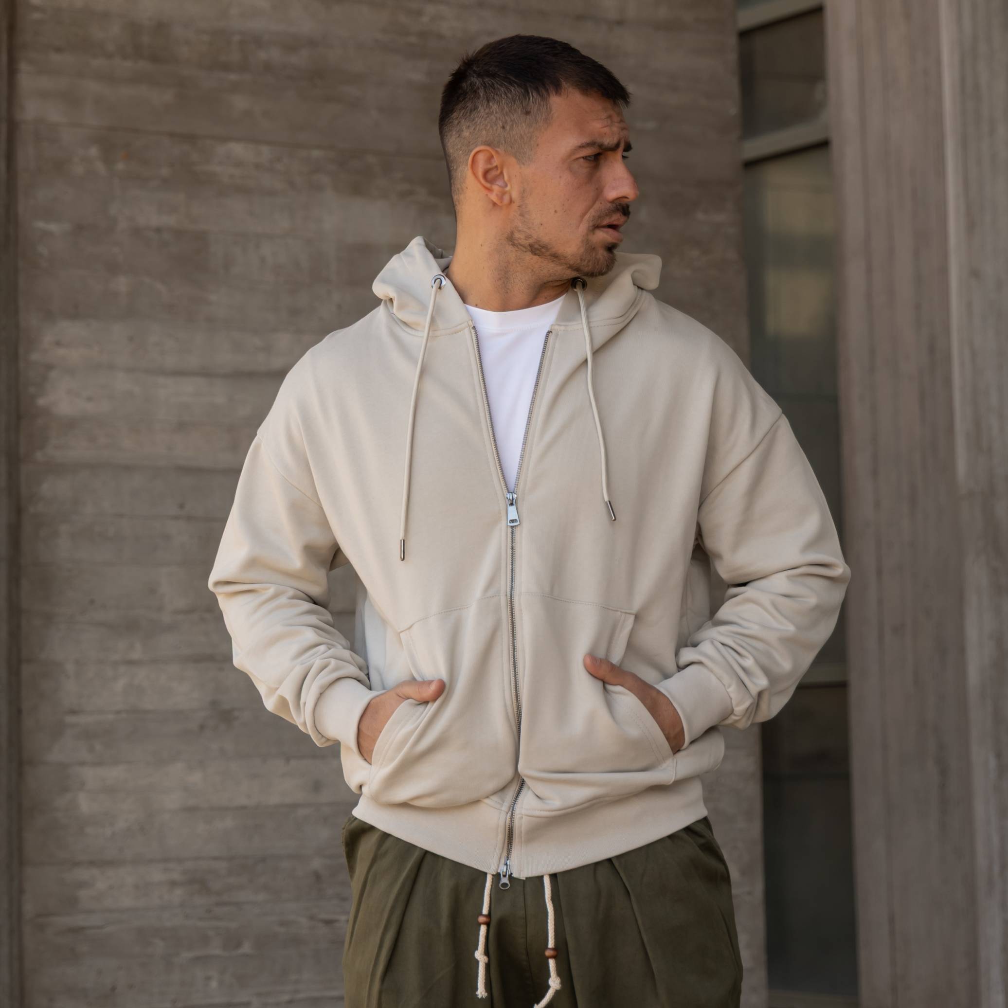 Ζακέτα φούτερ μπεζ σε oversized γραμμή