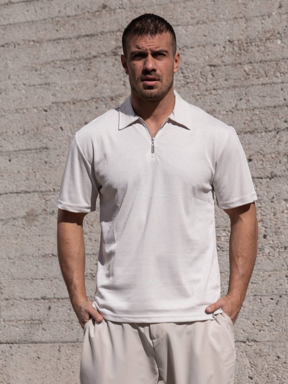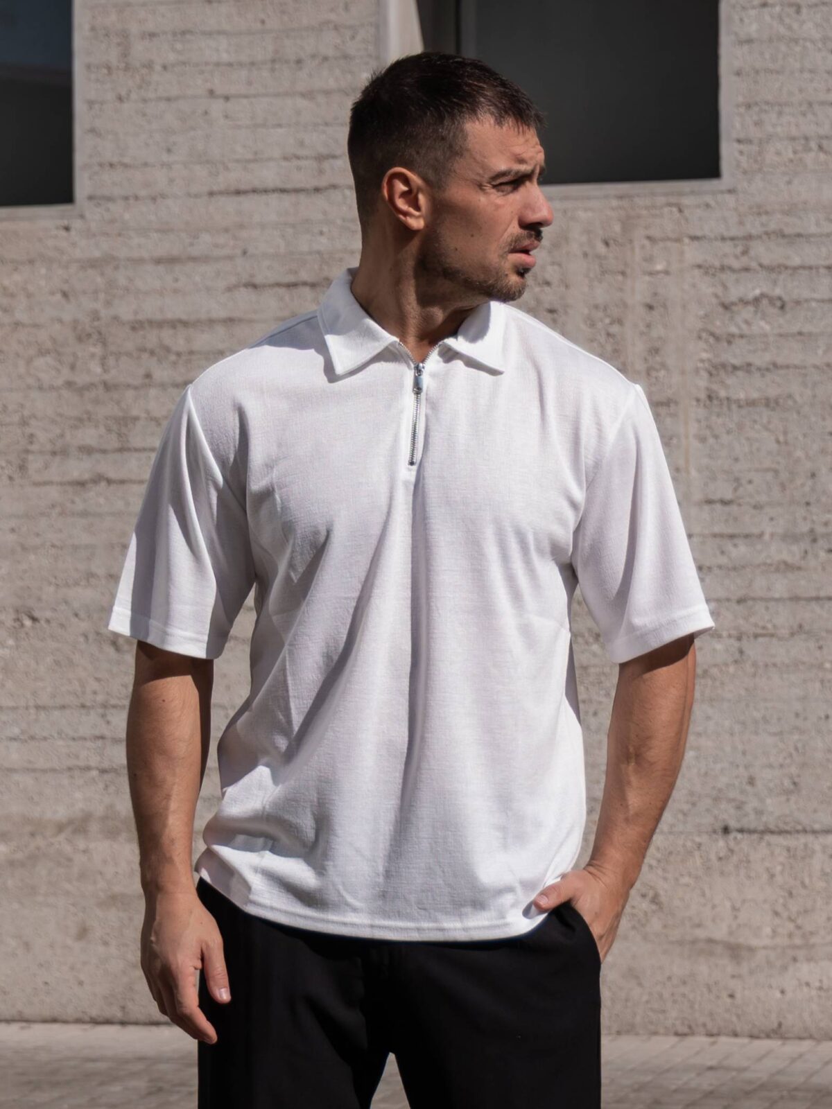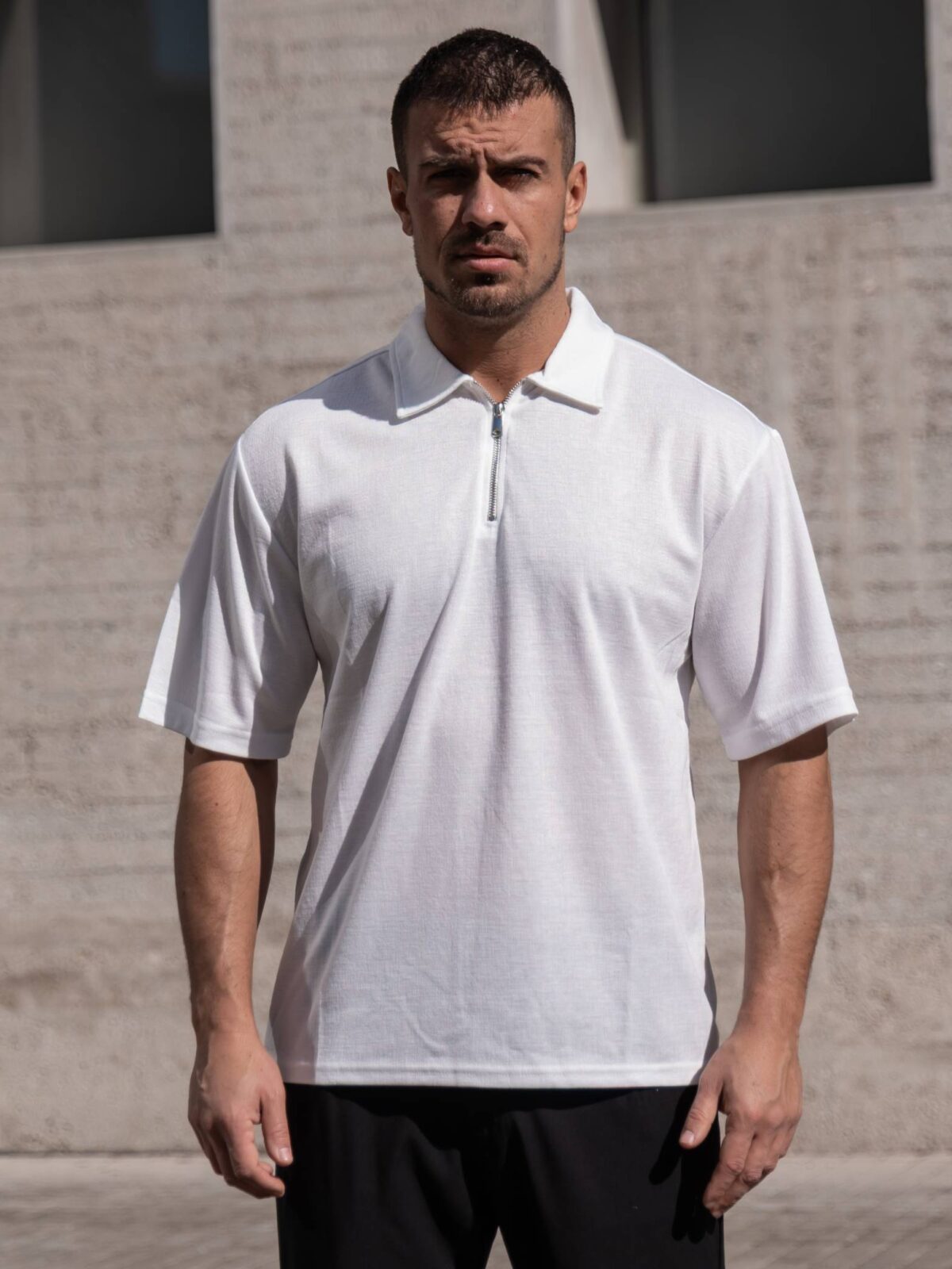 T-shirt μπλούζα λευκή με φερμουάρ σε oversized γραμμή