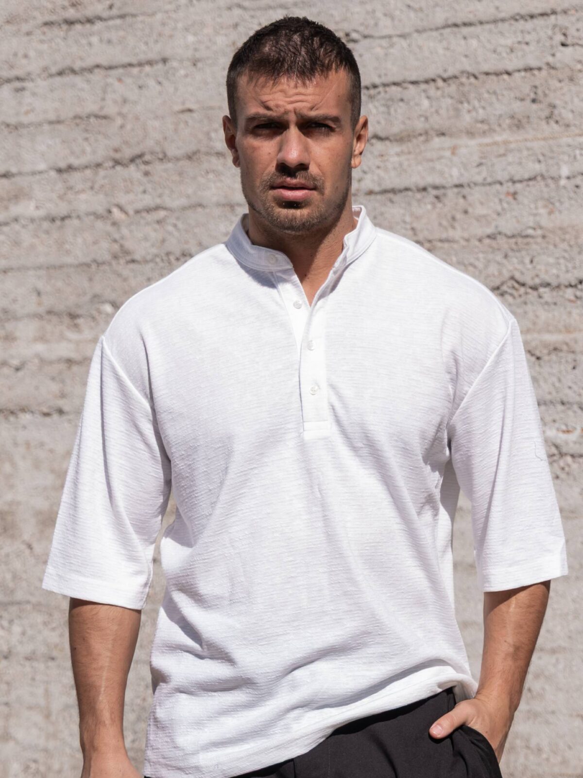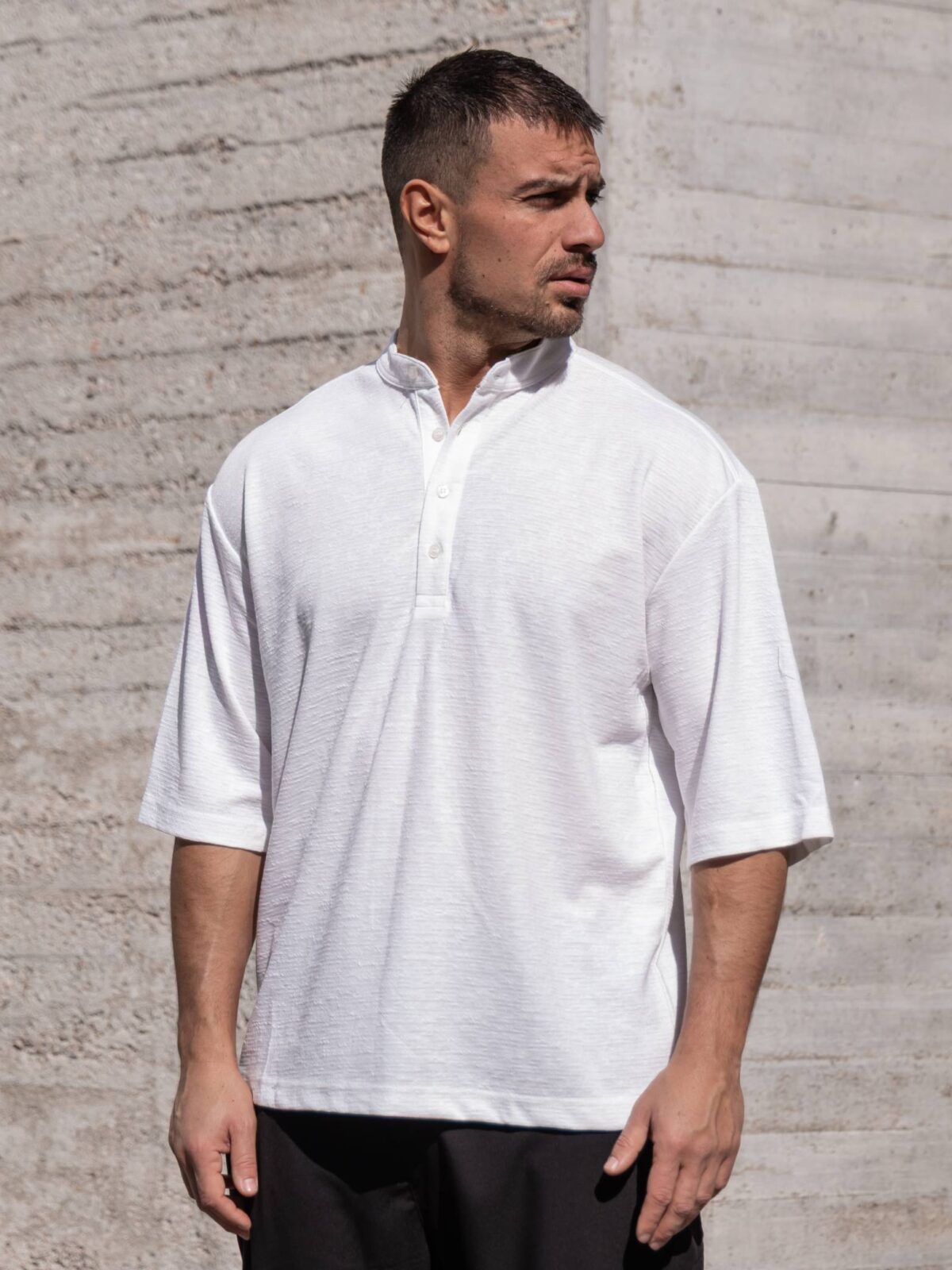 T-shirt μπλούζα 3/4 λευκό με κουμπιά σε oversized γραμμή