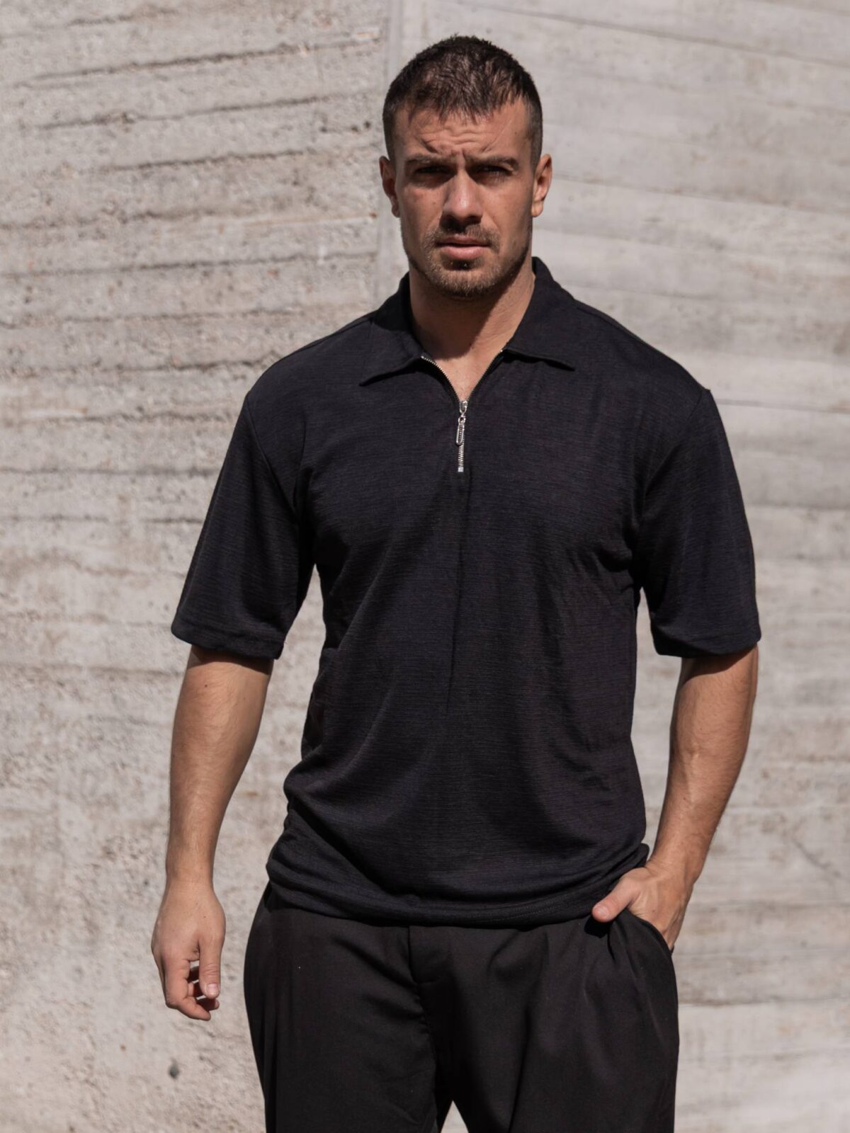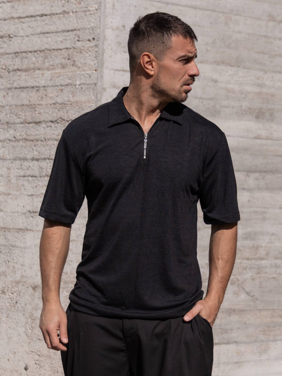 T-shirt μπλούζα μαύρο με φερμουάρ σε oversized γραμμή