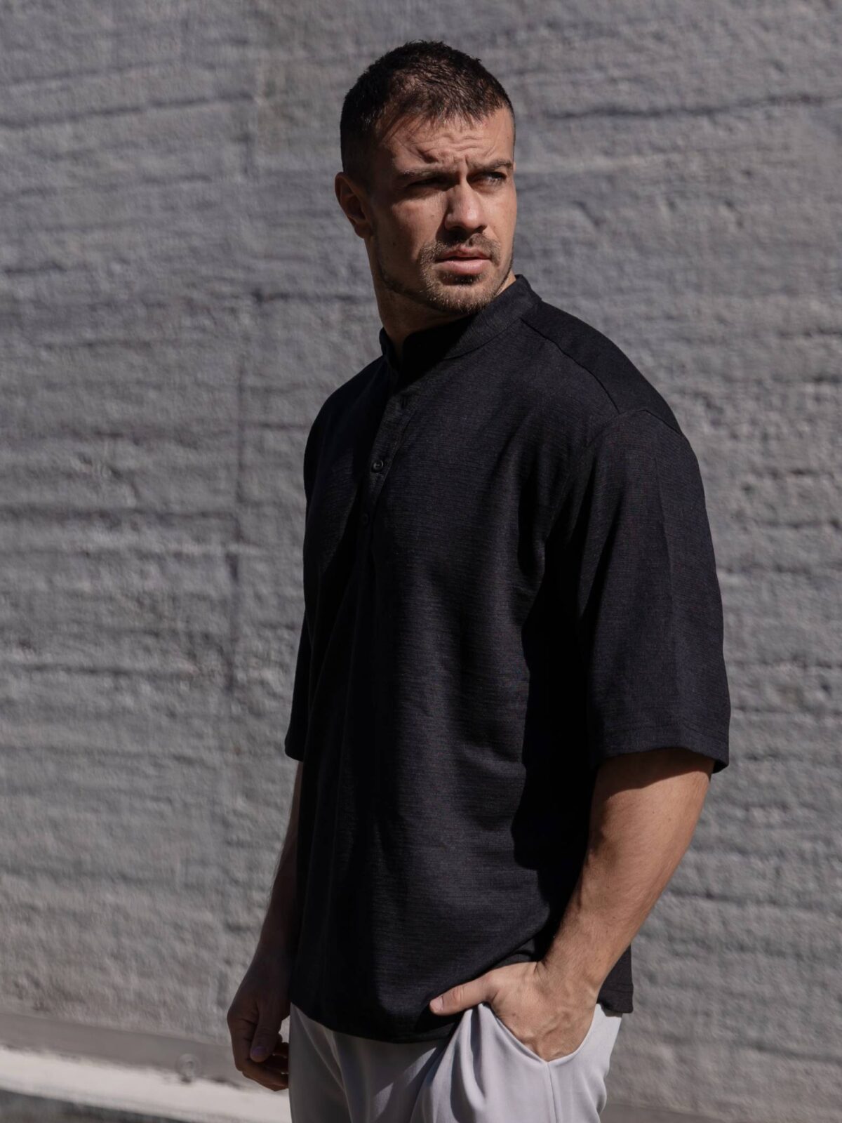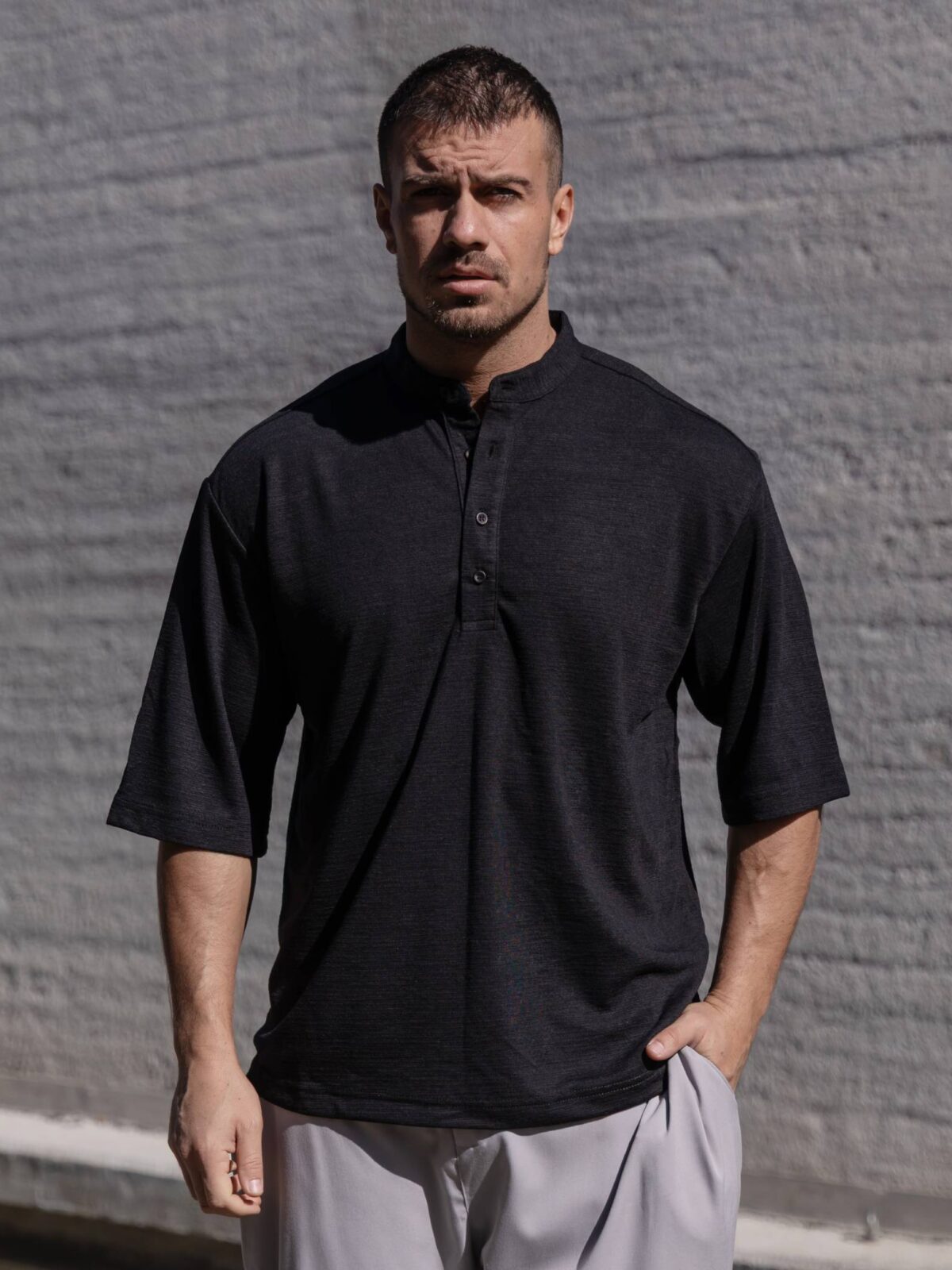 T-shirt μπλούζα 3/4 μαύρη με κουμπιά σε oversized γραμμή