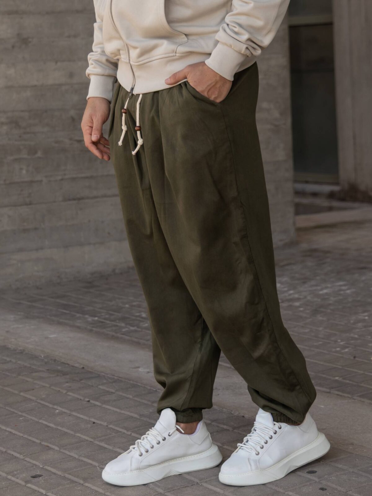 Παντελόνι χακί με λάστιχο σε oversized γραμμή