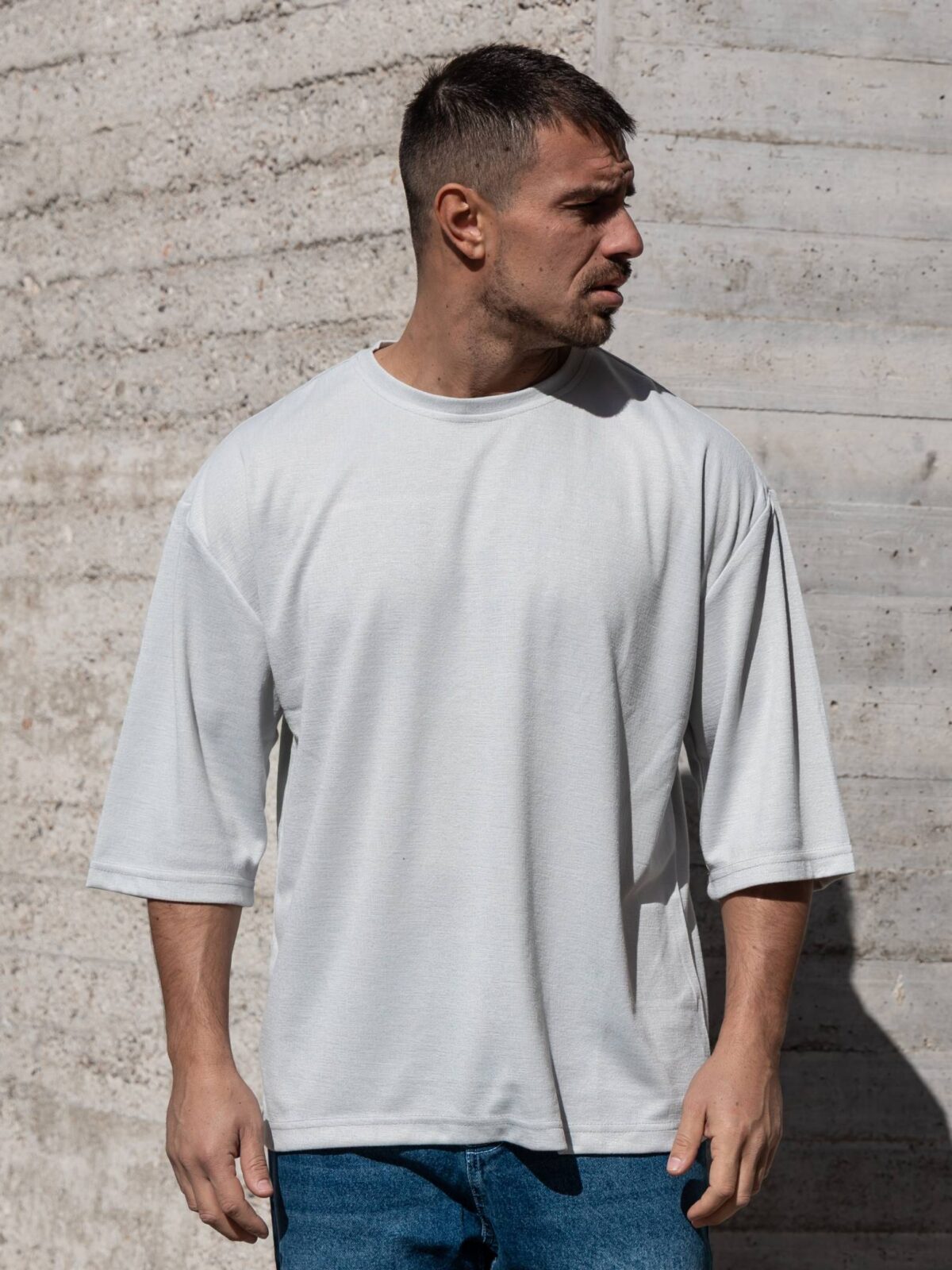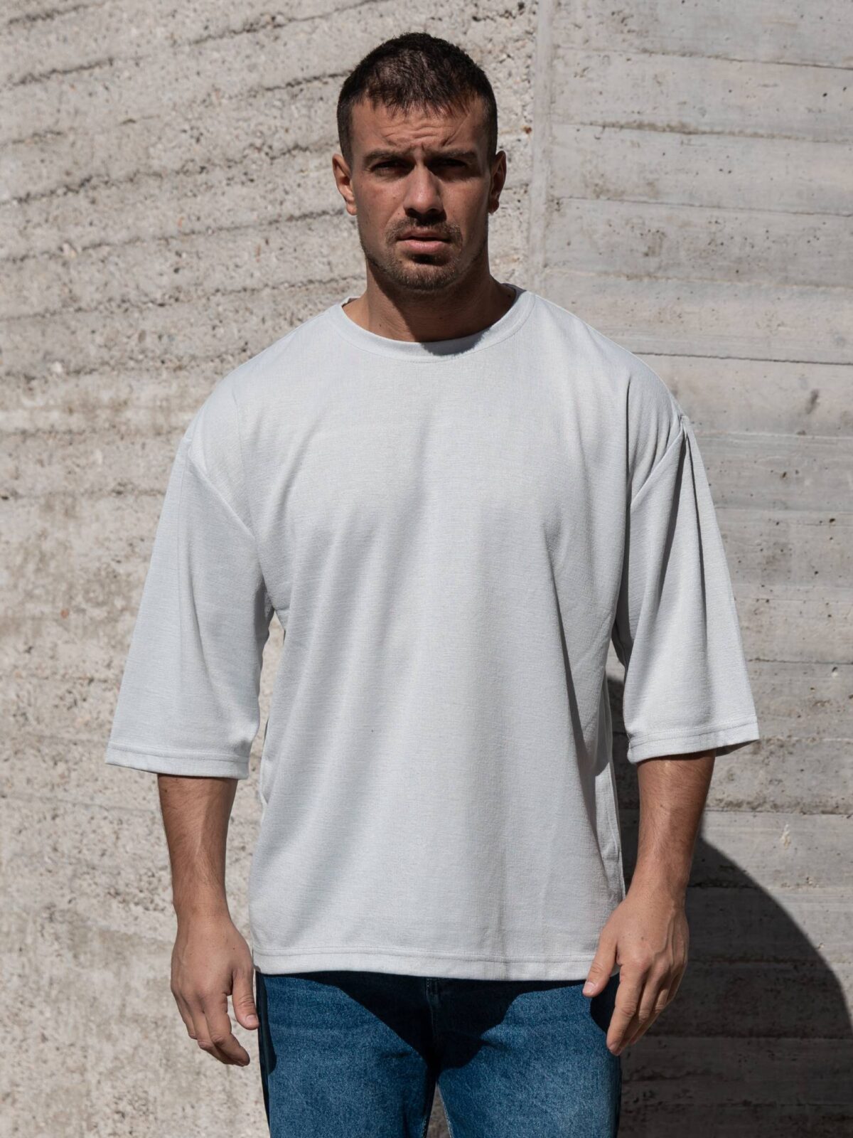 T-shirt μπλούζα 3/4 γκρι σε oversized γραμμή
