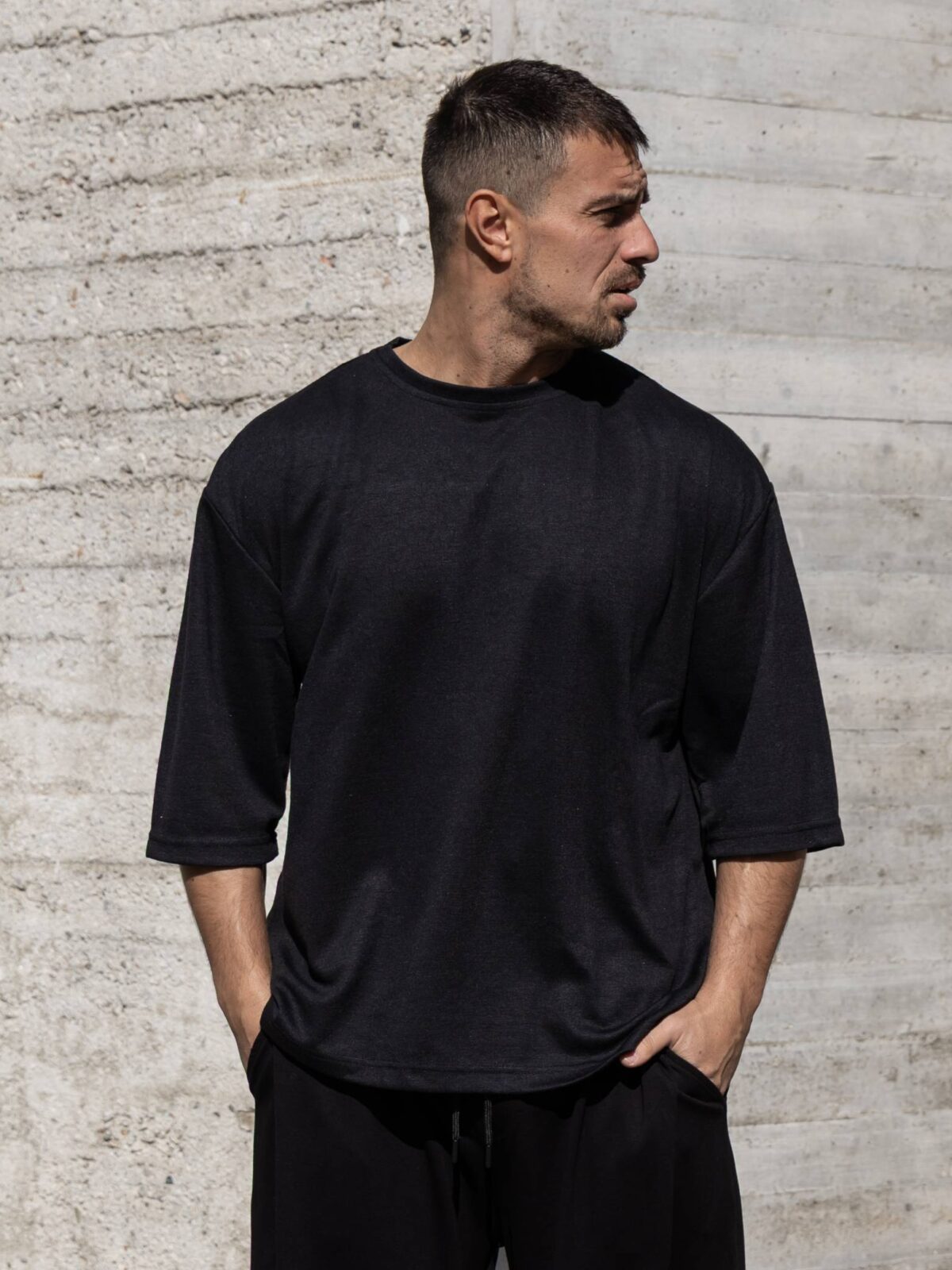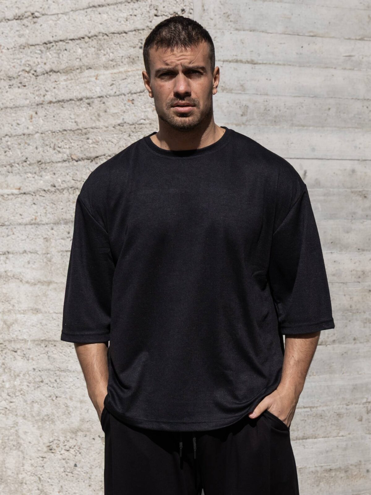 T-shirt μπλούζα 3/4 μαύρο σε oversized γραμμή