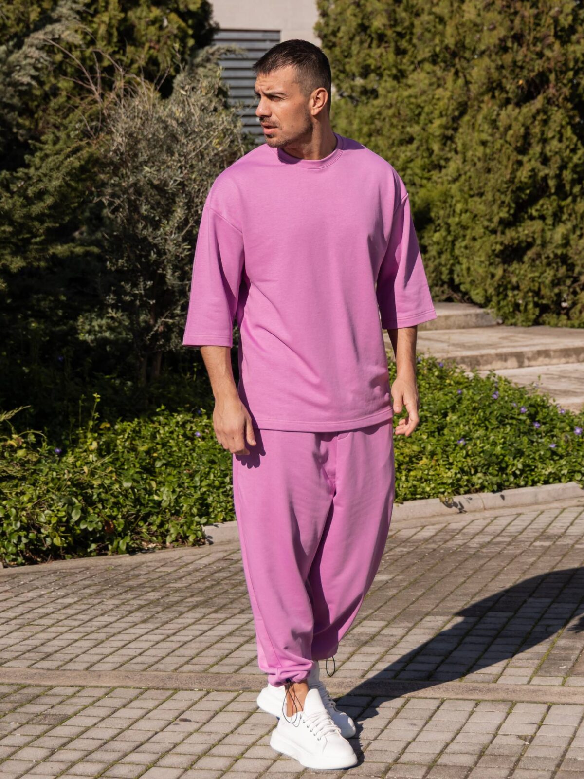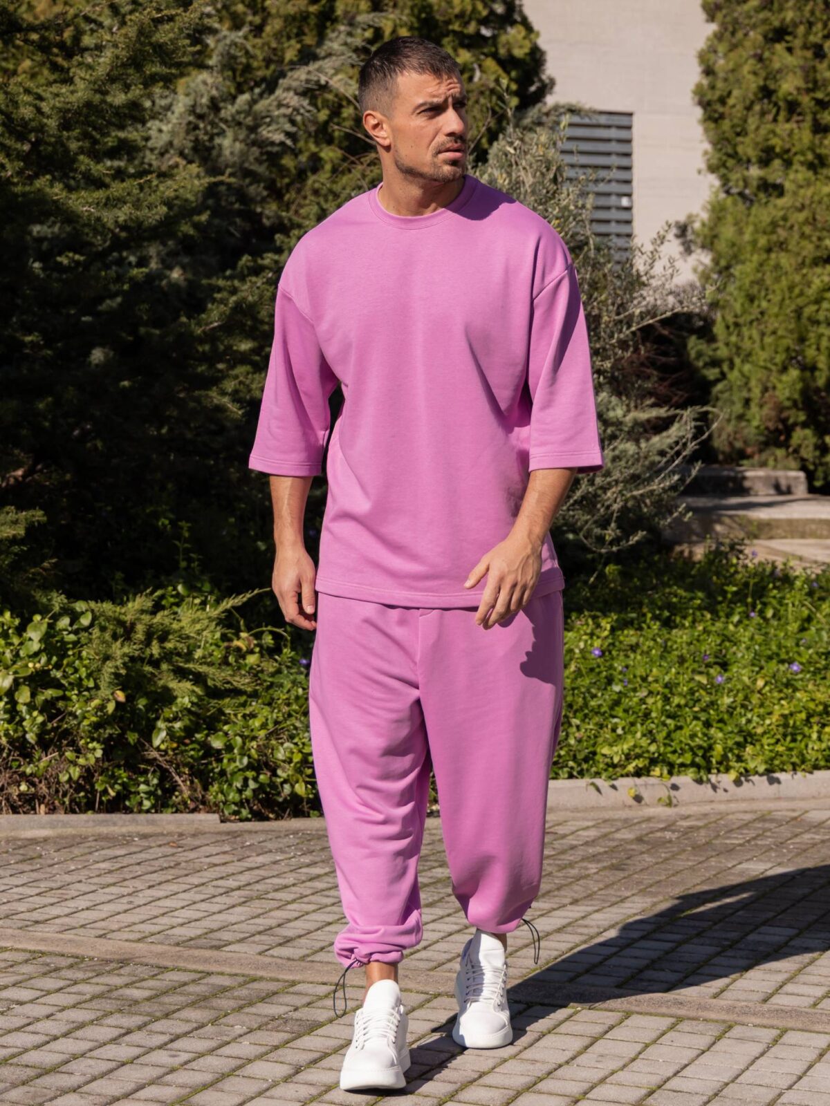 Σετ T-shirt & japaneese baggy φόρμα λιλά σε oversized γραμμή