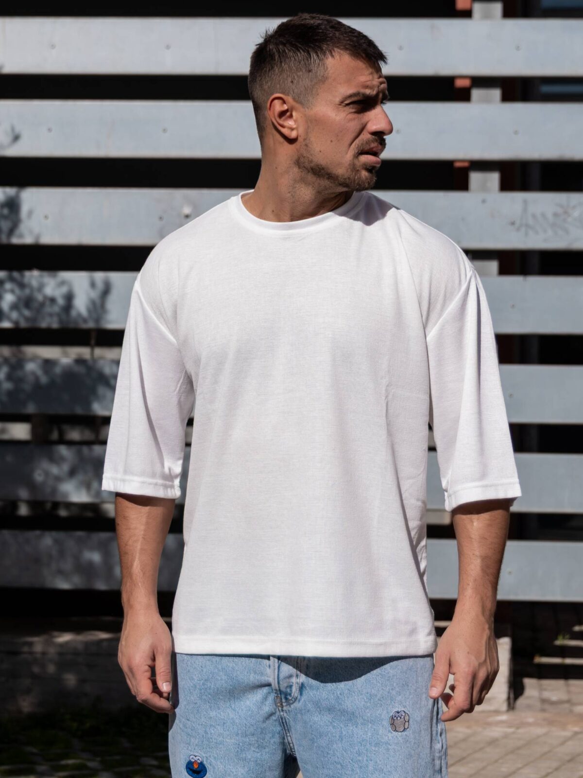 T-shirt μπλούζα 3/4 λευκό σε oversized γραμμή