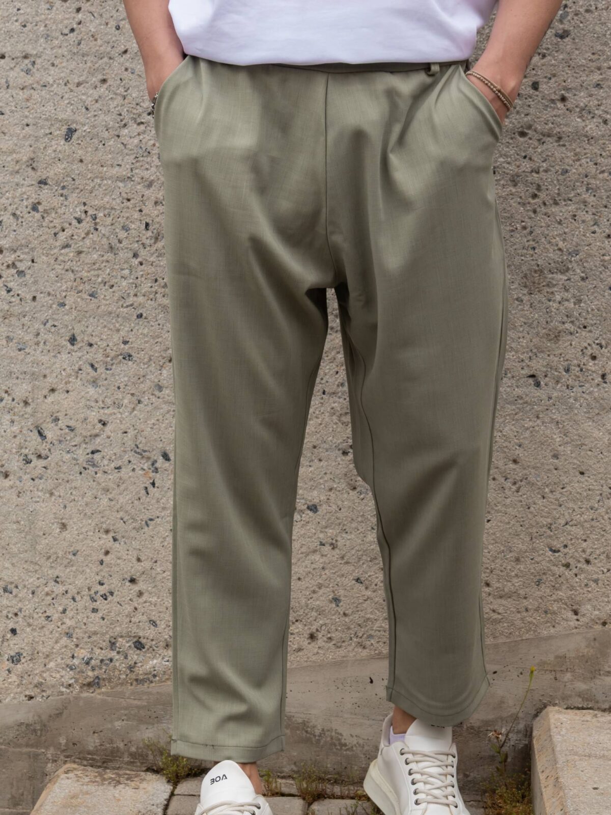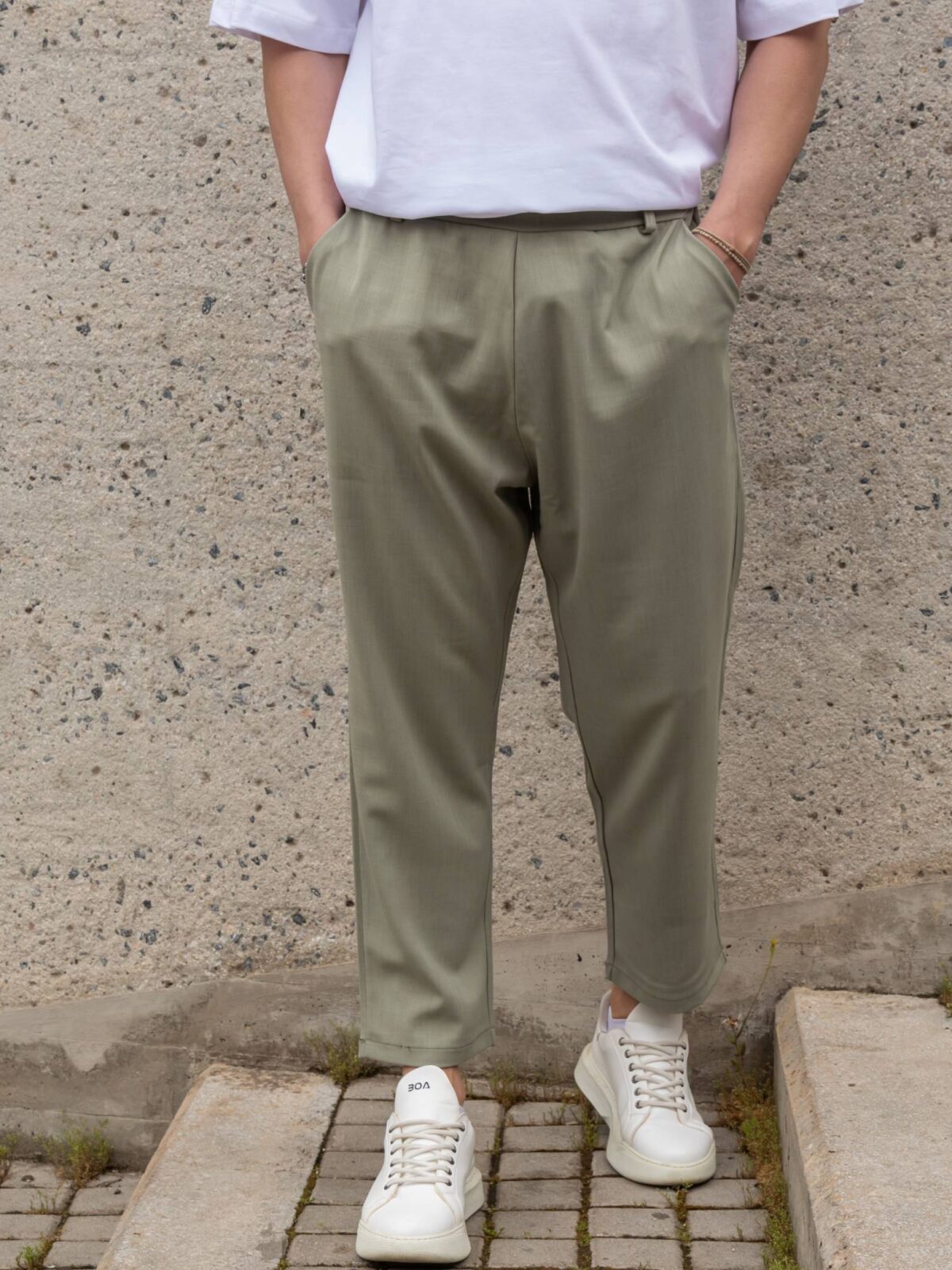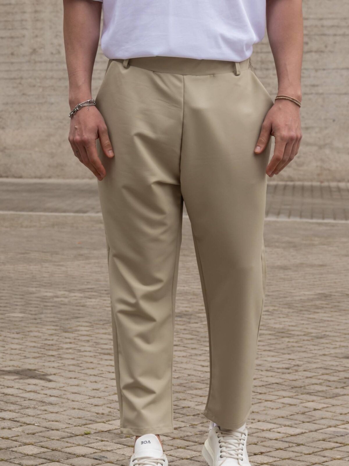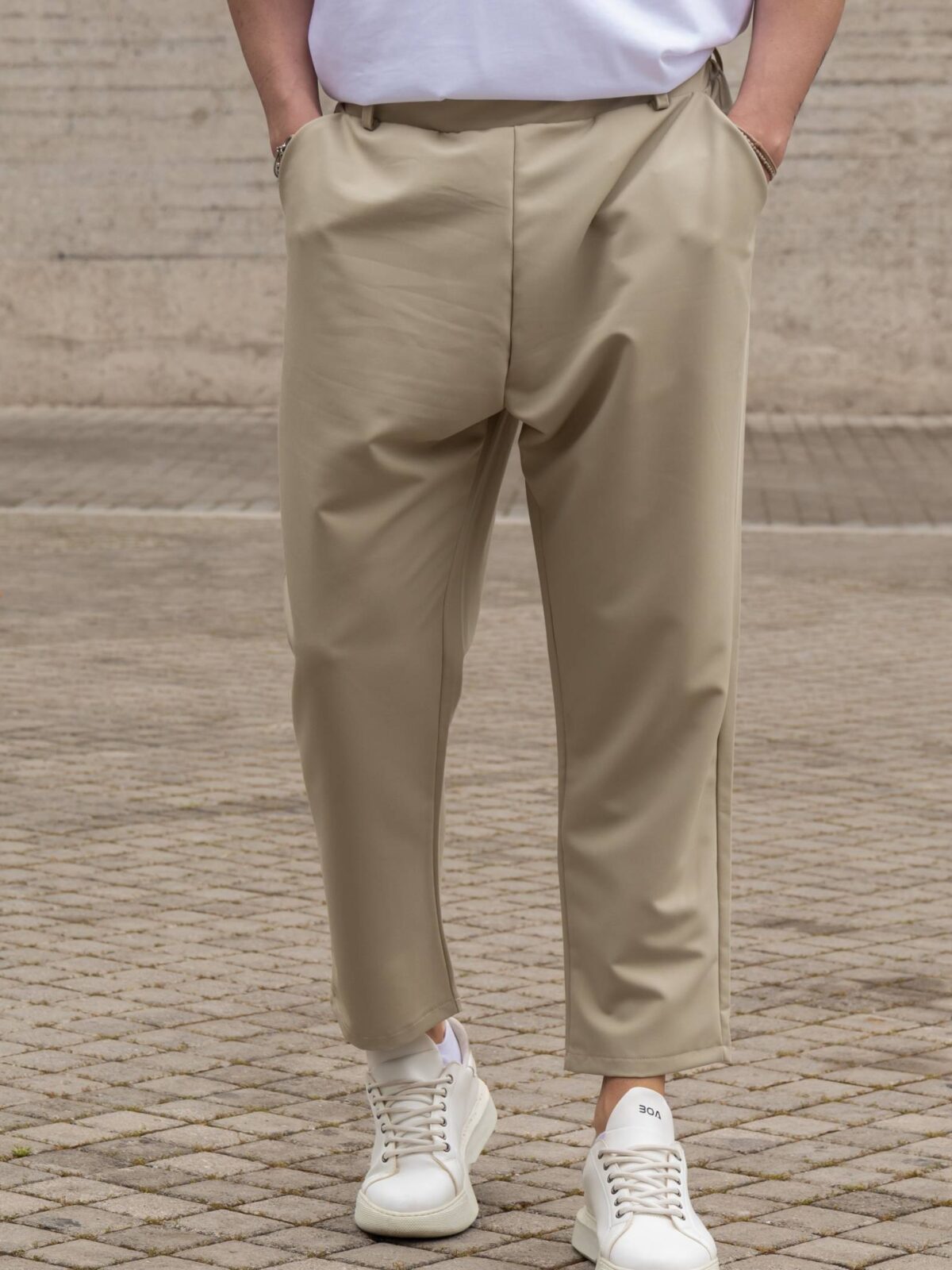 Παντελόνι μπεζ με πιέτες σε άνετη γραμμή