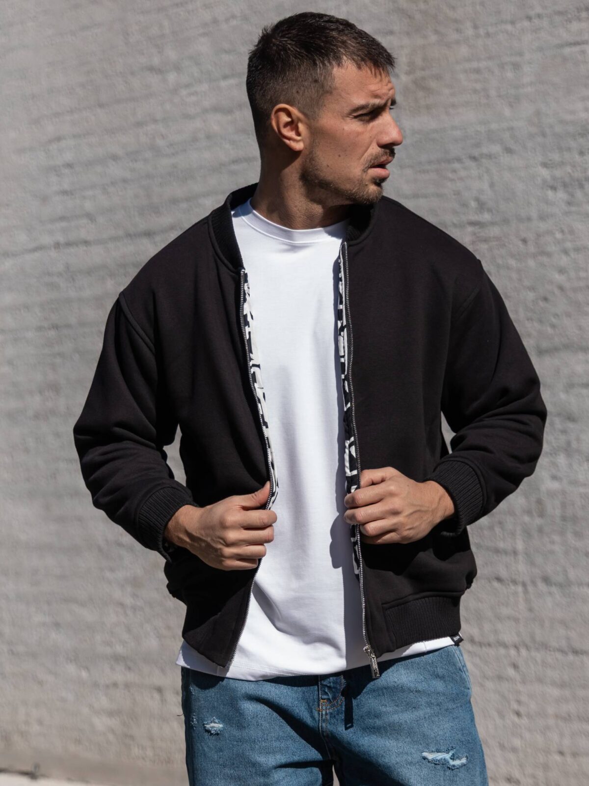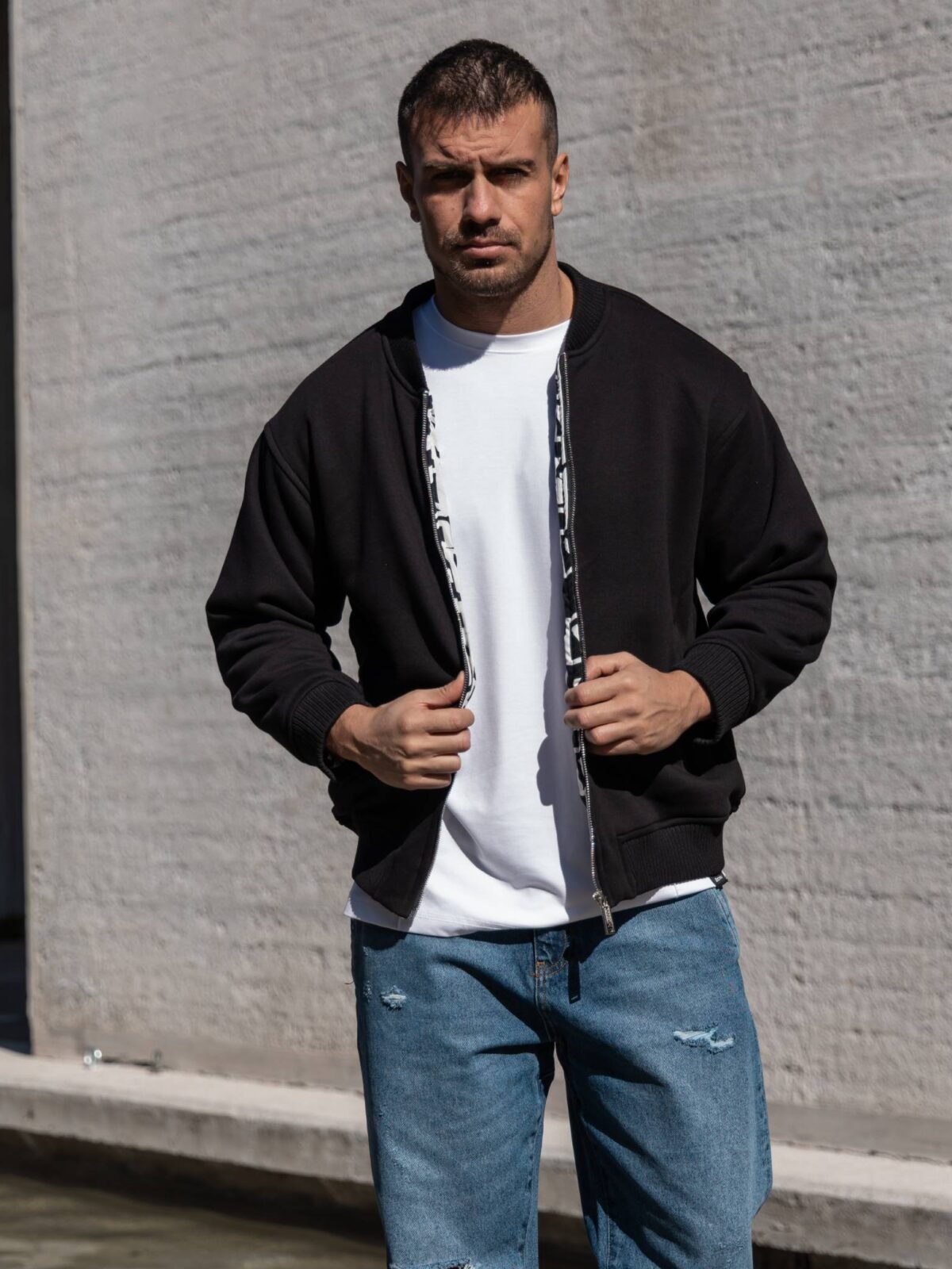 Ζακέτα bomber μαύρη σε oversized γραμμή