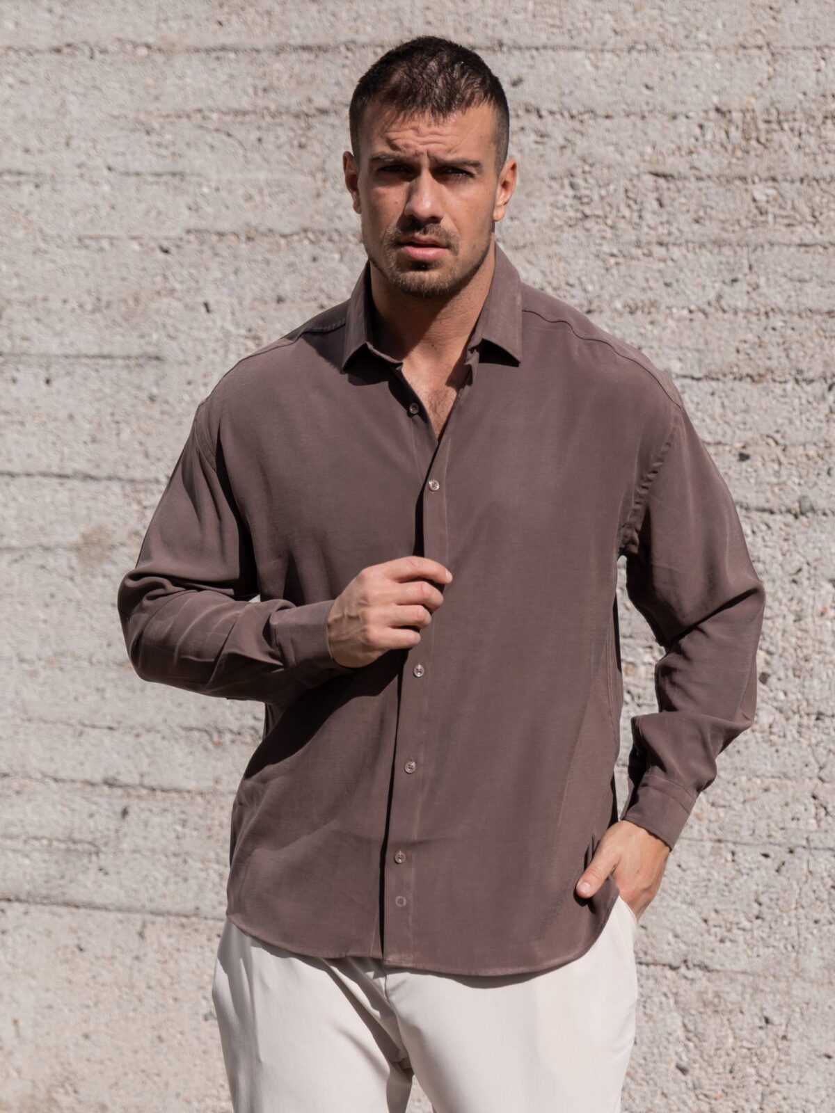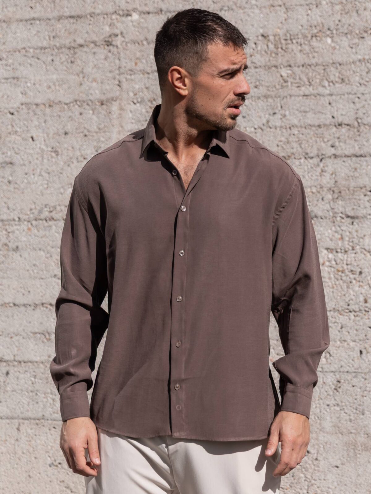 Πουκάμισο σοκολατί σε oversized γραμμή